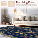 Ultra Soft Area Rug, Non Slip, Stain Resistant, Washable Area Rugs for Living Room, Bedroom, Art Deco Geometric Elegance(Blue) Overview: