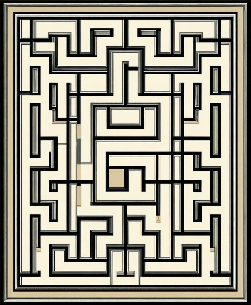 Art Deco Inspired Area Showcasing Elegant Maze and Lattice Graphics(Beige)