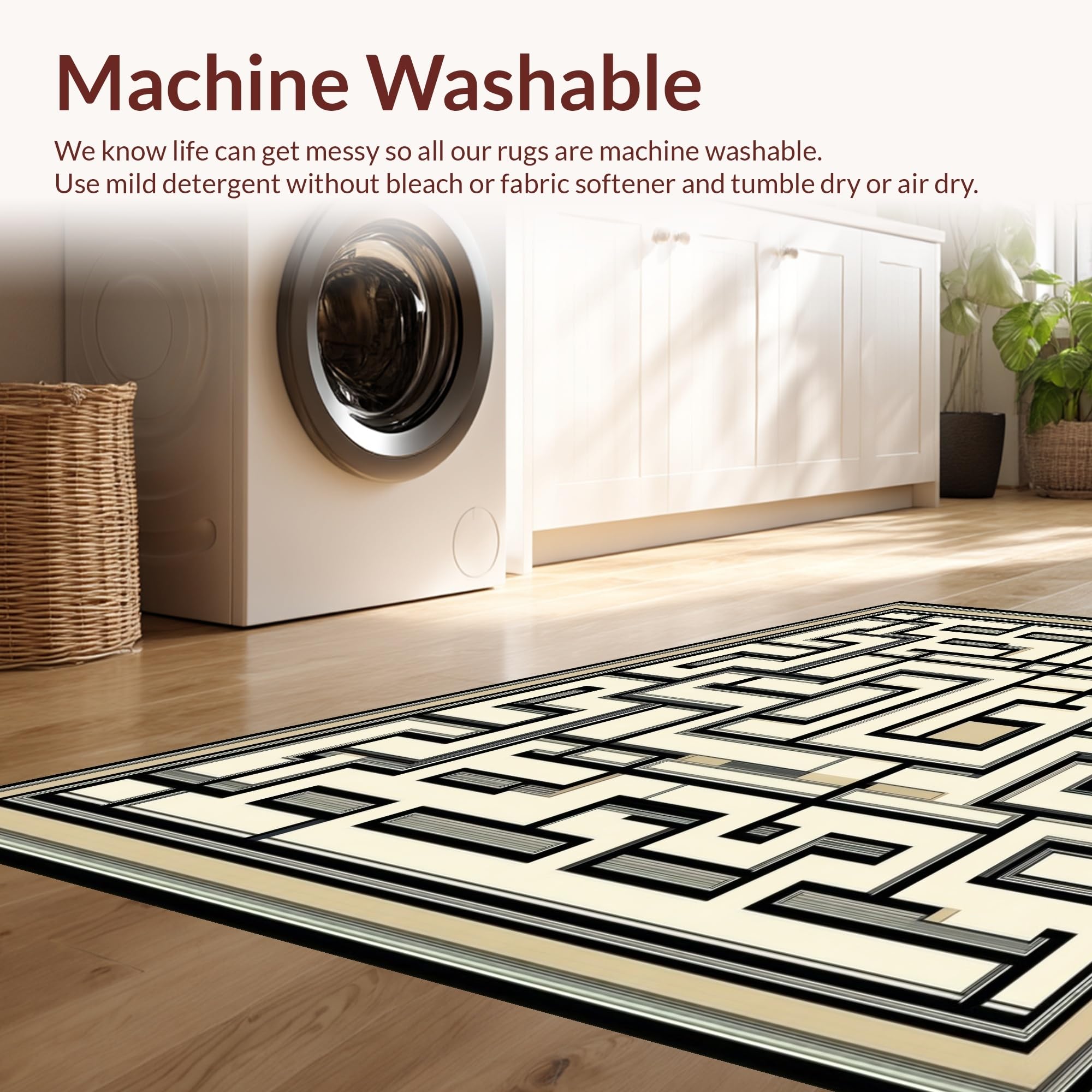 - Machine Washable: Our rugs can be easily thrown in the wash machine.