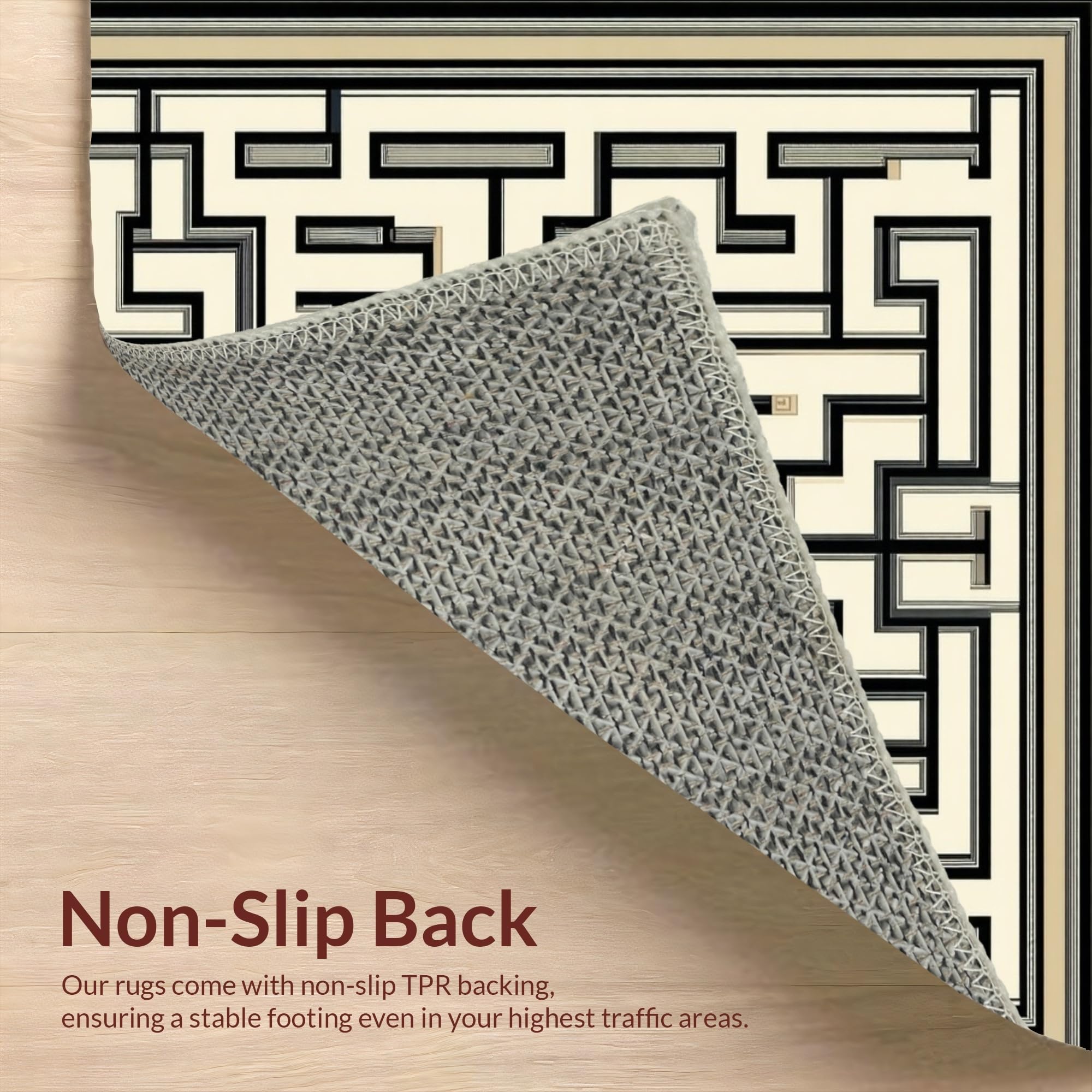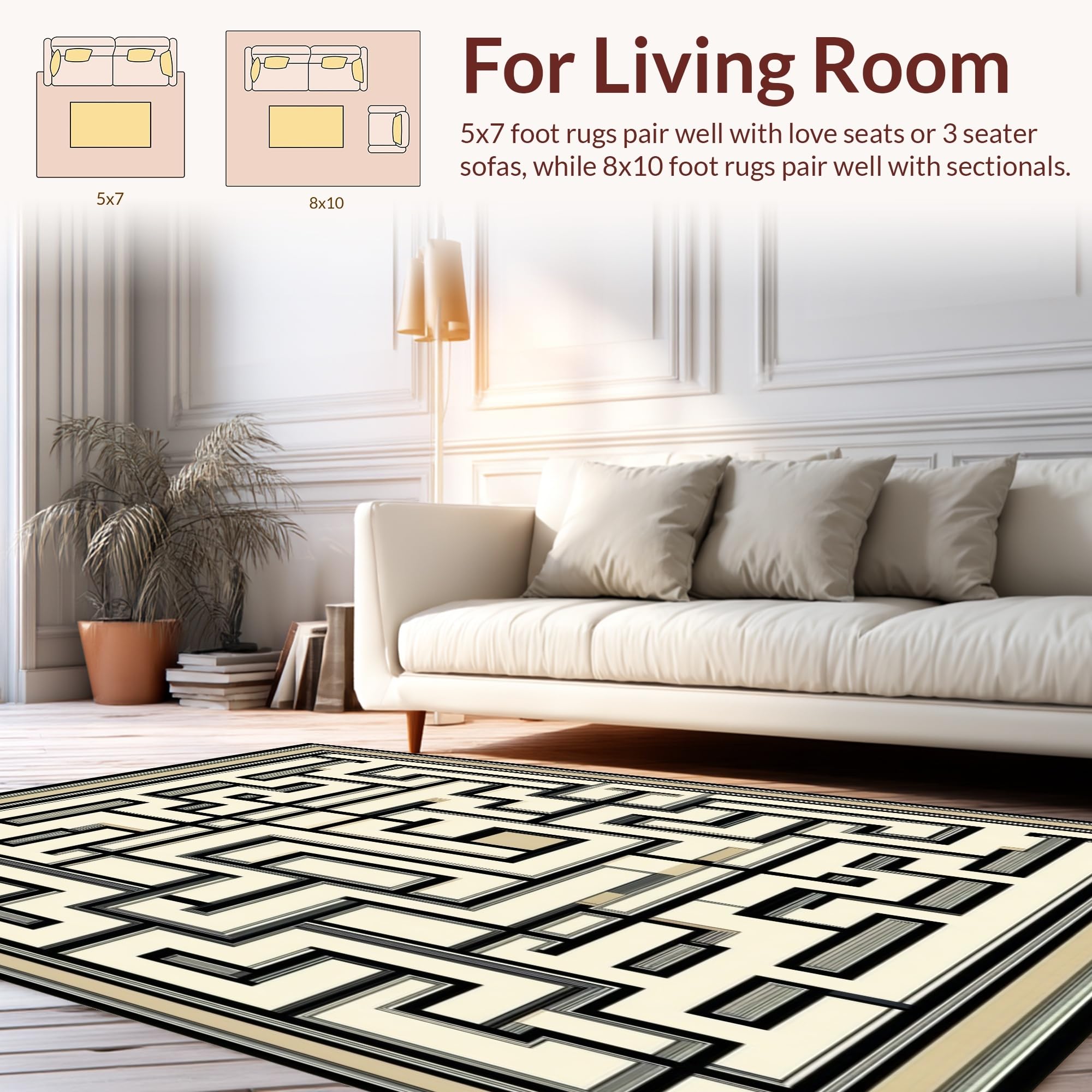 Ultra Soft Area Rug, Non Slip, Stain Resistant, Washable Area Rugs for Living Room, Bedroom, Art Deco Inspired Area Showcasing Elegant Maze and Lattice Graphics(Beige) Overview: