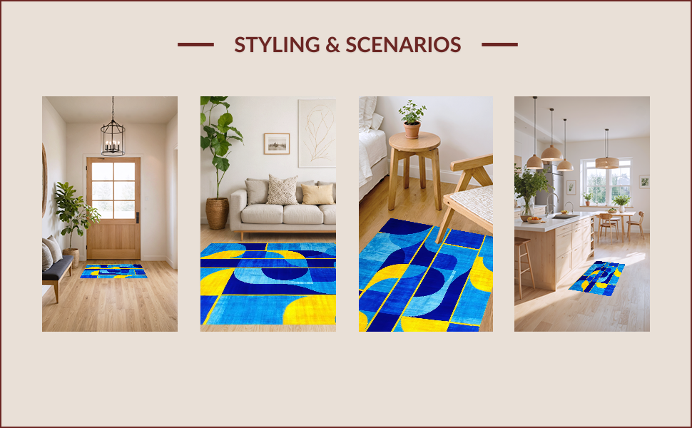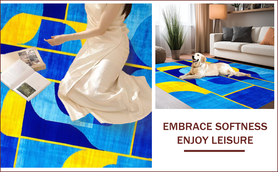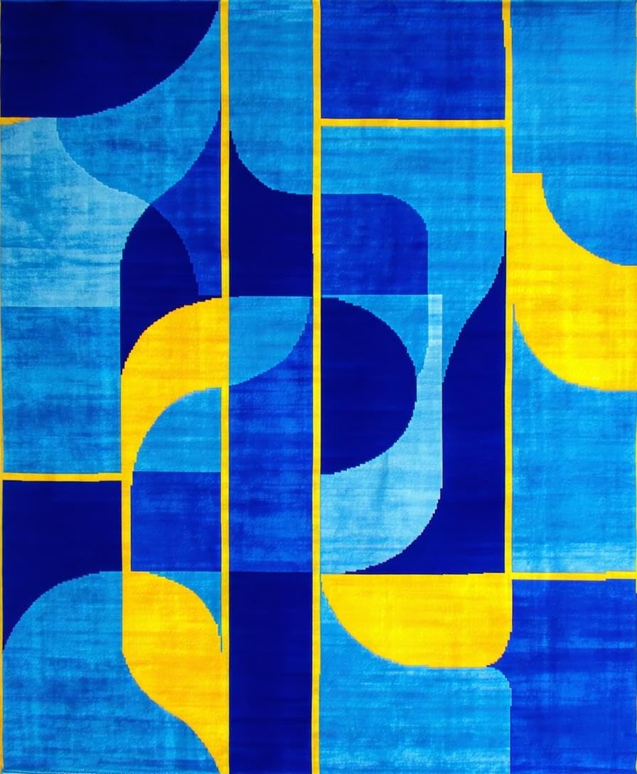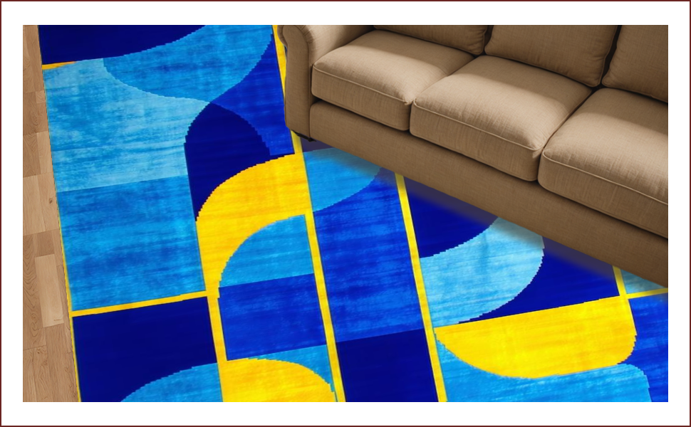 Ultra Soft Area Rug, Non Slip, Stain Resistant, Washable Area Rugs for Living Room, Bedroom, Art Deco Inspired Geometric Elegance(Blue) Overview: