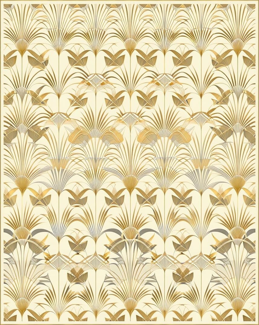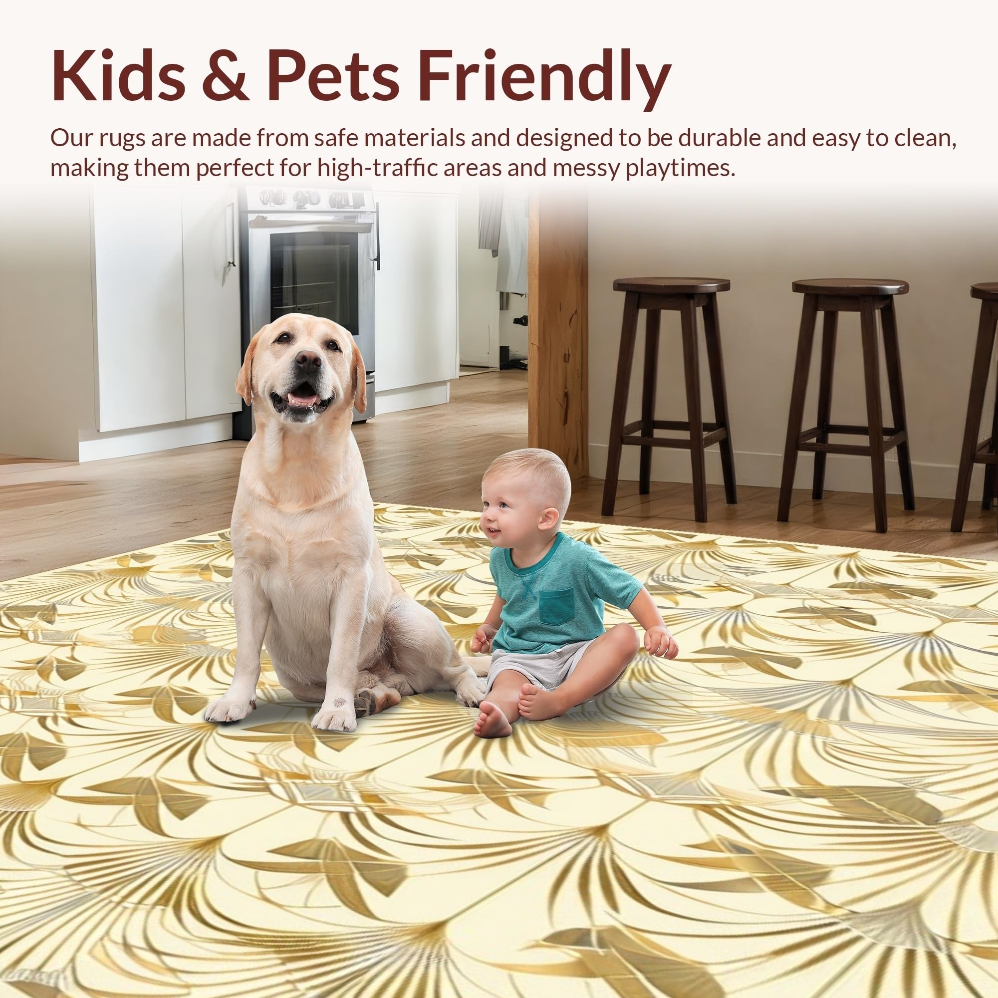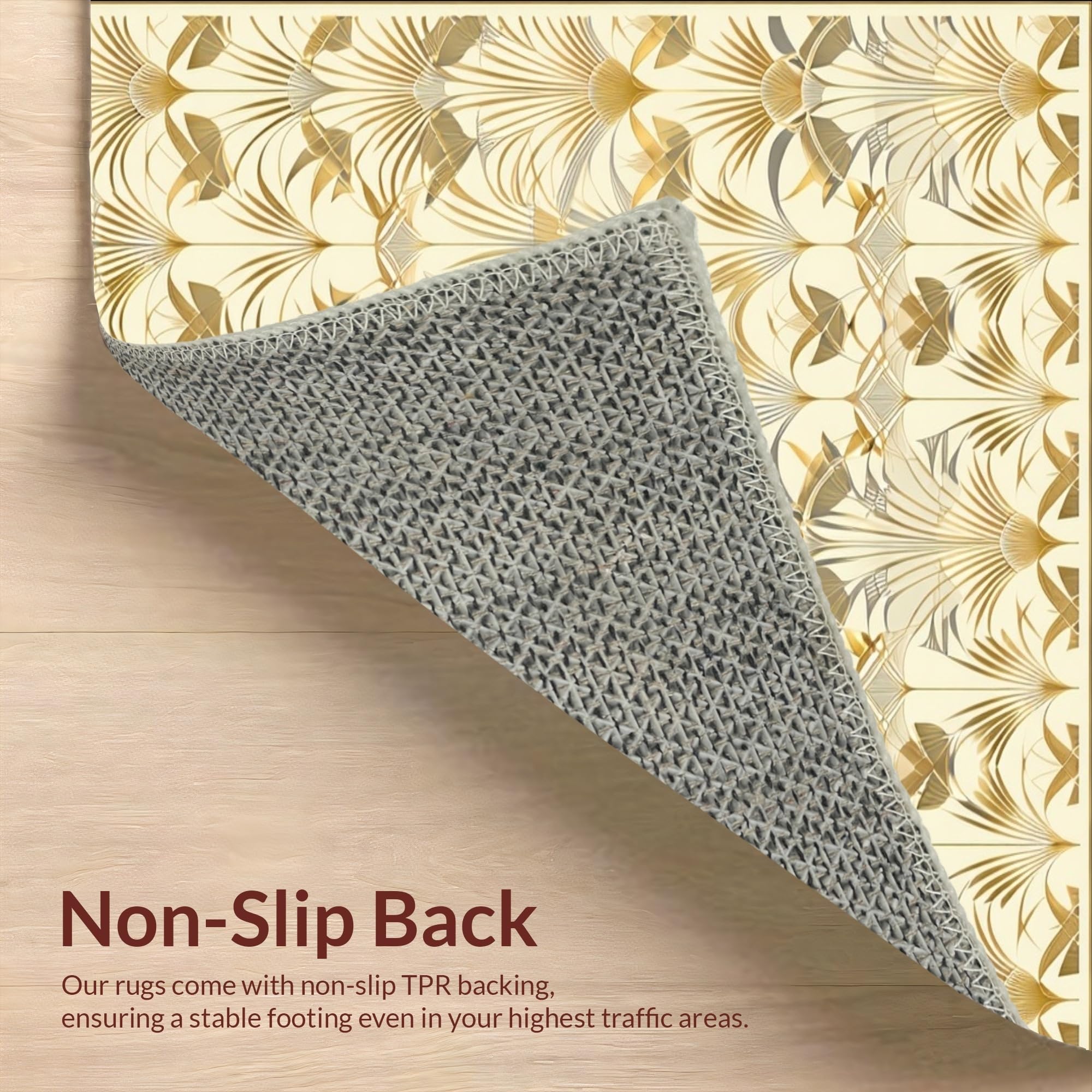 Ultra Soft Area Rug, Non Slip, Stain Resistant, Washable Area Rugs for Living Room, Bedroom, Art Deco Inspired Geometric Fan and Leaf(Beige) Overview:
