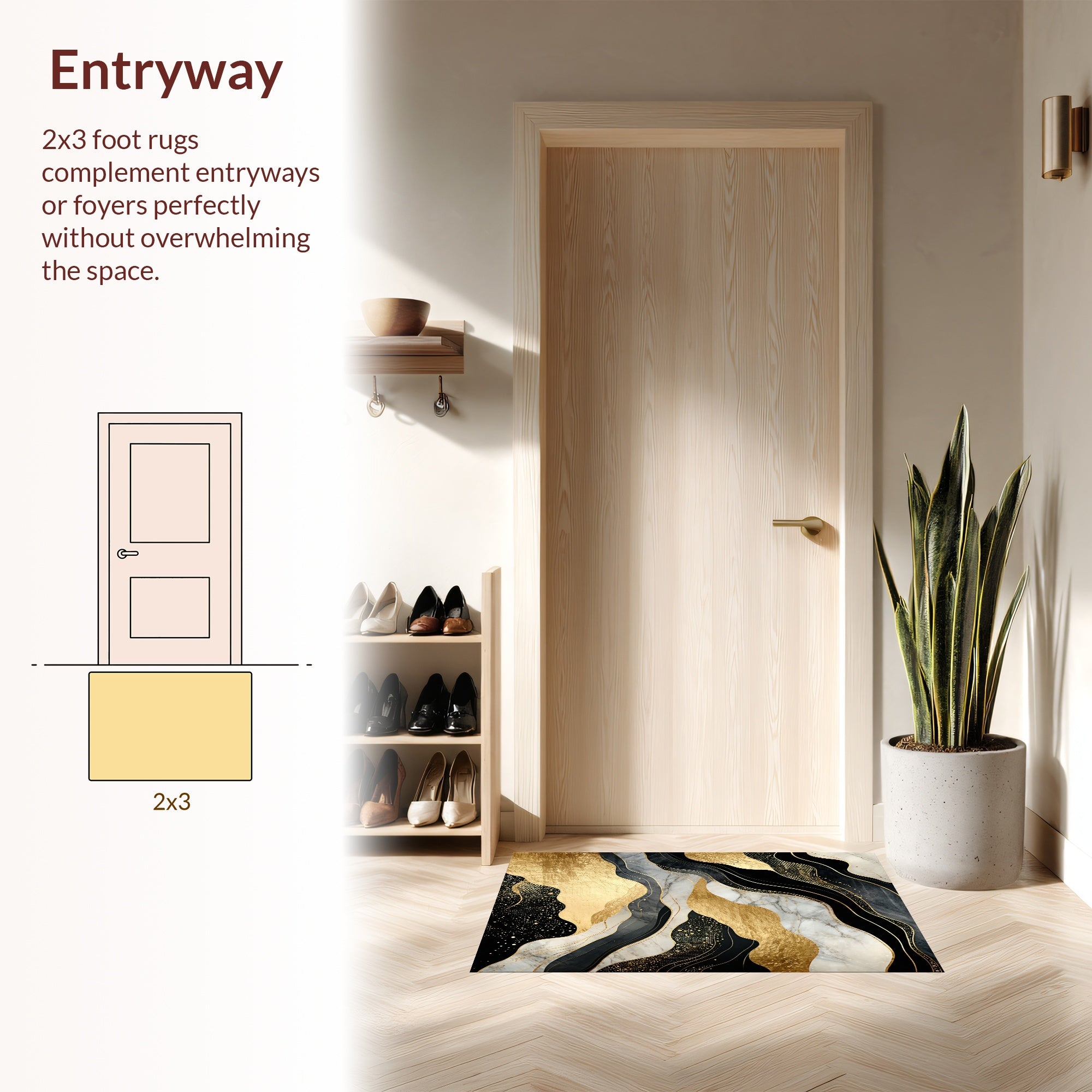 Flatwoven High Traffic Area Rug, Art Inspired Luxe Arrangement, Non Slip, Stain Resistant, Washable Area Rugs for Living Room, Bedroom (Black) Overview: