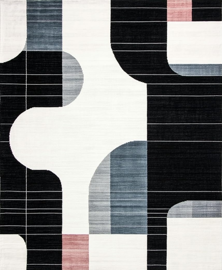 Ultra Soft Area Rug, Non Slip, Stain Resistant, Washable Area Rugs for Living Room, Bedroom, Art Deco Inspired Organic Shape(White) Overview: