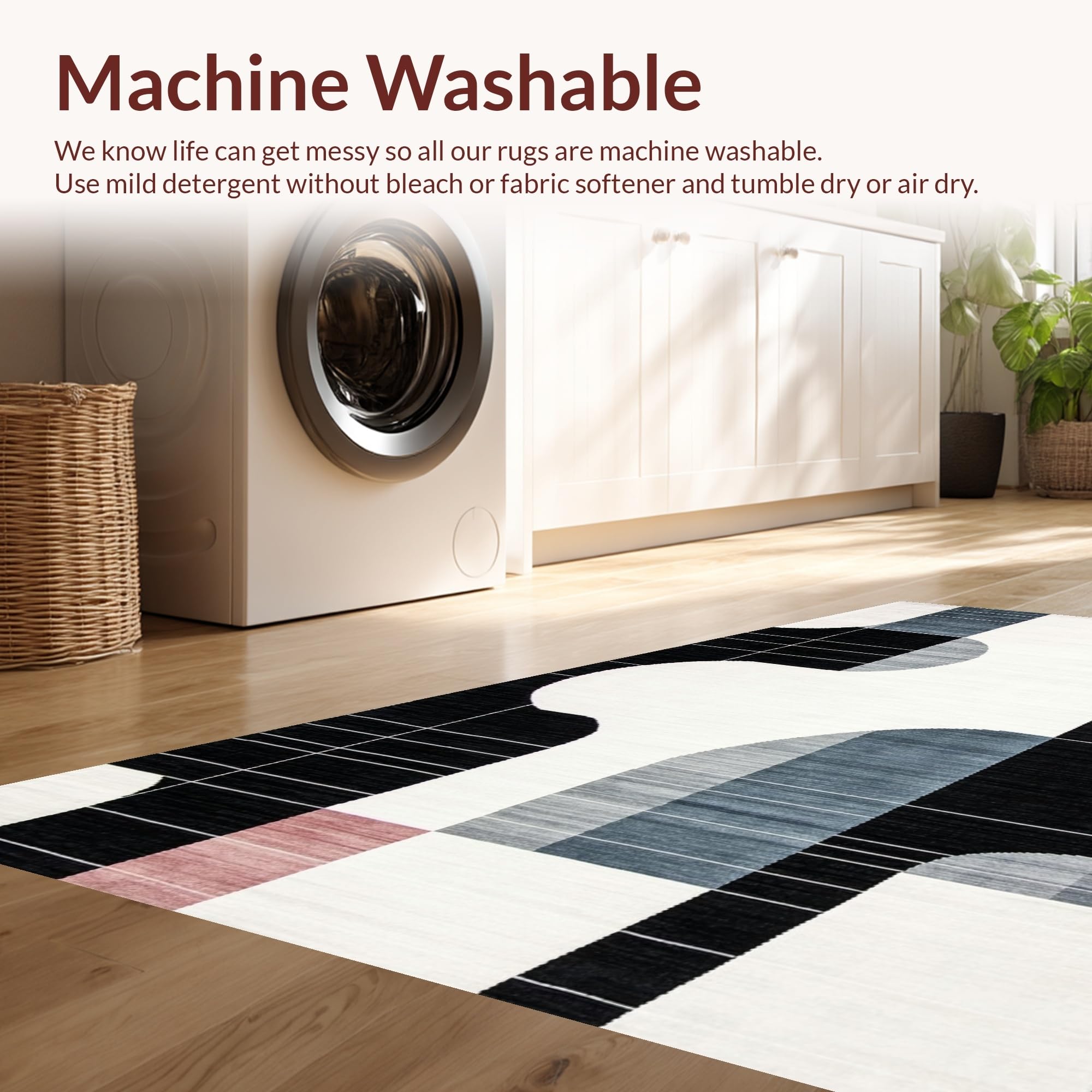 - Machine Washable: Our rugs can be easily thrown in the wash machine.