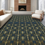 Ultra Soft Area Rug, Non Slip, Stain Resistant, Washable Area Rugs for Living Room, Bedroom, Art Deco Revival Interlocking Fan Motif(Gold) Overview: