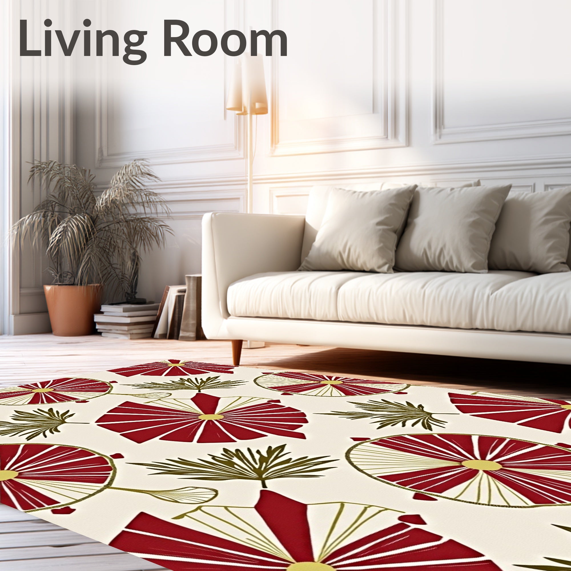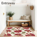 Ultra Soft Area Rug, Non Slip, Stain Resistant, Washable Area Rugs for Living Room, Bedroom, Art Inspired Holiday Chime and Fir Branch Arrangement(Red) Overview: