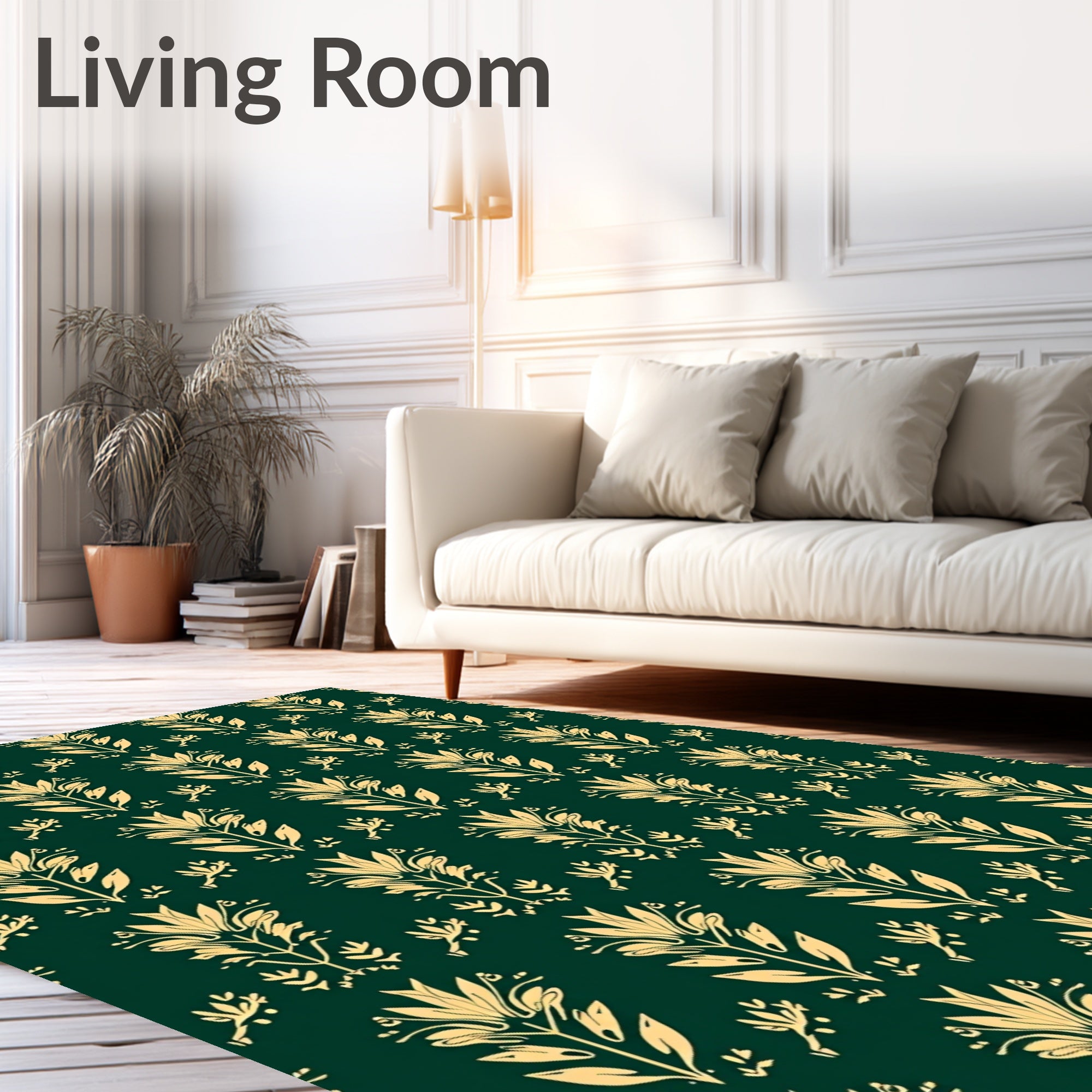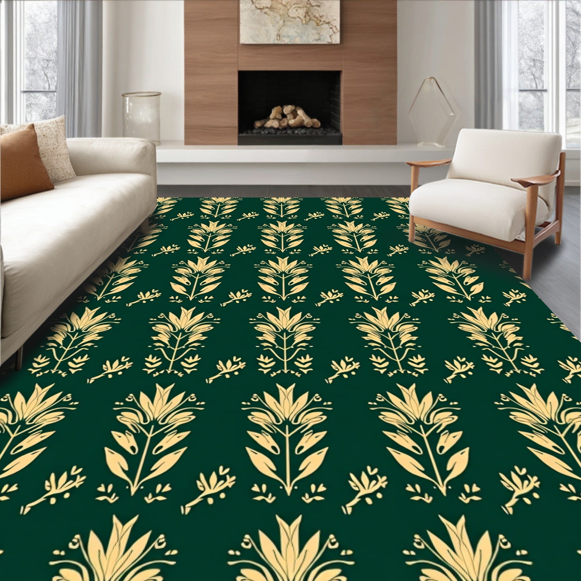 Ultra Soft Area Rug, Non Slip, Stain Resistant, Washable Area Rugs for Living Room, Bedroom, Art Laurel Leaf Interlocking with Festive Twinkle Details(Green) Overview: