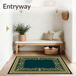 Flatwoven High Traffic Area Rug, Art Nouveau Botanical Flourish with Flowing Vine, Non Slip, Stain Resistant, Washable Area Rugs for Living Room, Bedroom (Gold) Overview: