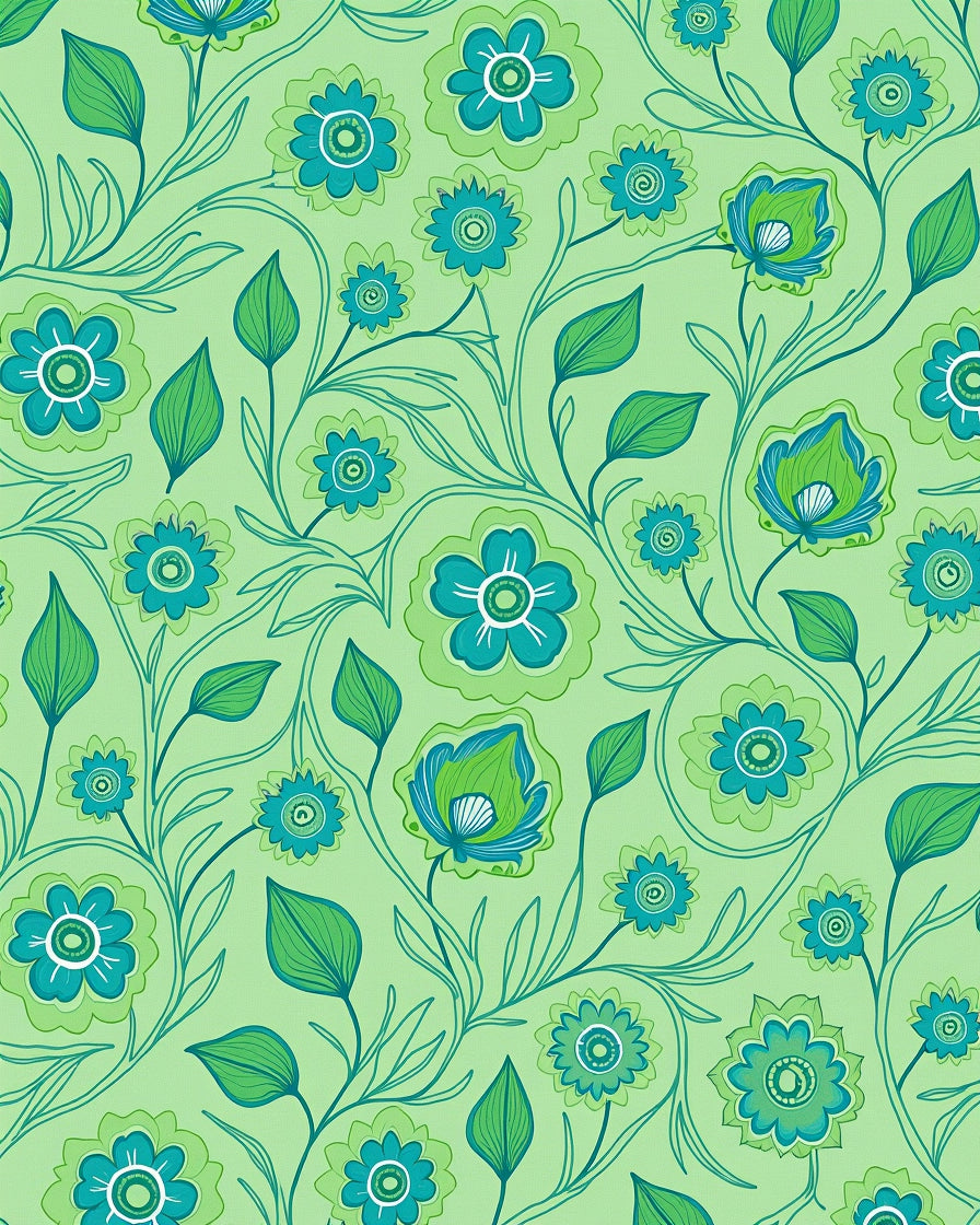 Art Nouveau Floral Mosaic with Flowing Petal(Green)