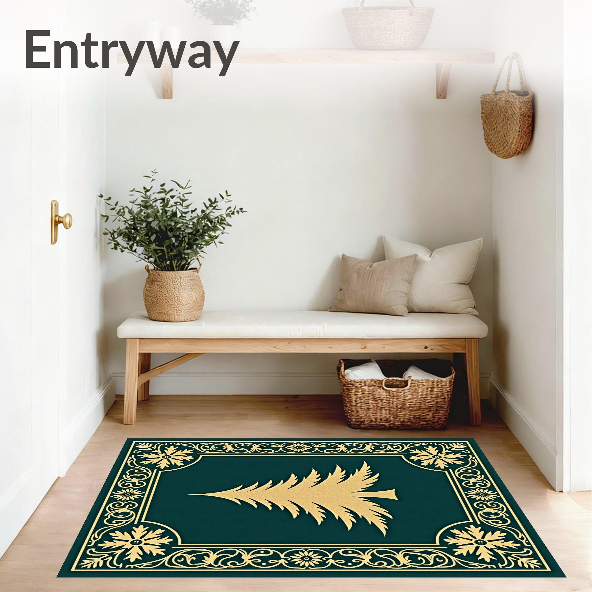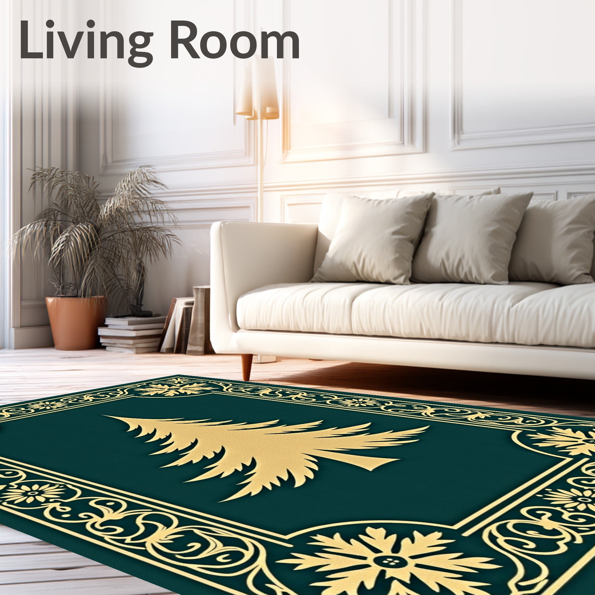Ultra Soft Area Rug, Non Slip, Stain Resistant, Washable Area Rugs for Living Room, Bedroom, Art Nouveau Frosted Pine with Delicate Starbursts(Gold) Overview: