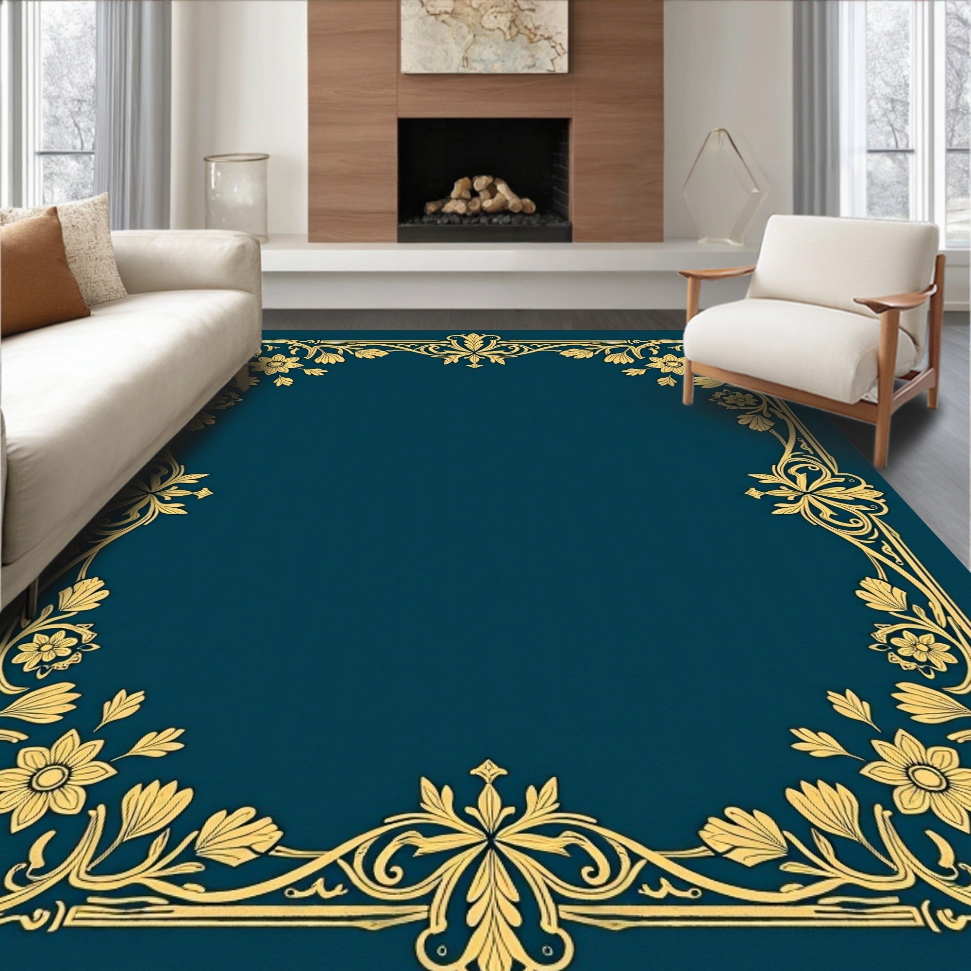 Flatwoven High Traffic Area Rug, Art Nouveau Vinework with Enchanted Blossom and Ornamental Detailing, Non Slip, Stain Resistant, Washable Area Rugs for Living Room, Bedroom (Gold) Overview: