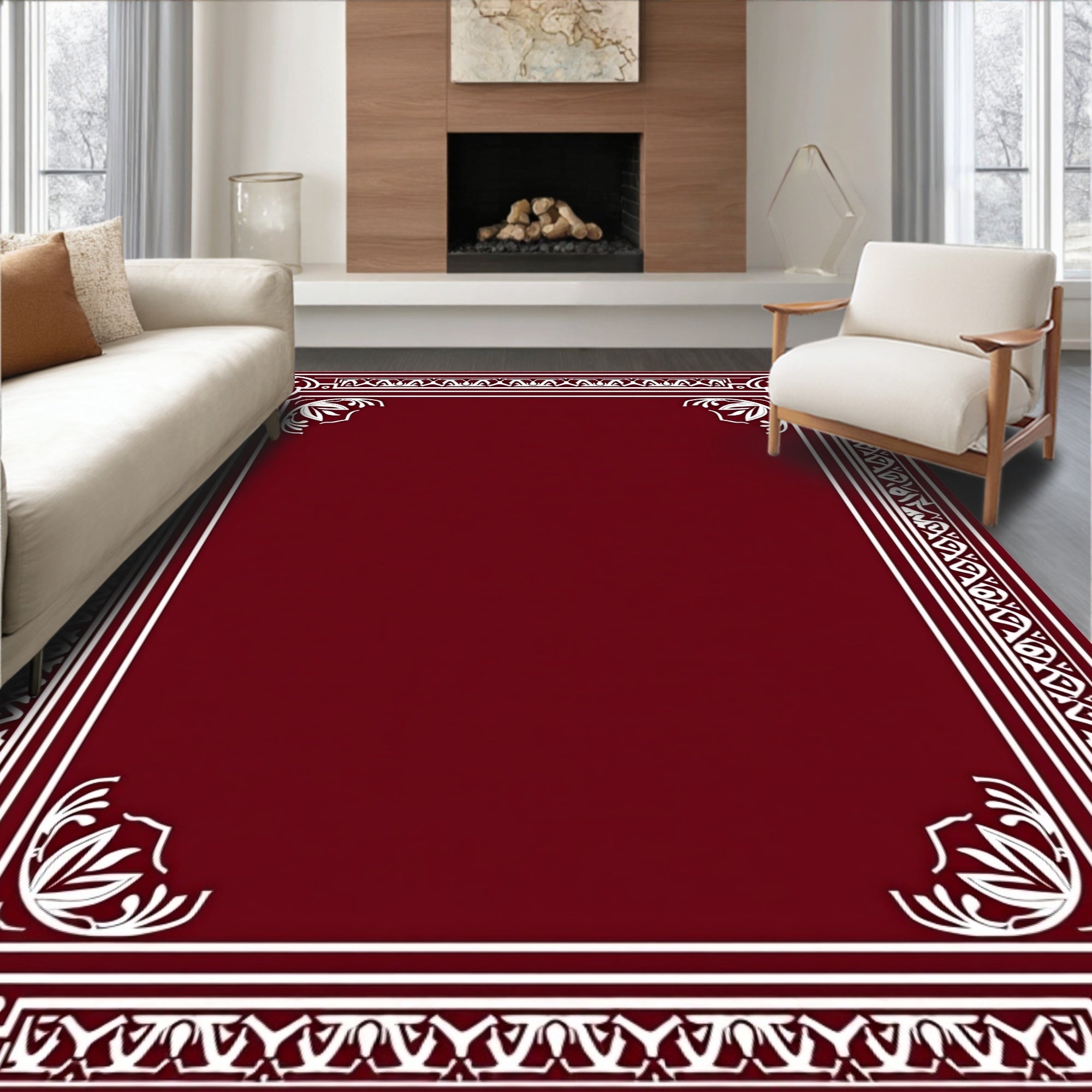 Ultra Soft Area Rug, Non Slip, Stain Resistant, Washable Area Rugs for Living Room, Bedroom, Art Snowberry Lattice with Stylized Ferns and Curved Festive Motifs(Red) Overview: