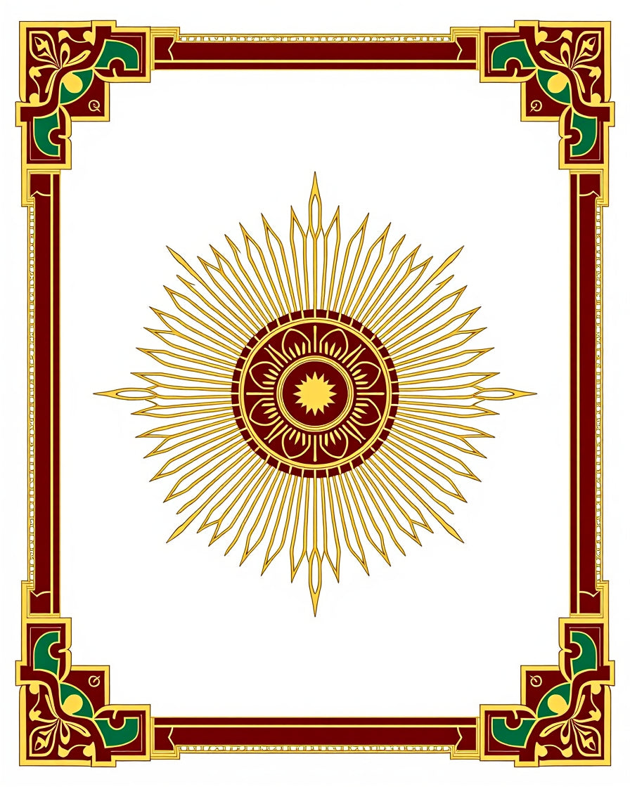 Art Sunburst with Interlocking Festive Scrolls and Abstract Festoon Detailing(Gold)