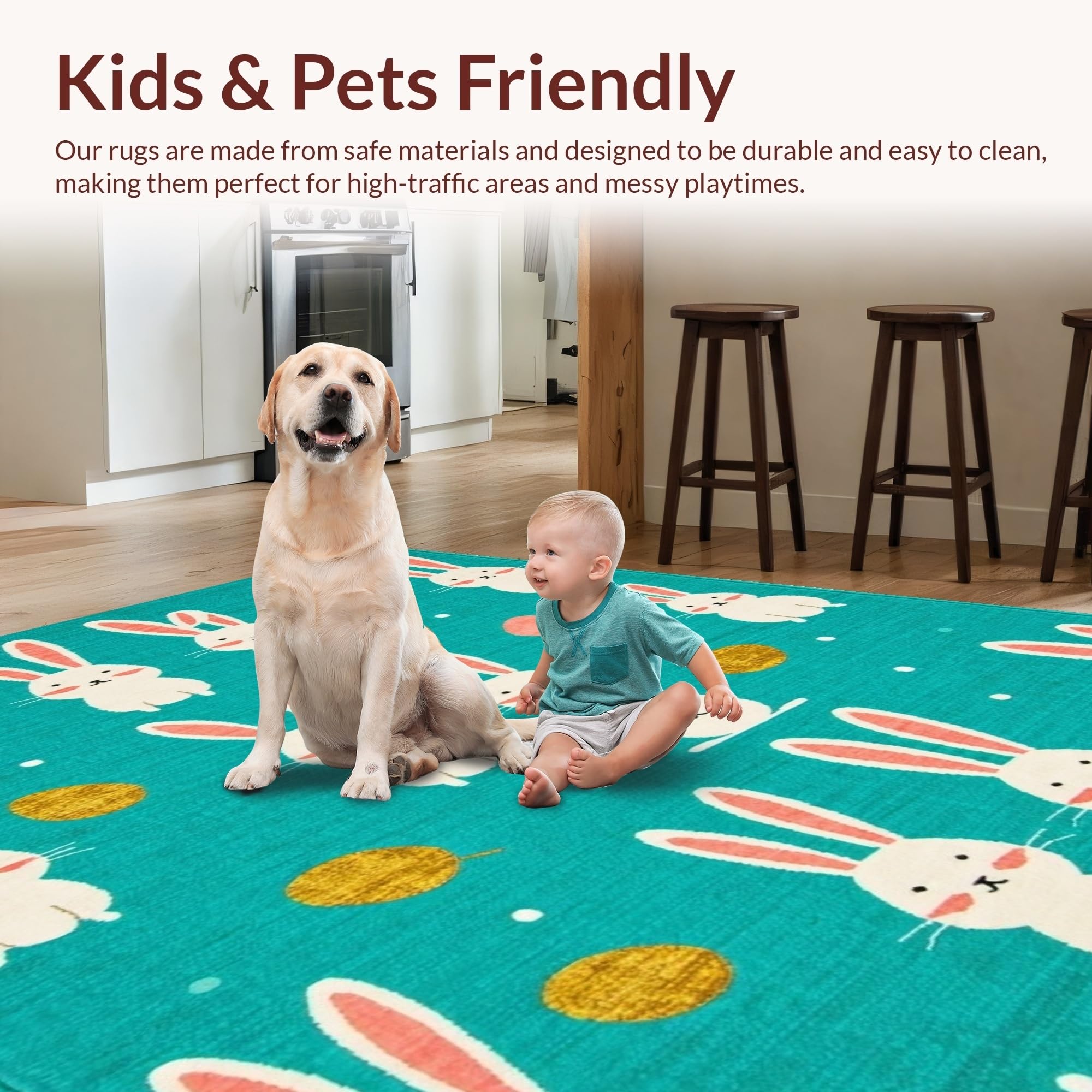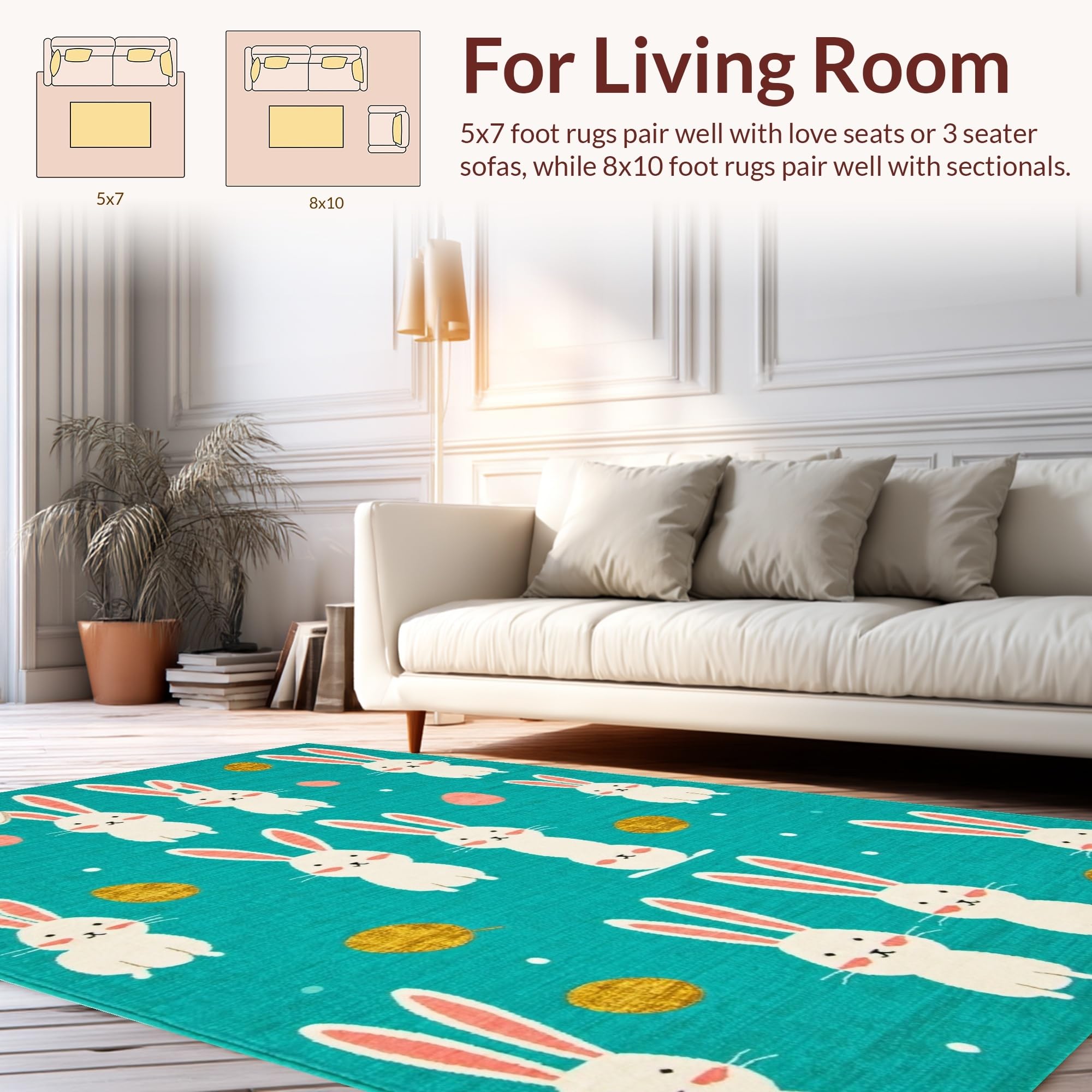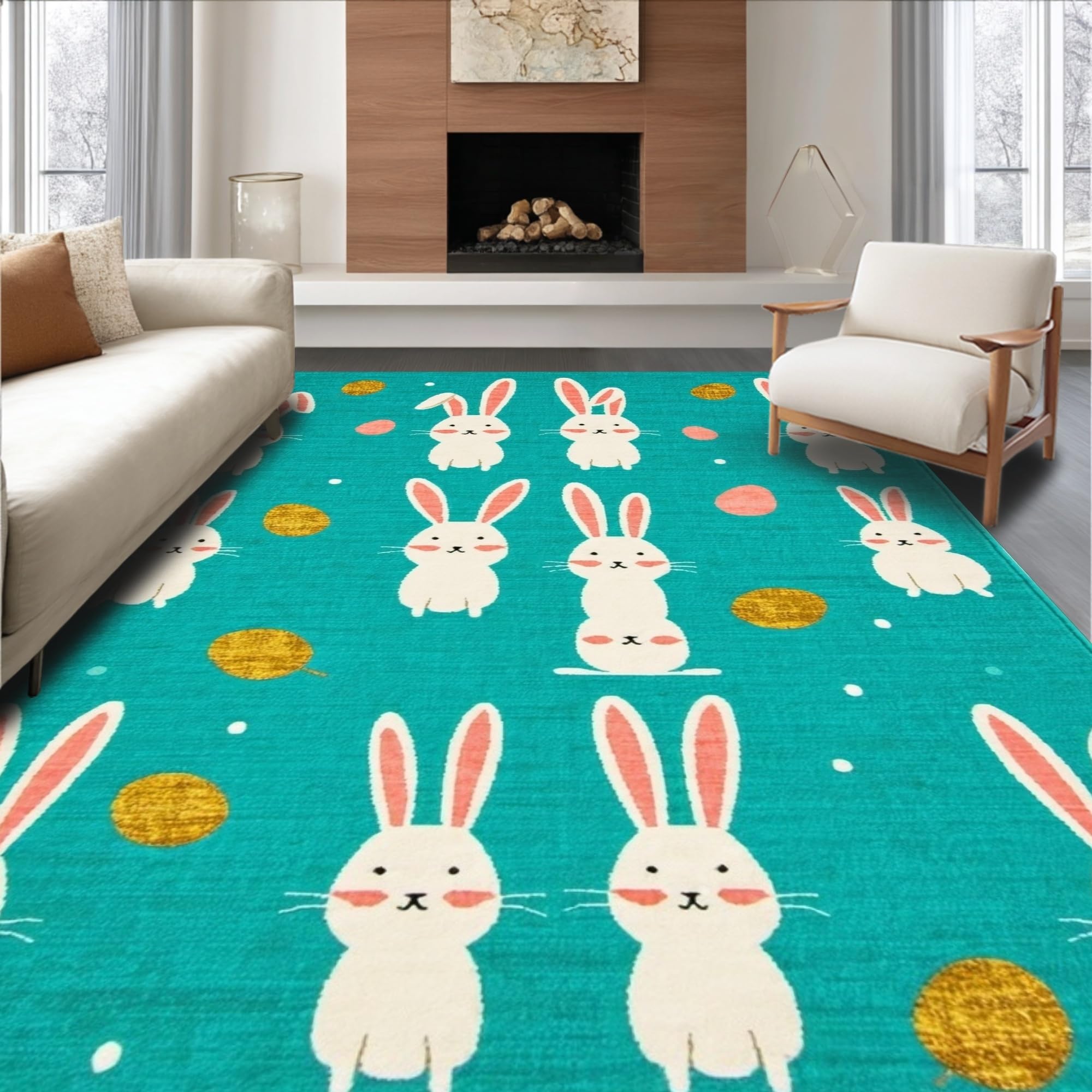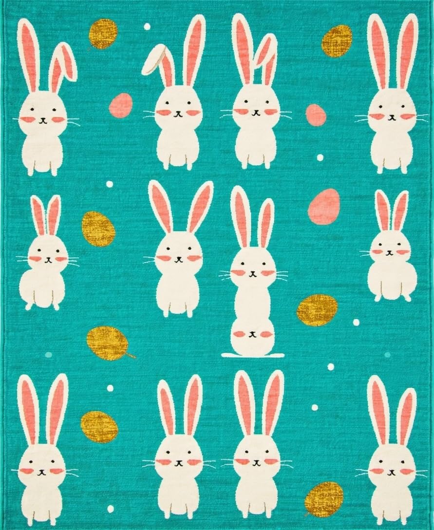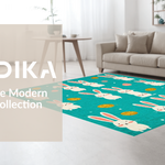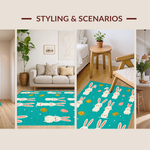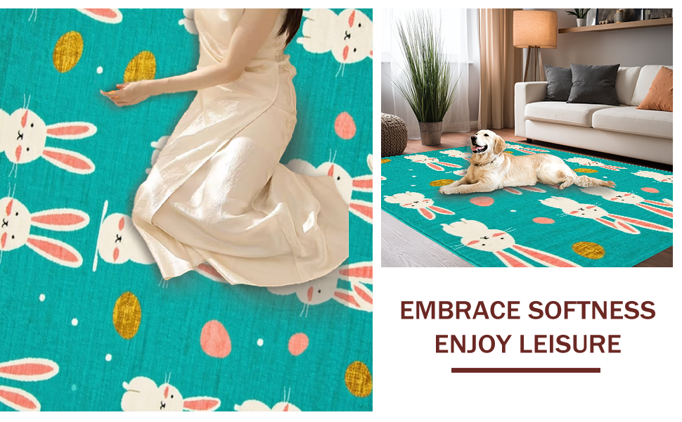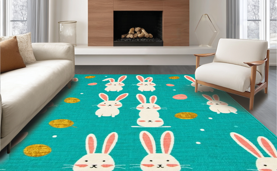 Ultra Soft Area Rug, Non Slip, Stain Resistant, Washable Area Rugs for Living Room, Bedroom, Artful Abstract Bunny Illustration Style(Blue) Overview: