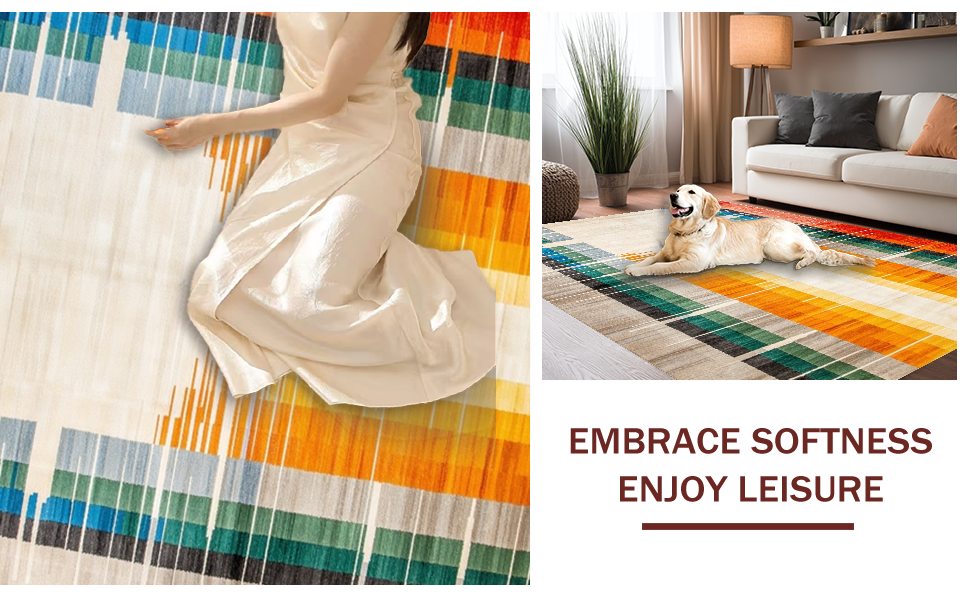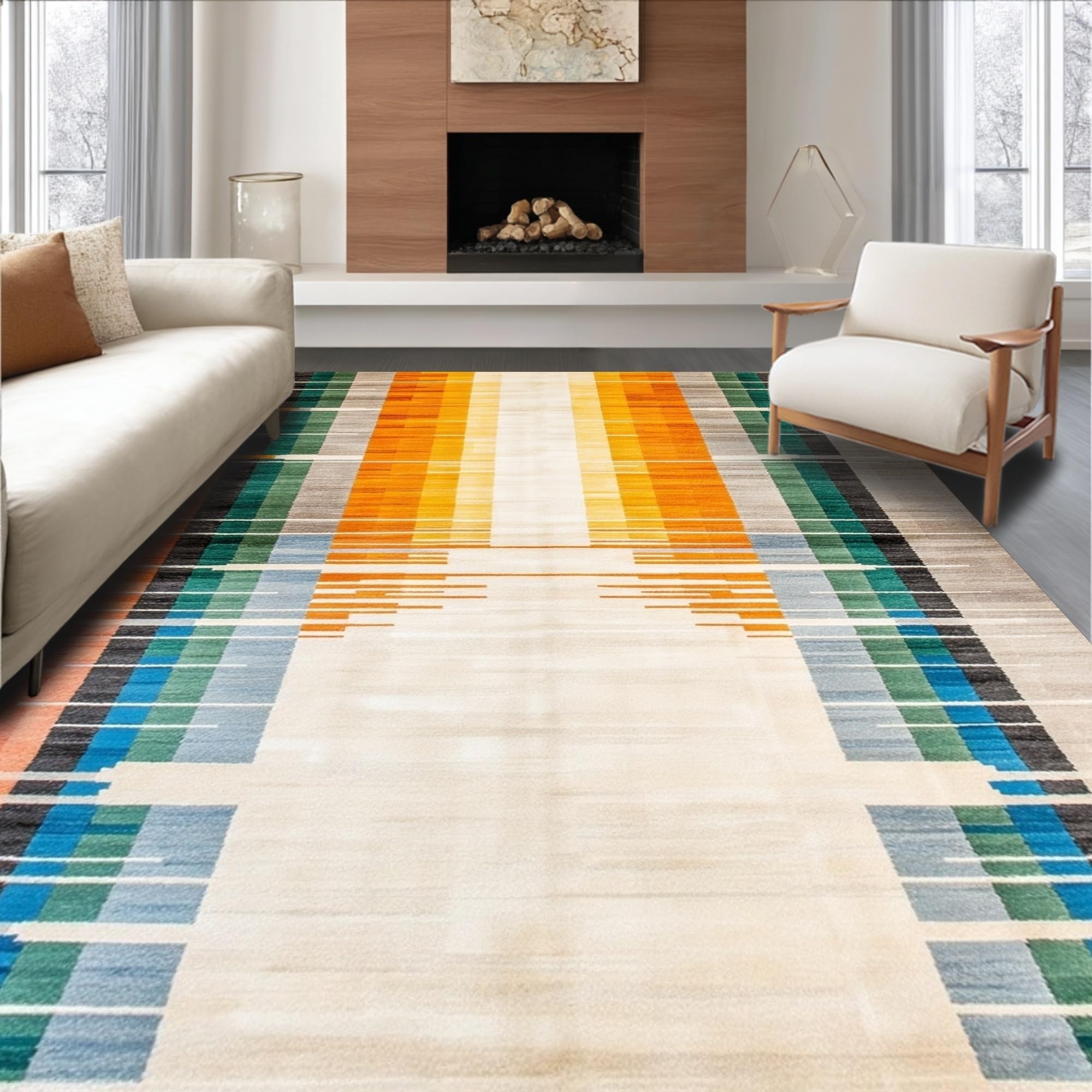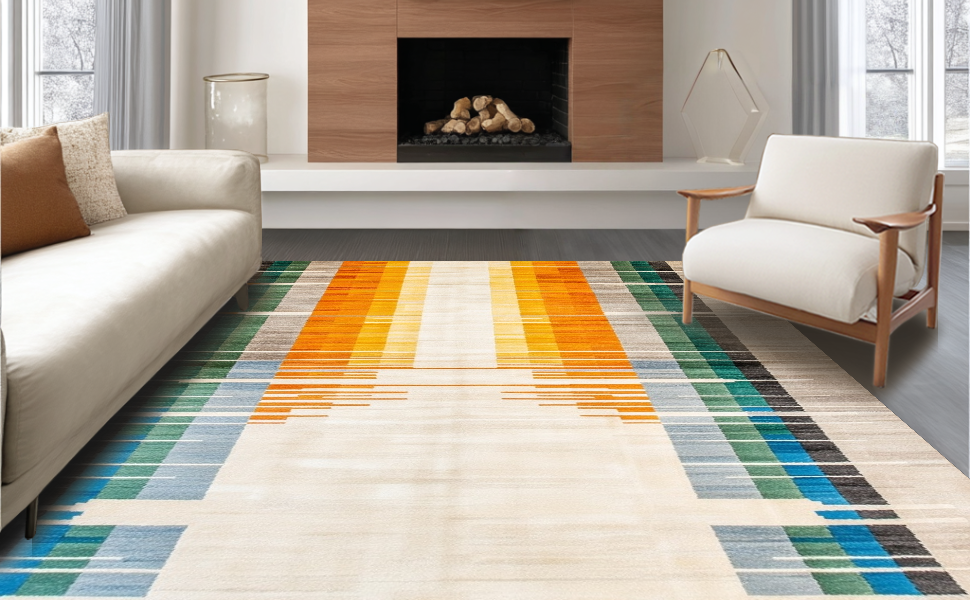 Ultra Soft Area Rug, Non Slip, Stain Resistant, Washable Area Rugs for Living Room, Bedroom, Artful Abstract Color Spectrum(Yellow) Overview: