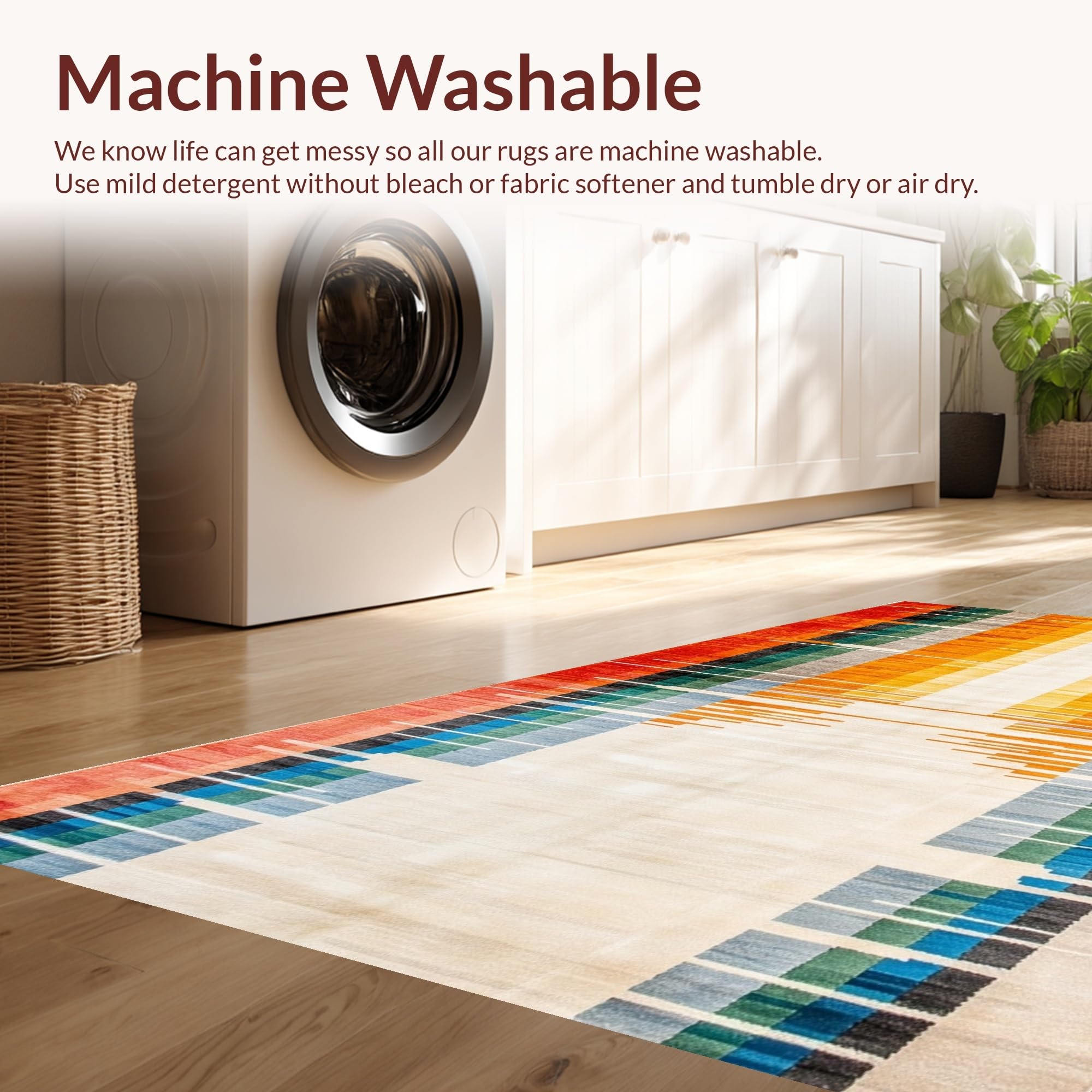 - Machine Washable: Our rugs can be easily thrown in the wash machine.