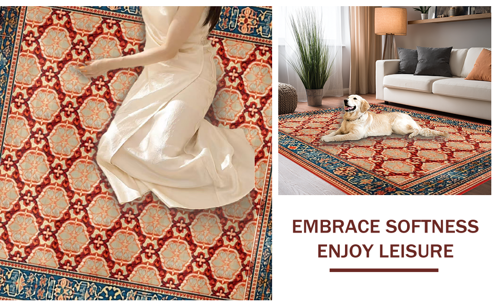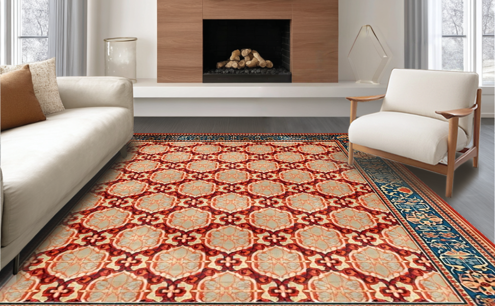 Ultra Soft Area Rug, Non Slip, Stain Resistant, Washable Area Rugs for Living Room, Bedroom, Artful Abstract Geometric Motif(Red) Overview: