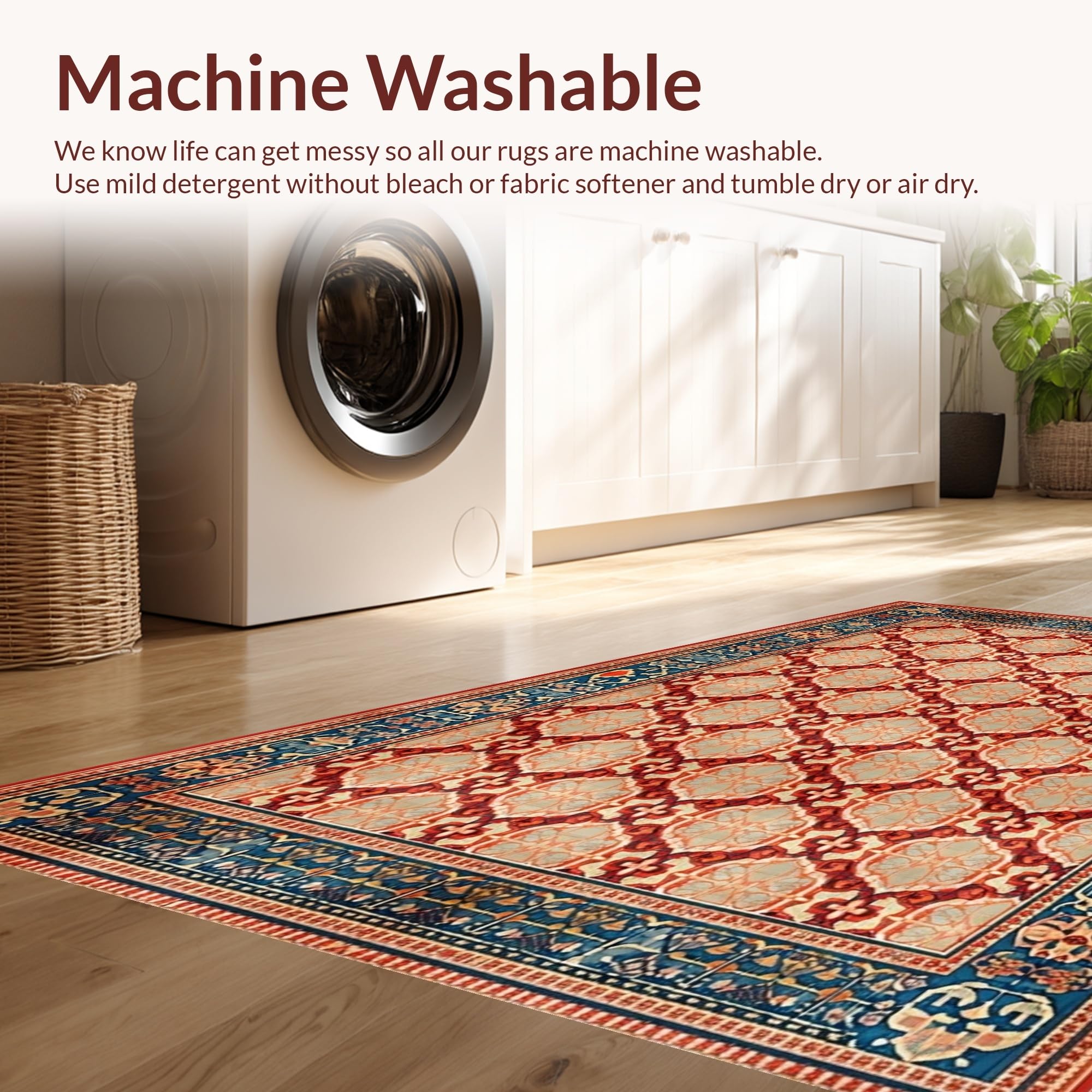 - Machine Washable: Our rugs can be easily thrown in the wash machine.