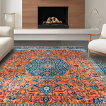Ultra Soft Area Rug, Non Slip, Stain Resistant, Washable Area Rugs for Living Room, Bedroom, Artful Abstract Lagoon Palette(Orange) Overview: