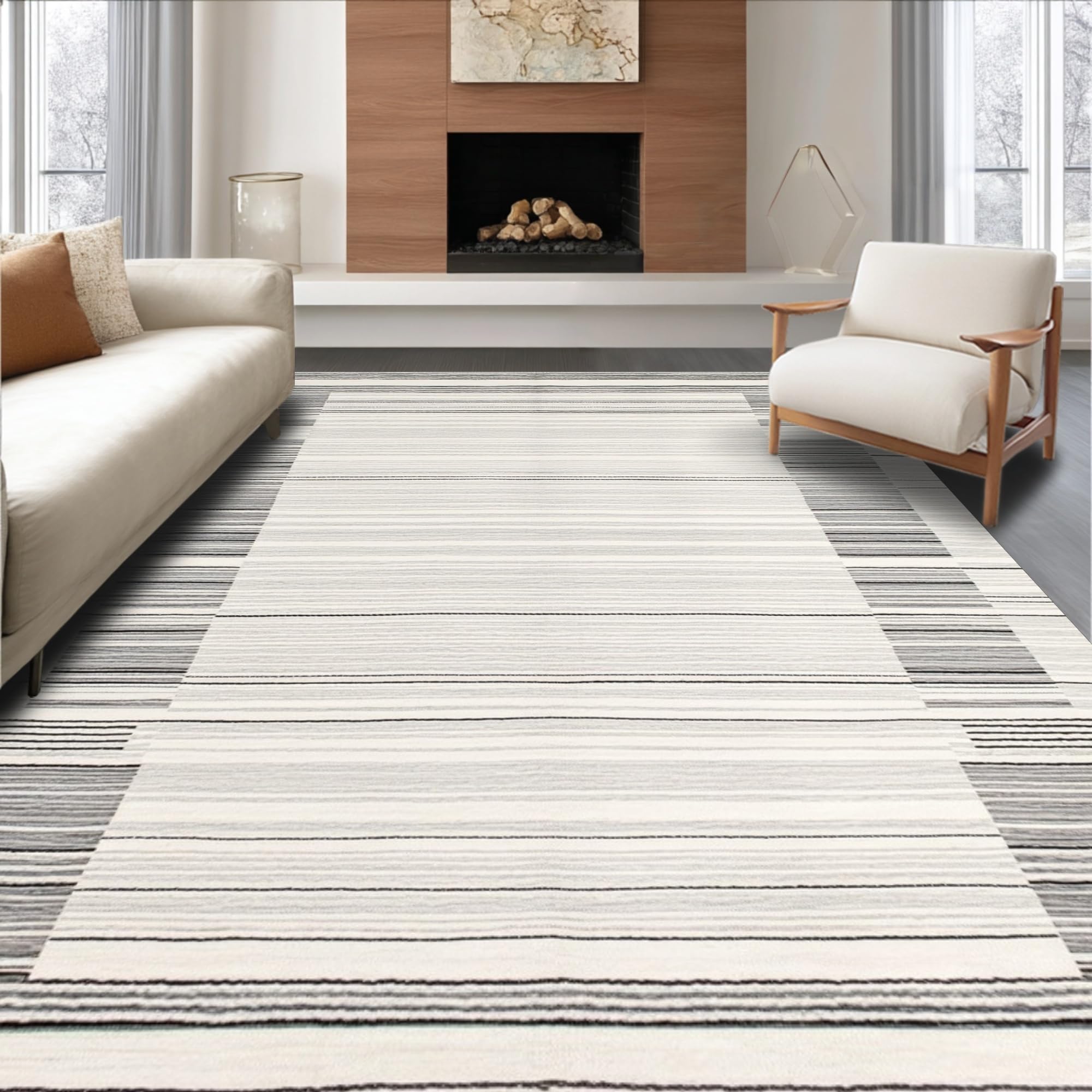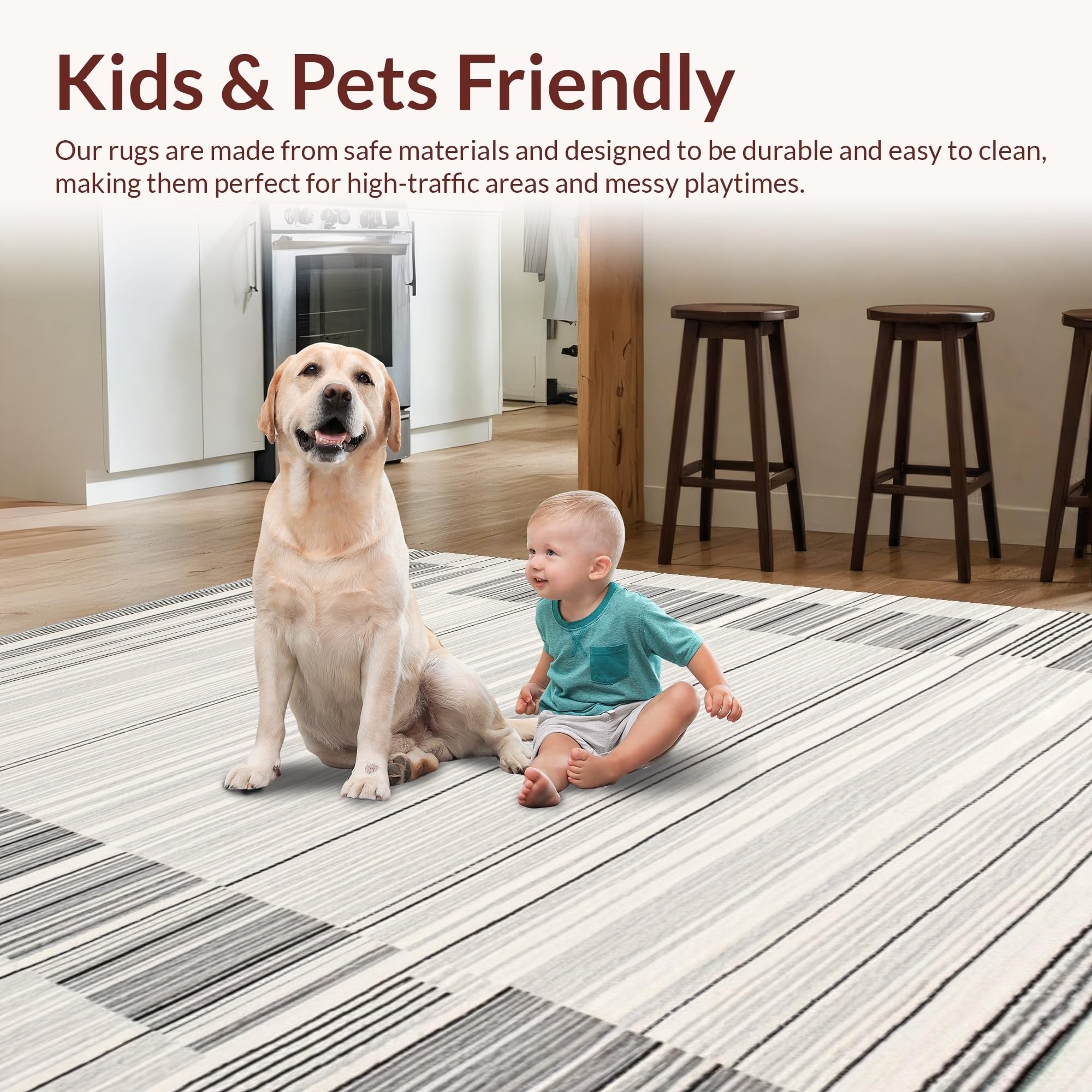 Ultra Soft Area Rug, Non Slip, Stain Resistant, Washable Area Rugs for Living Room, Bedroom, Artful Abstract Layered Elements(Gray) Overview: