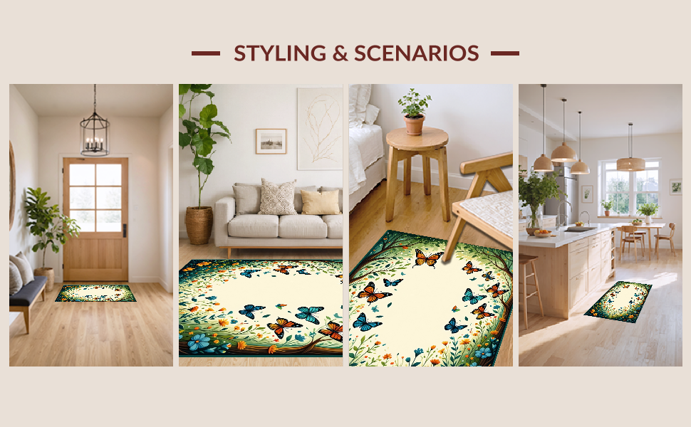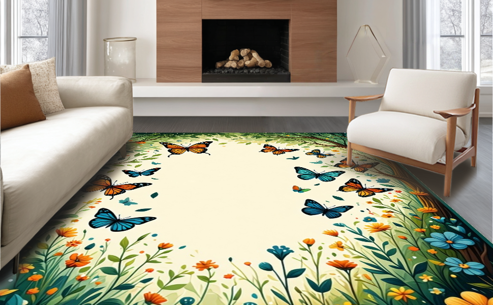 Ultra Soft Area Rug, Non Slip, Stain Resistant, Washable Area Rugs for Living Room, Bedroom, Artful Abstract Nature Composition(Green) Overview: