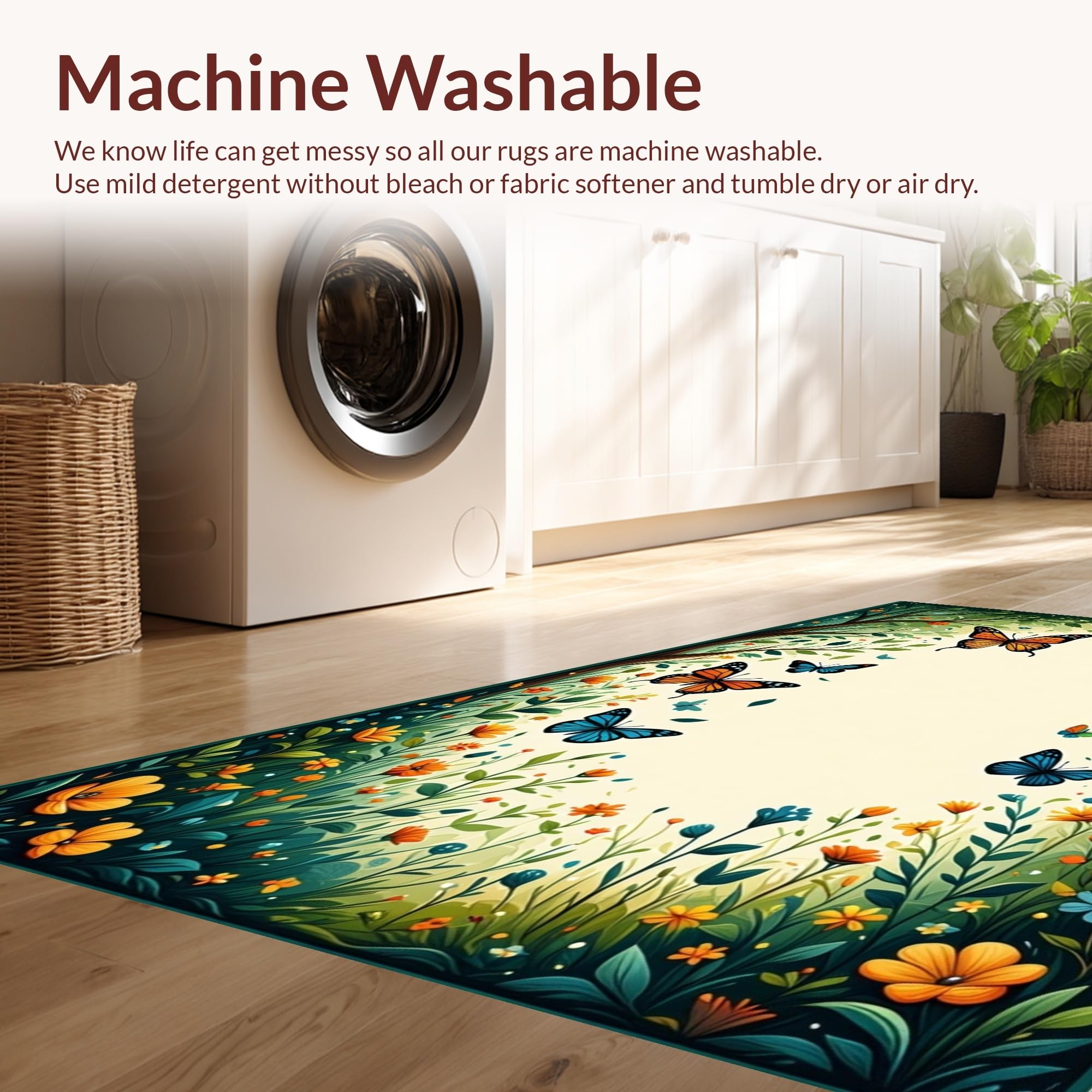 - Machine Washable: Our rugs can be easily thrown in the wash machine.