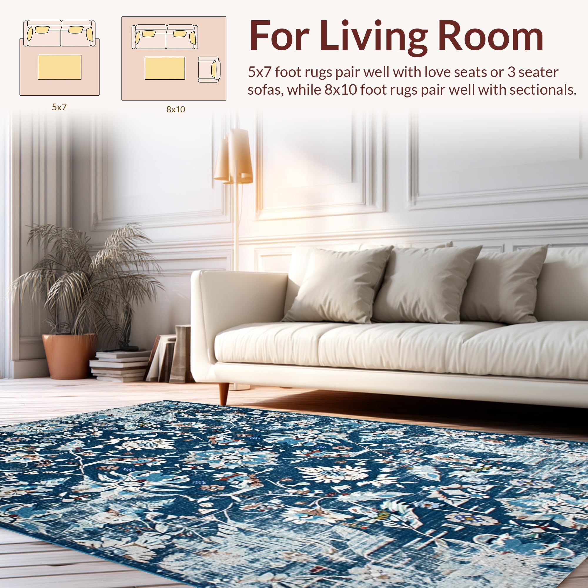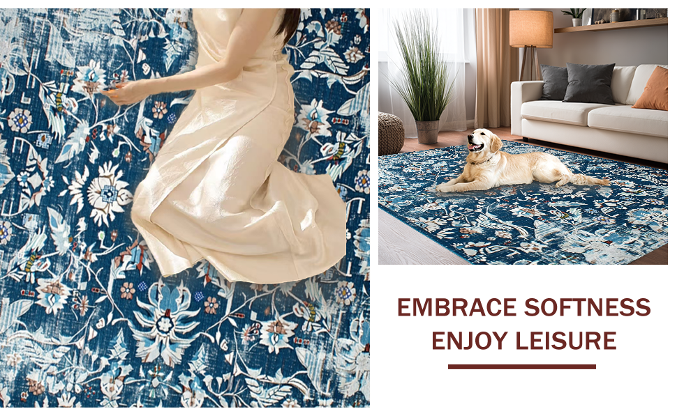 Ultra Soft Area Rug, Non Slip, Stain Resistant, Washable Area Rugs for Living Room, Bedroom, Artful Abstract Pastel Motif(Blue) Overview: