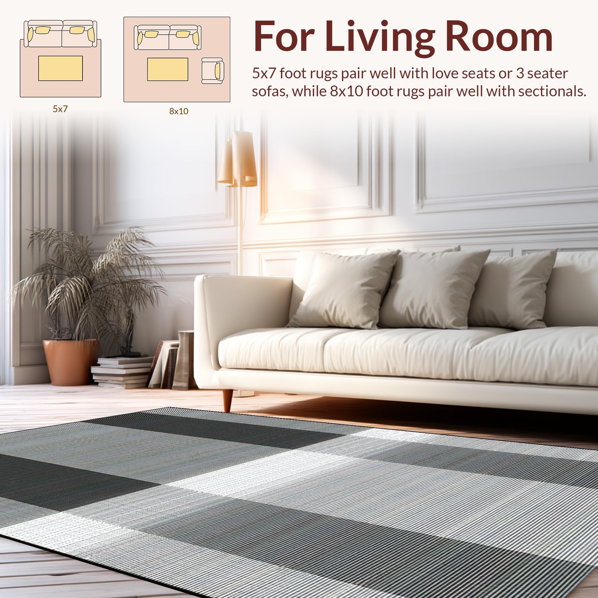 Ultra Soft Area Rug, Non Slip, Stain Resistant, Washable Area Rugs for Living Room, Bedroom, Artful Abstract Wave Pattern in Monochrome(Gray) Overview: