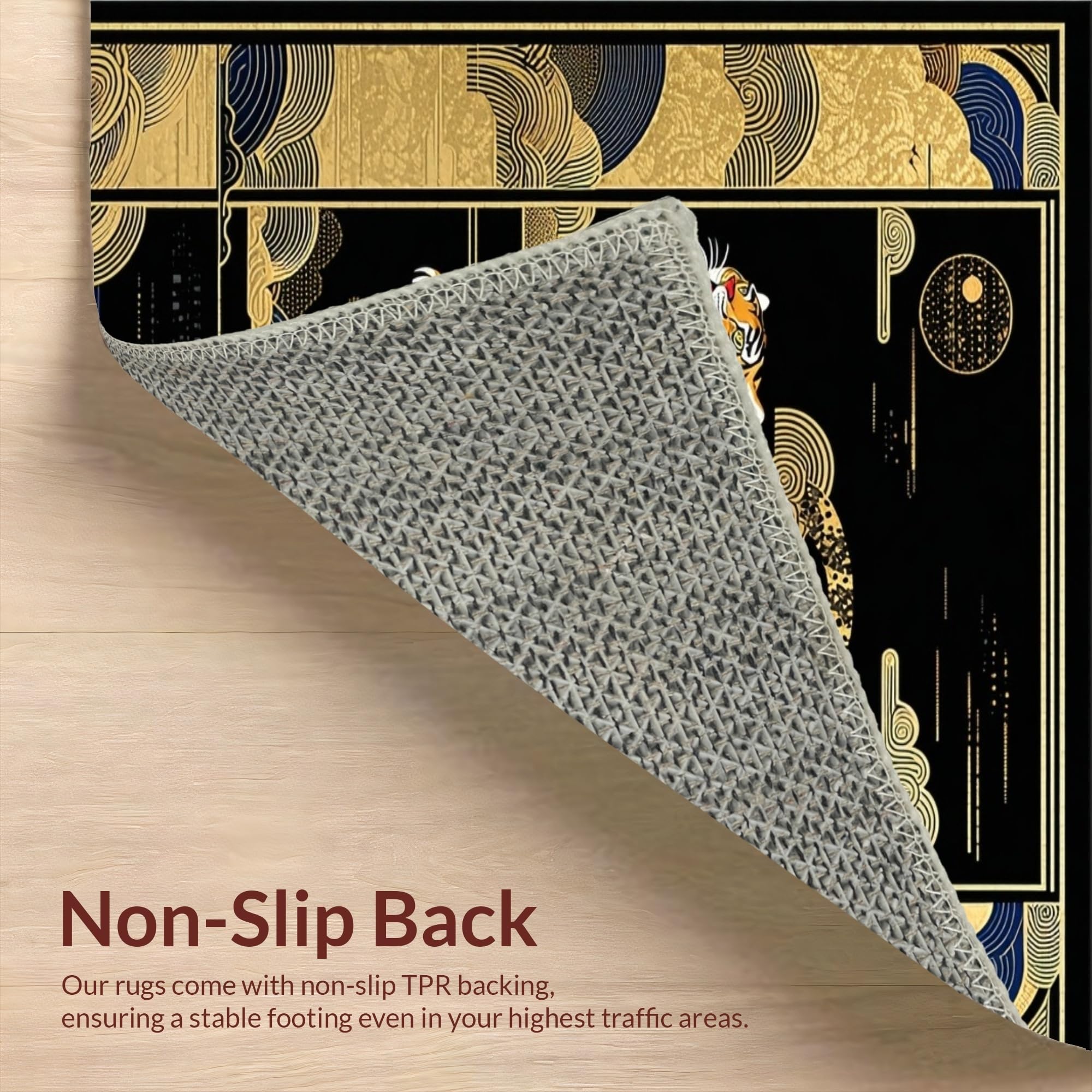 Ultra Soft Area Rug, Non Slip, Stain Resistant, Washable Area Rugs for Living Room, Bedroom, Artful Abstract Wildlife Representation(Gold) Overview: