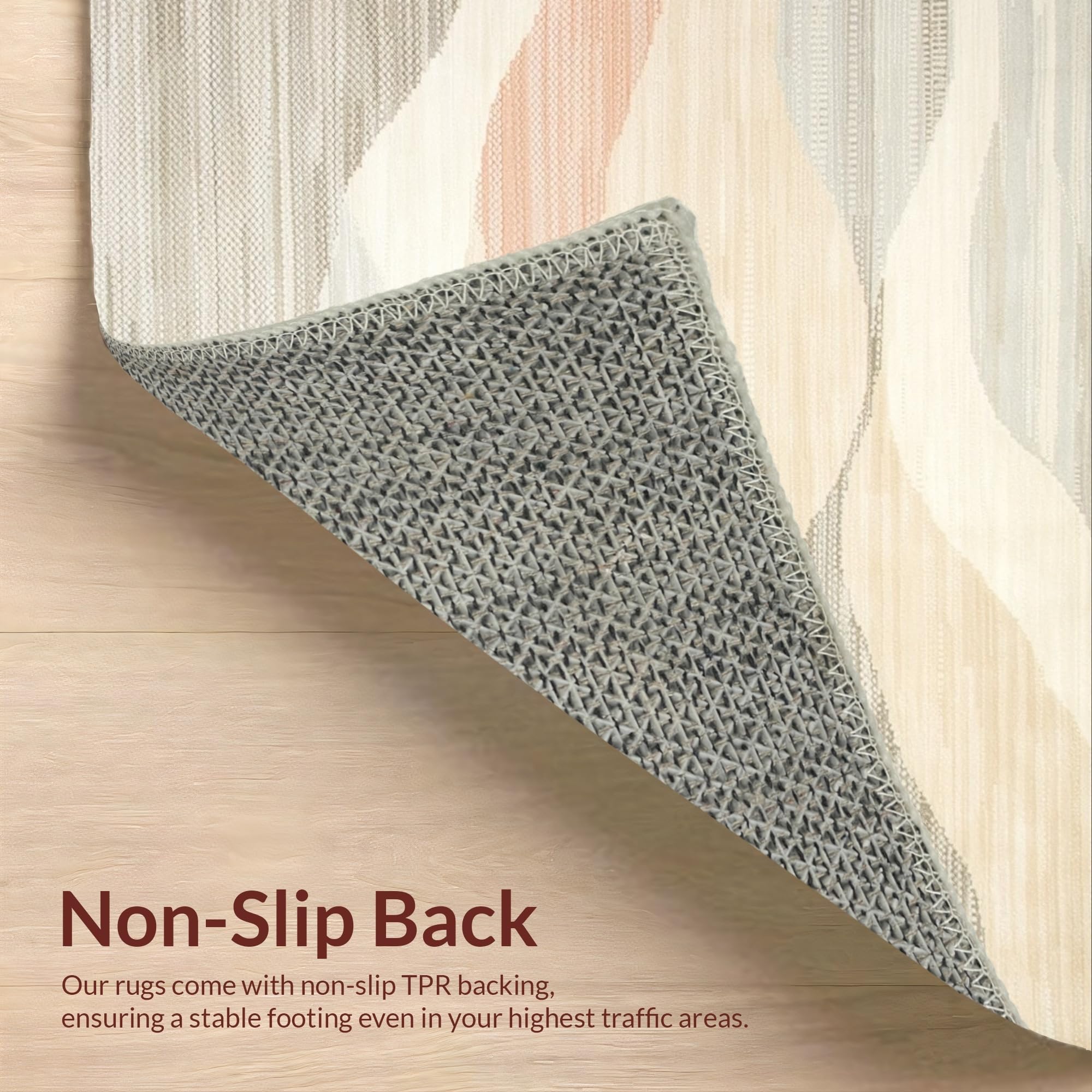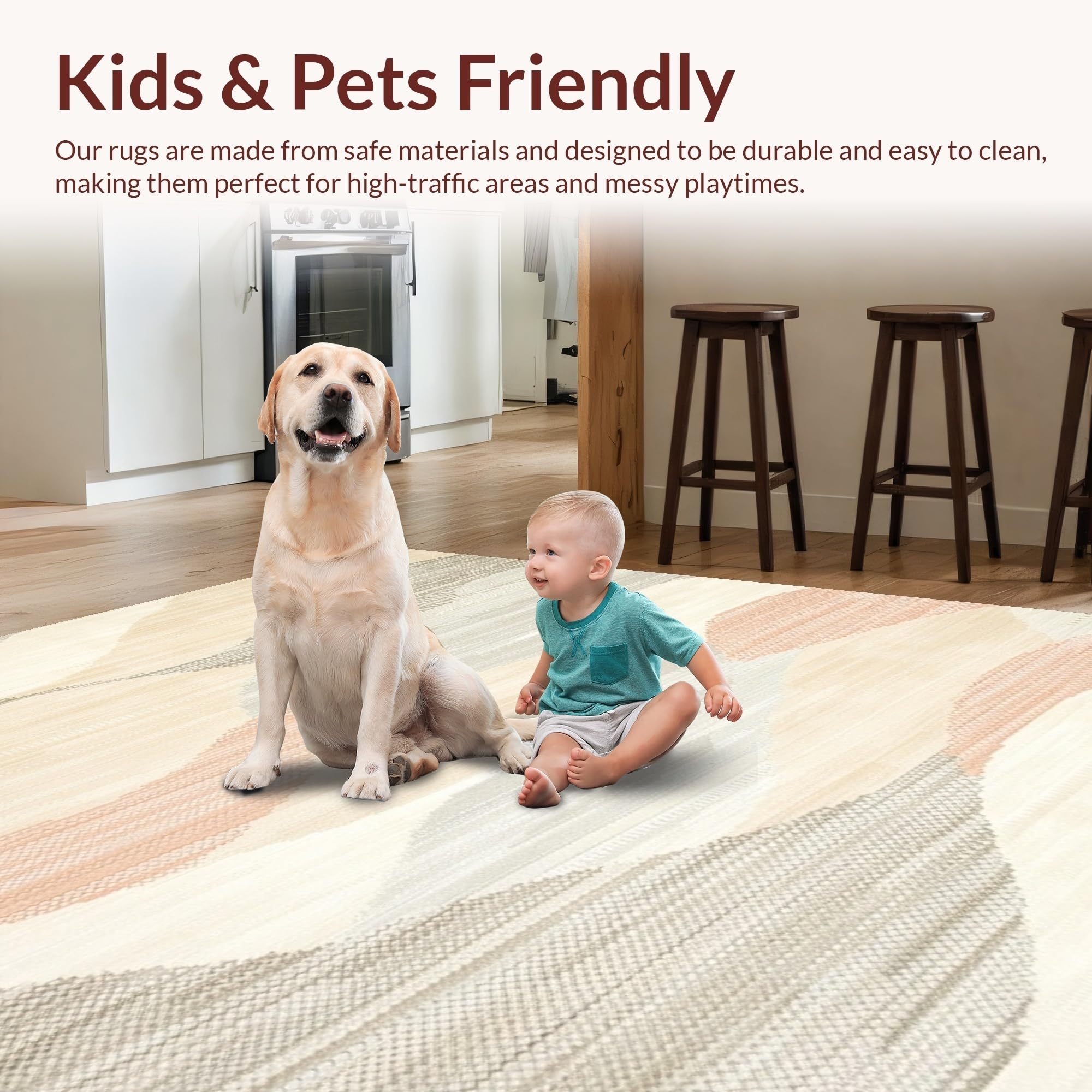 Ultra Soft Area Rug, Non Slip, Stain Resistant, Washable Area Rugs for Living Room, Bedroom, Artful Beige Ogee Design Scheme(Beige) Overview: