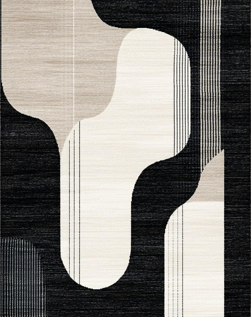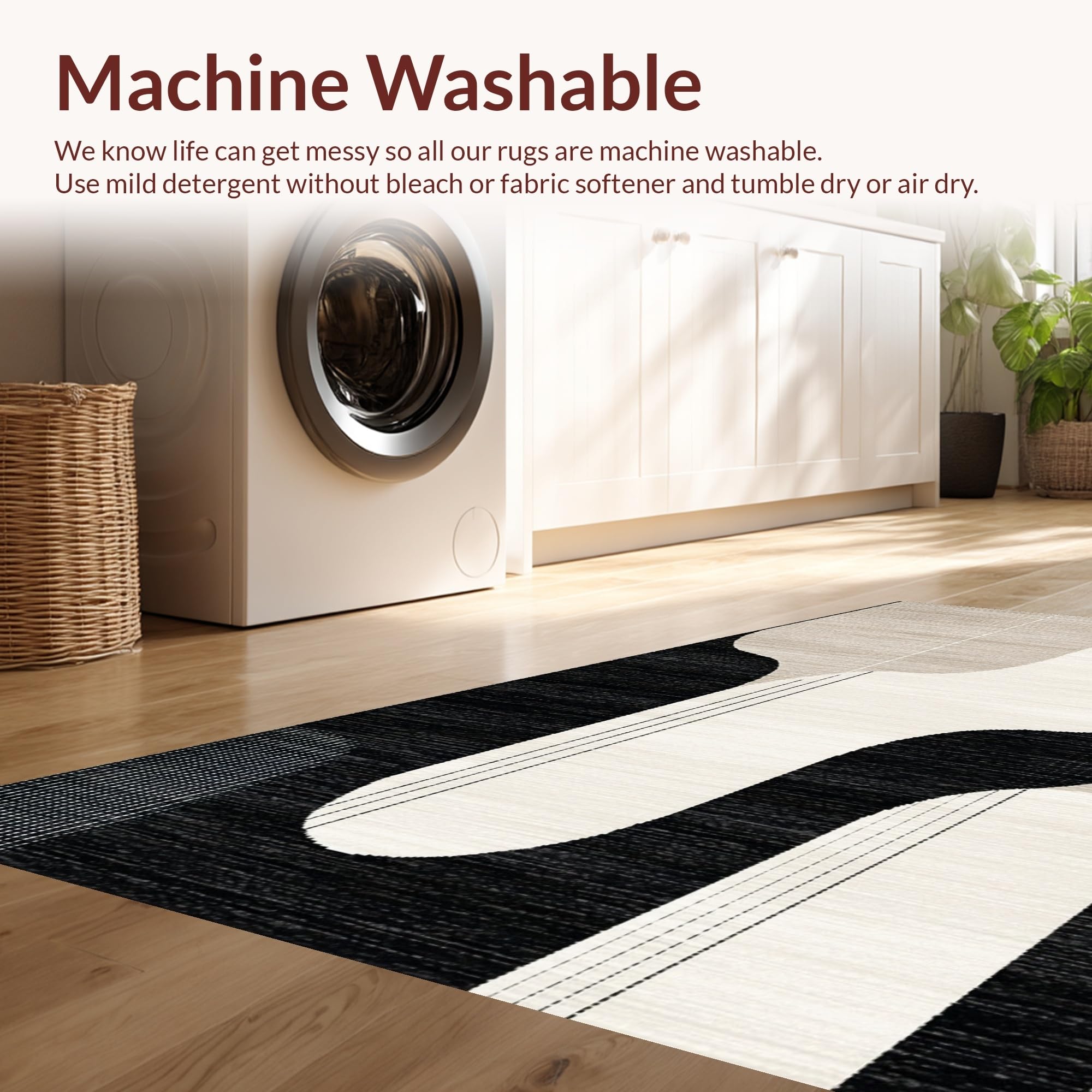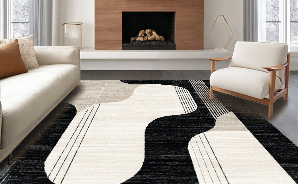 Ultra Soft Area Rug, Non Slip, Stain Resistant, Washable Area Rugs for Living Room, Bedroom, Artful Black and Beige Fluid Motion(Beige) Overview: