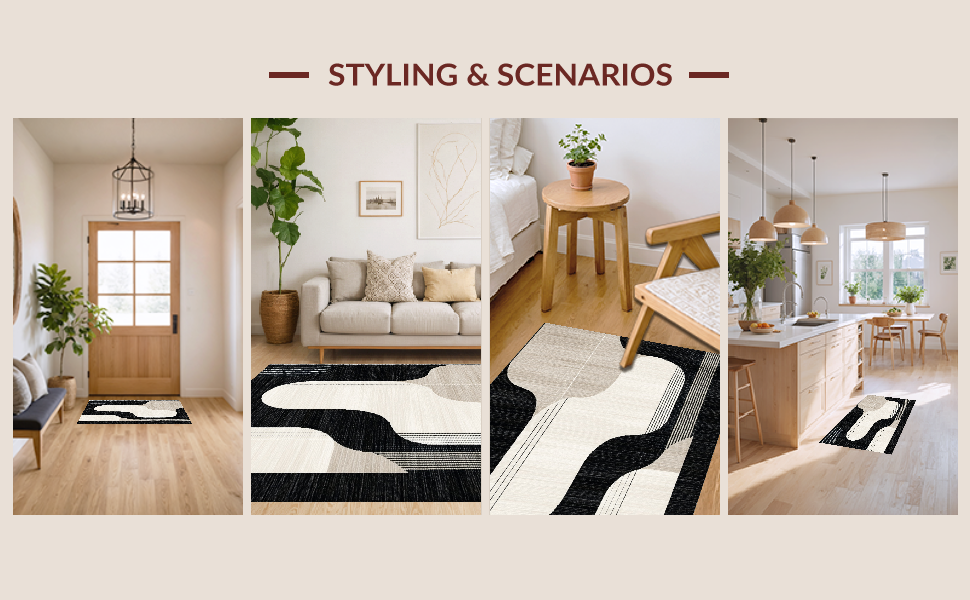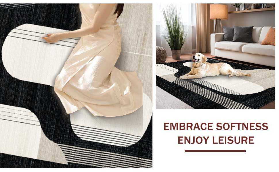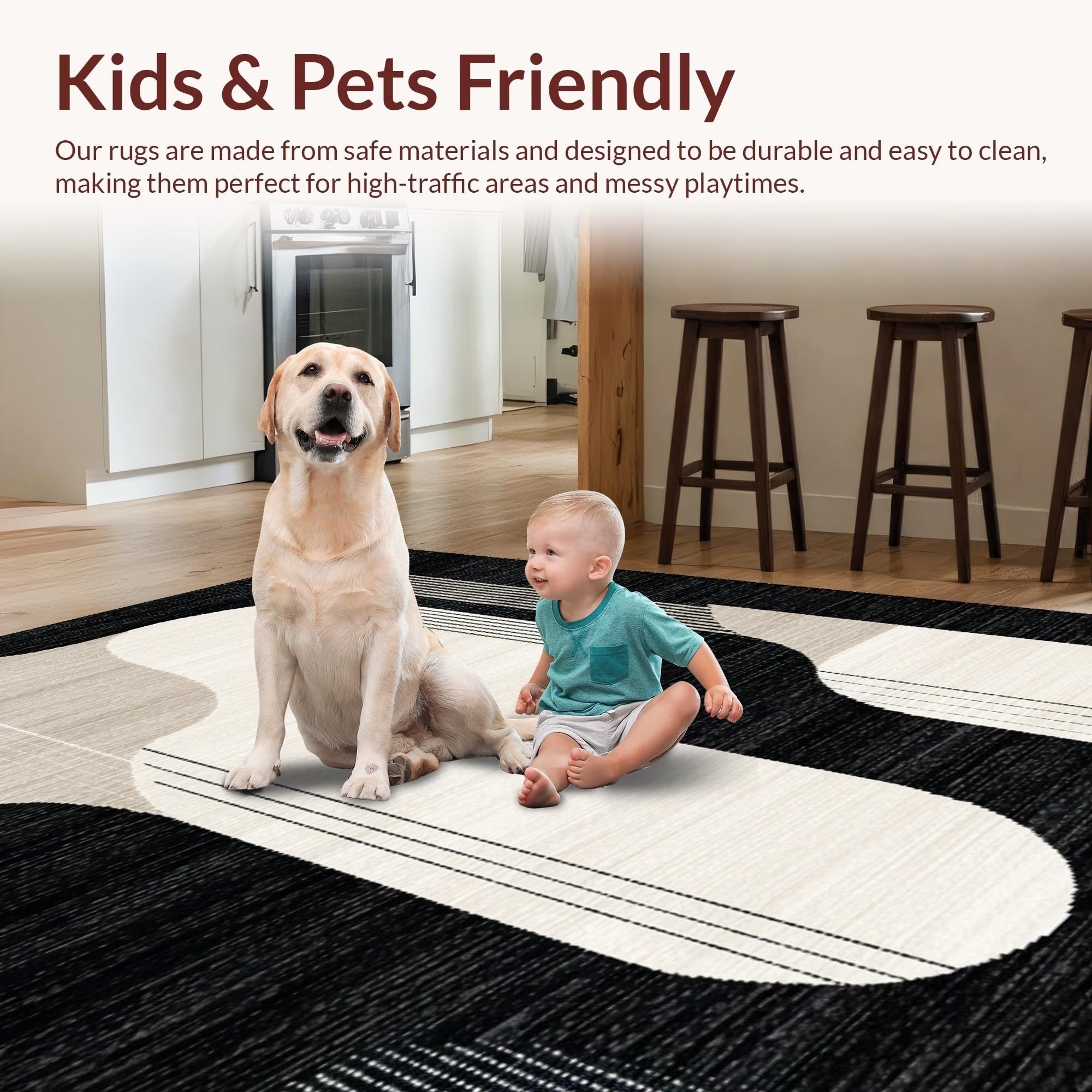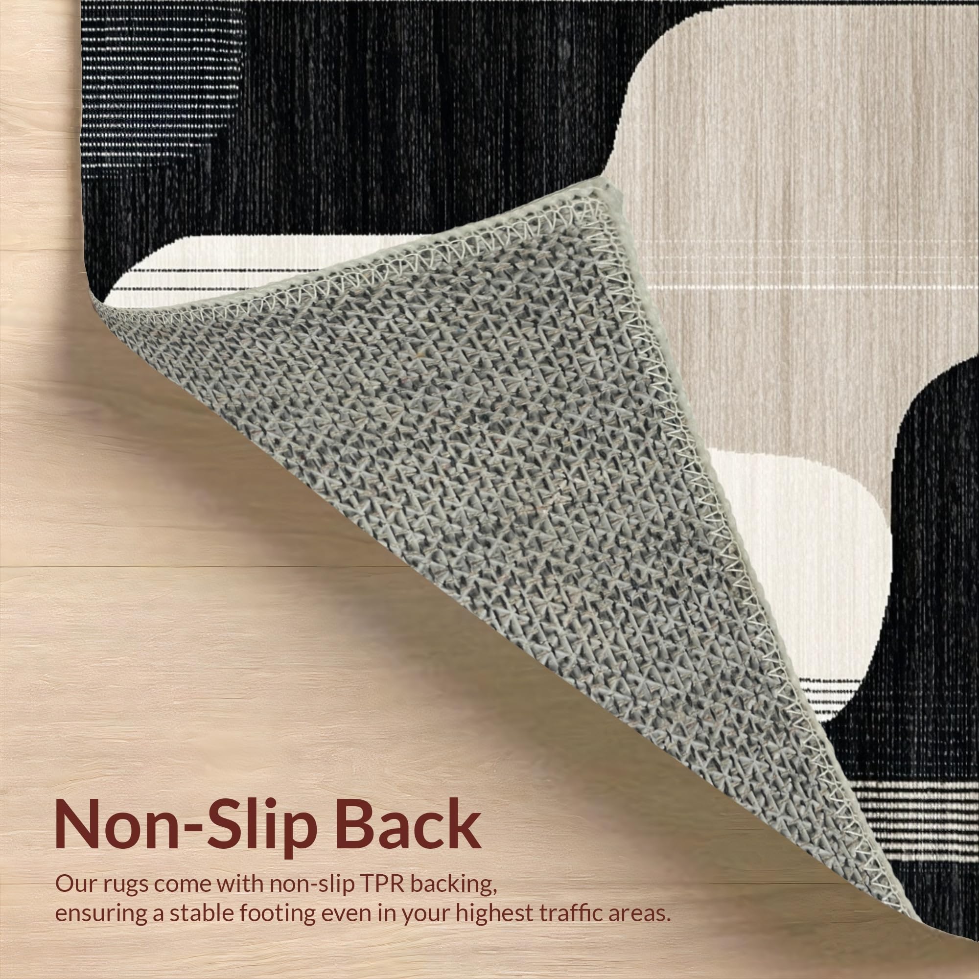 Ultra Soft Area Rug, Non Slip, Stain Resistant, Washable Area Rugs for Living Room, Bedroom, Artful Black and Beige Fluid Motion(Beige) Overview: