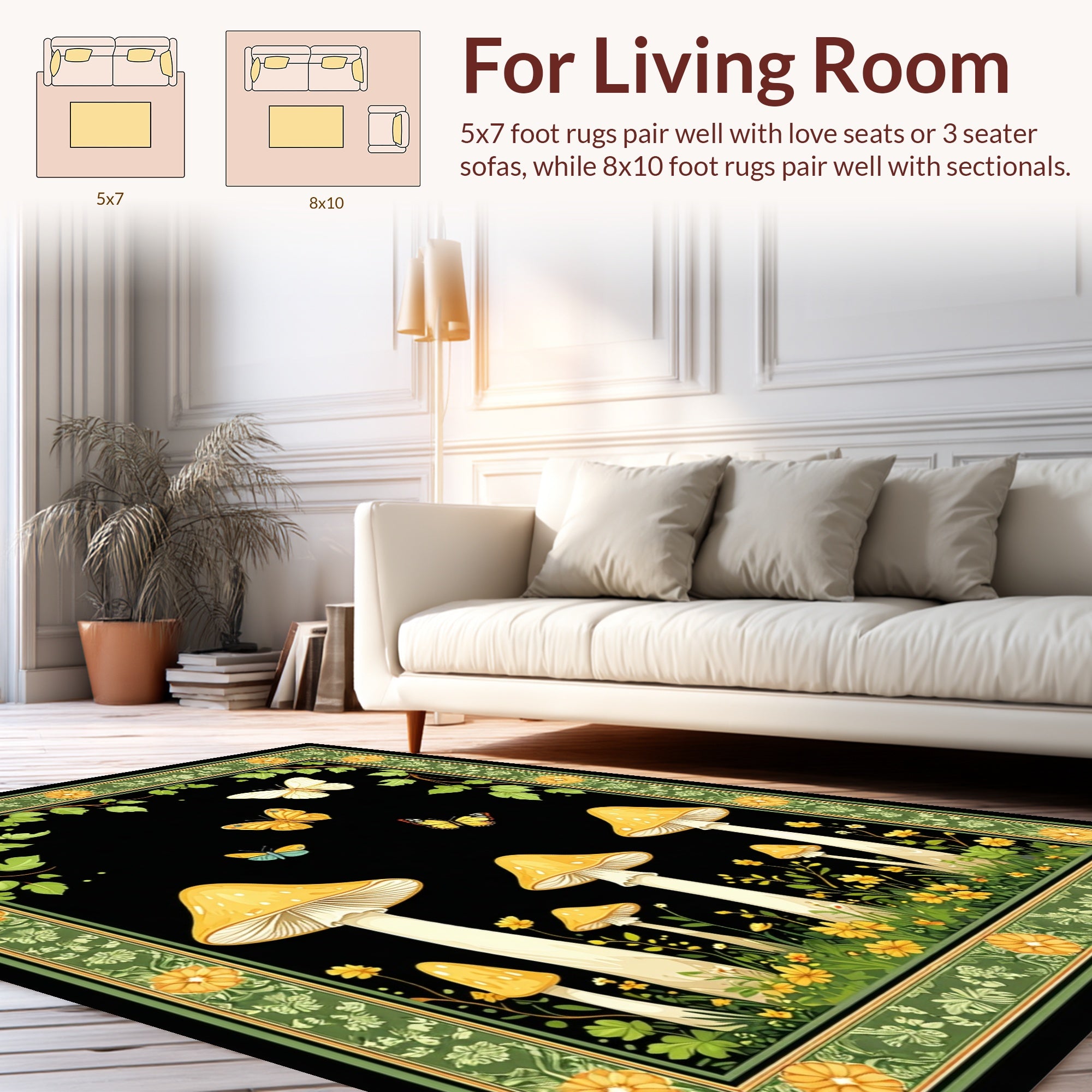 Flatwoven High Traffic Area Rug, Artful Black and Green, Non Slip, Stain Resistant, Washable Area Rugs for Living Room, Bedroom (Yellow) Overview: