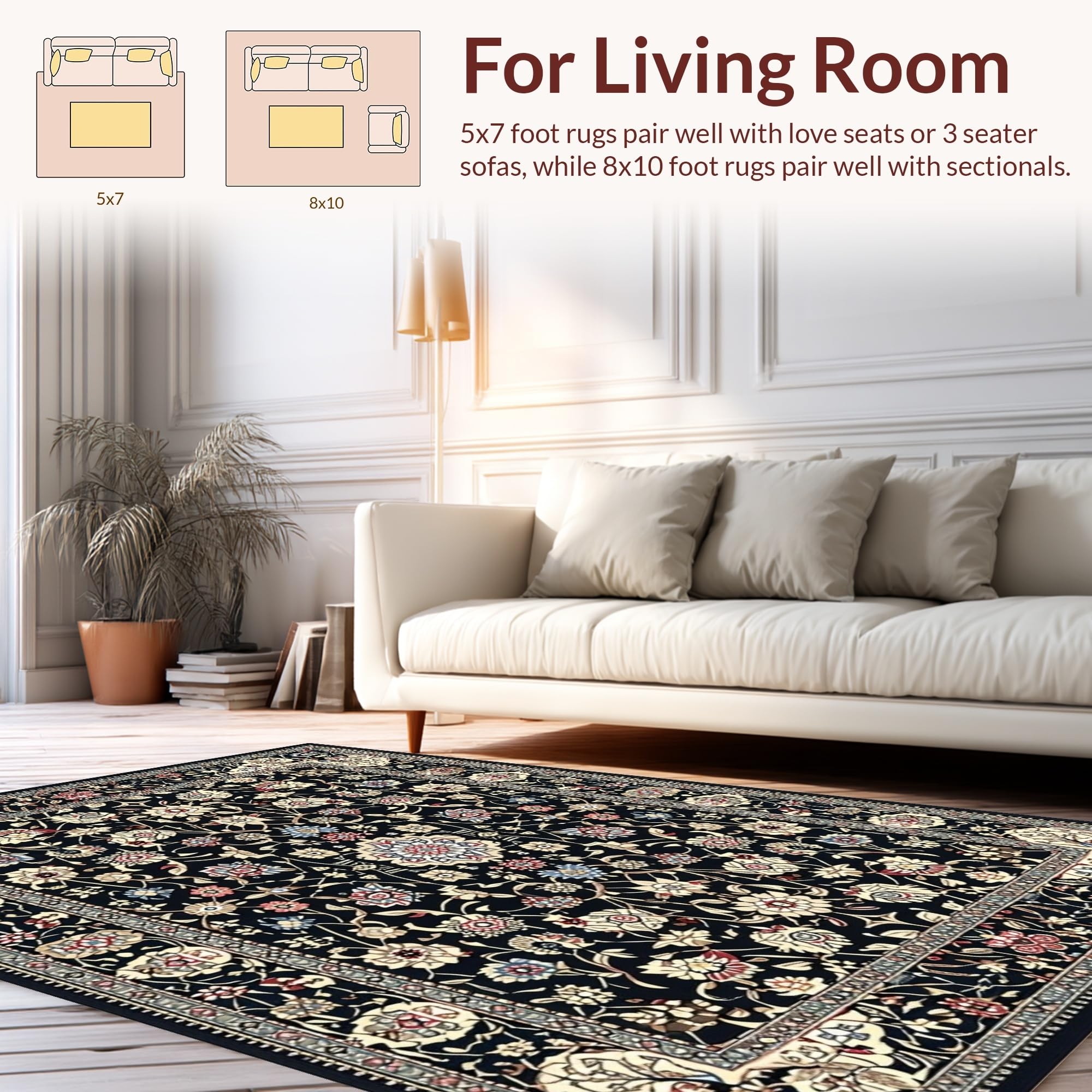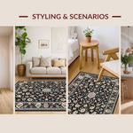 Ultra Soft Area Rug, Non Slip, Stain Resistant, Washable Area Rugs for Living Room, Bedroom, Artful Black and Grey Ogee Style(Black) Overview: