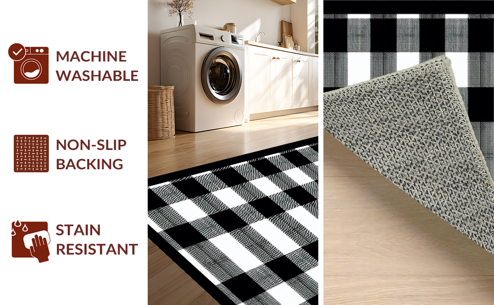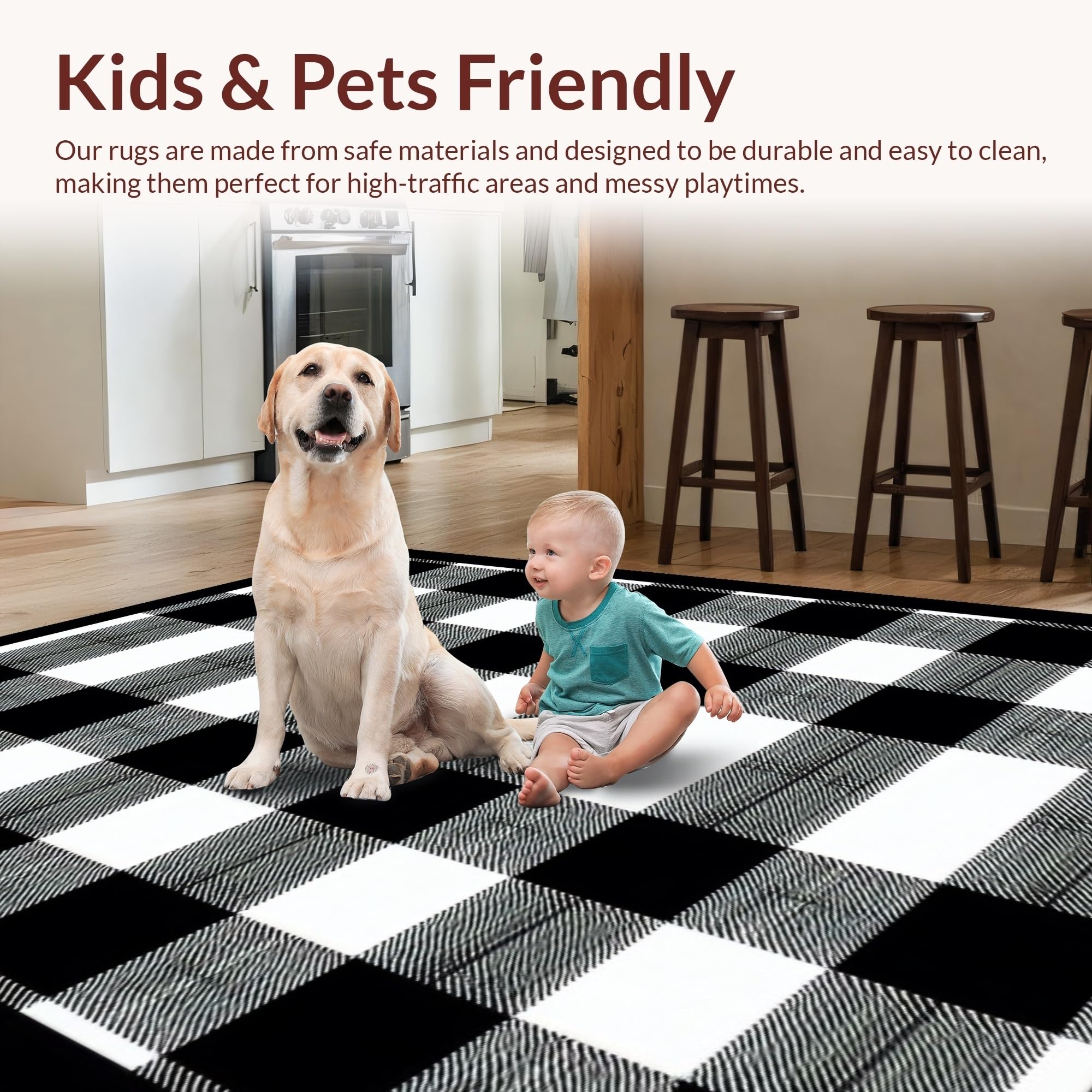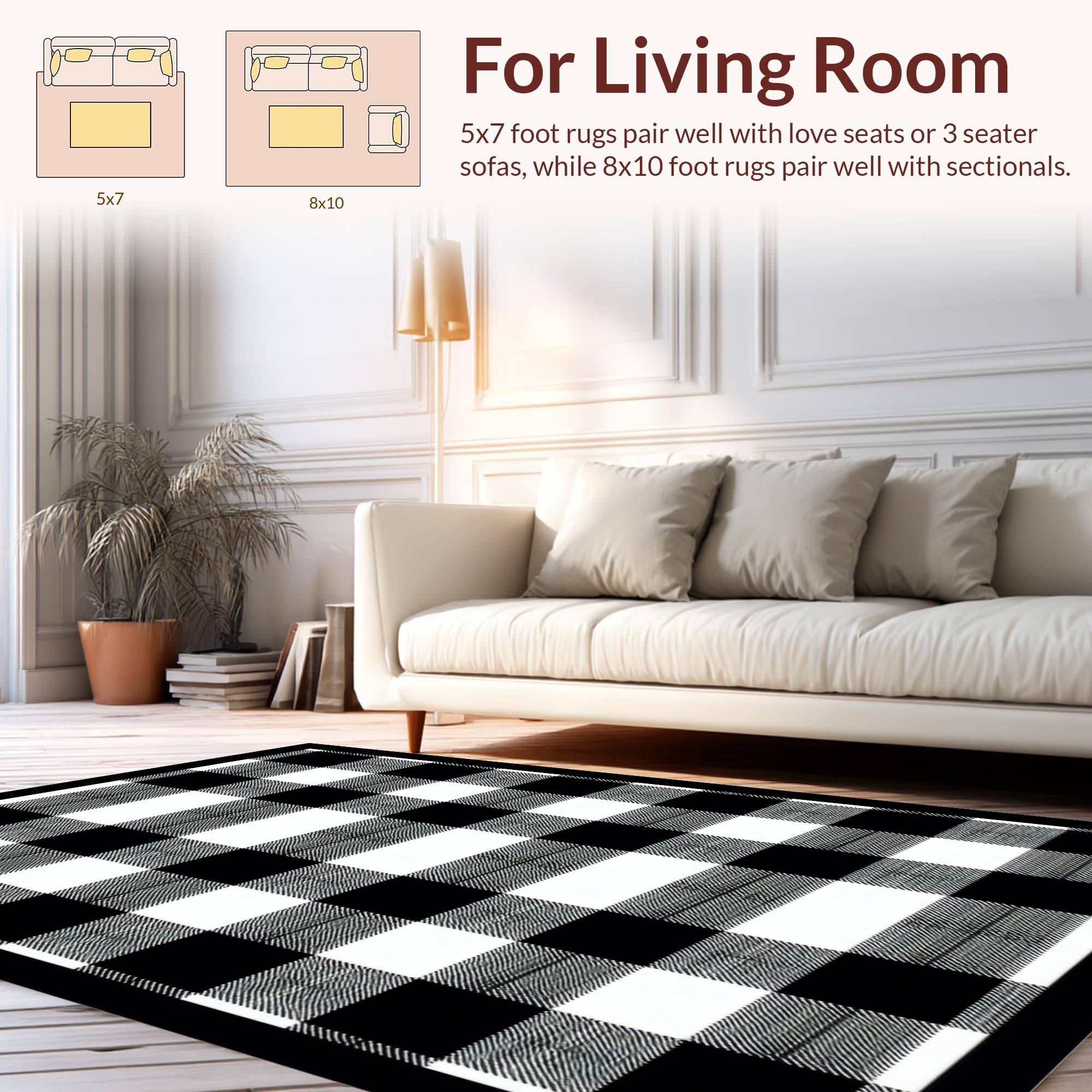 Ultra Soft Area Rug, Non Slip, Stain Resistant, Washable Area Rugs for Living Room, Bedroom, Artful Black and White Checkerboard(Black) Overview: