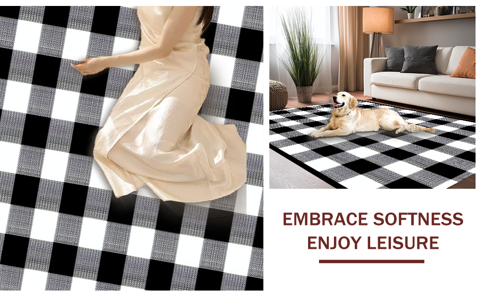 Ultra Soft Area Rug, Non Slip, Stain Resistant, Washable Area Rugs for Living Room, Bedroom, Artful Black and White Layering(Black) Overview: