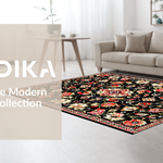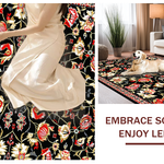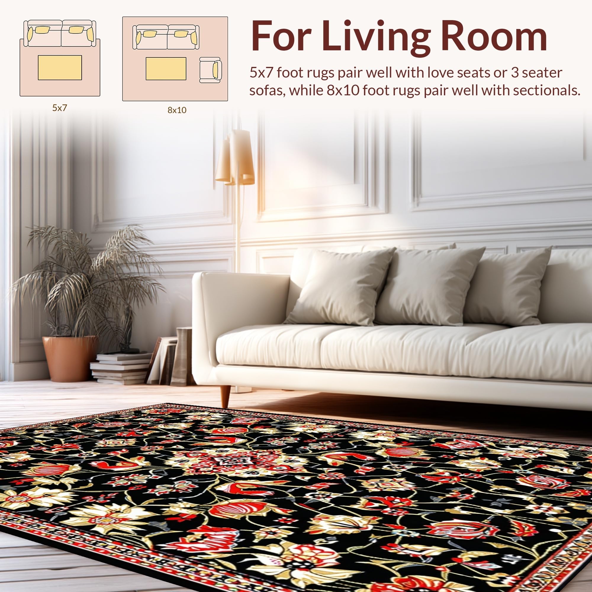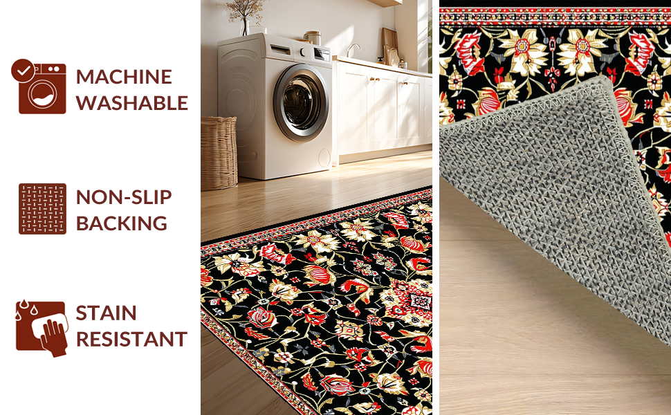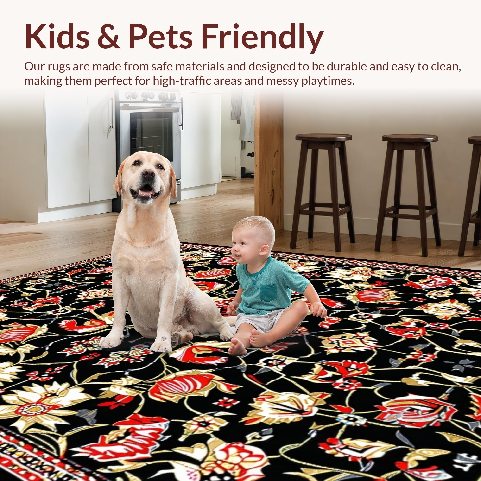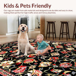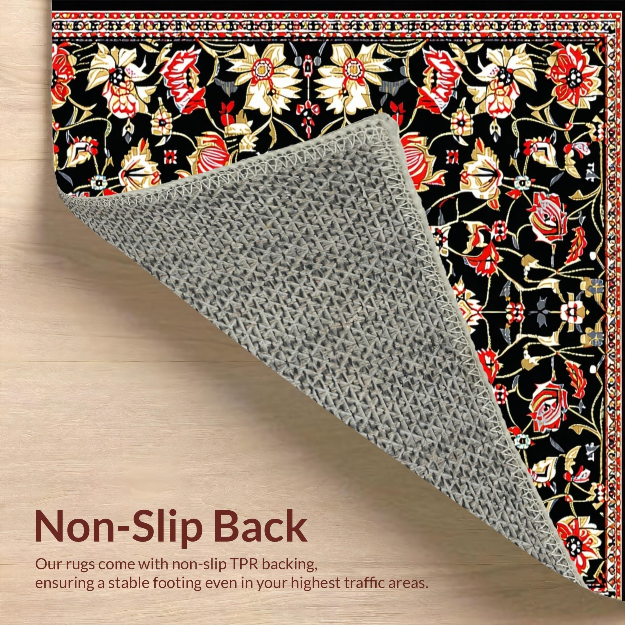 Ultra Soft Area Rug, Non Slip, Stain Resistant, Washable Area Rugs for Living Room, Bedroom, Artful Black Floral Display(Black) Overview: