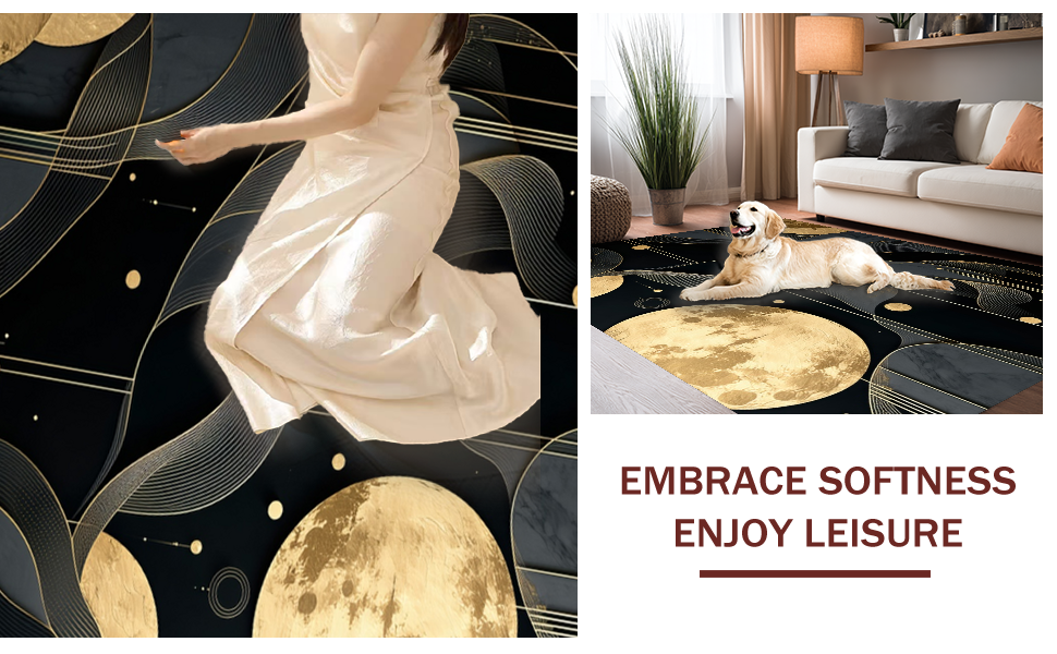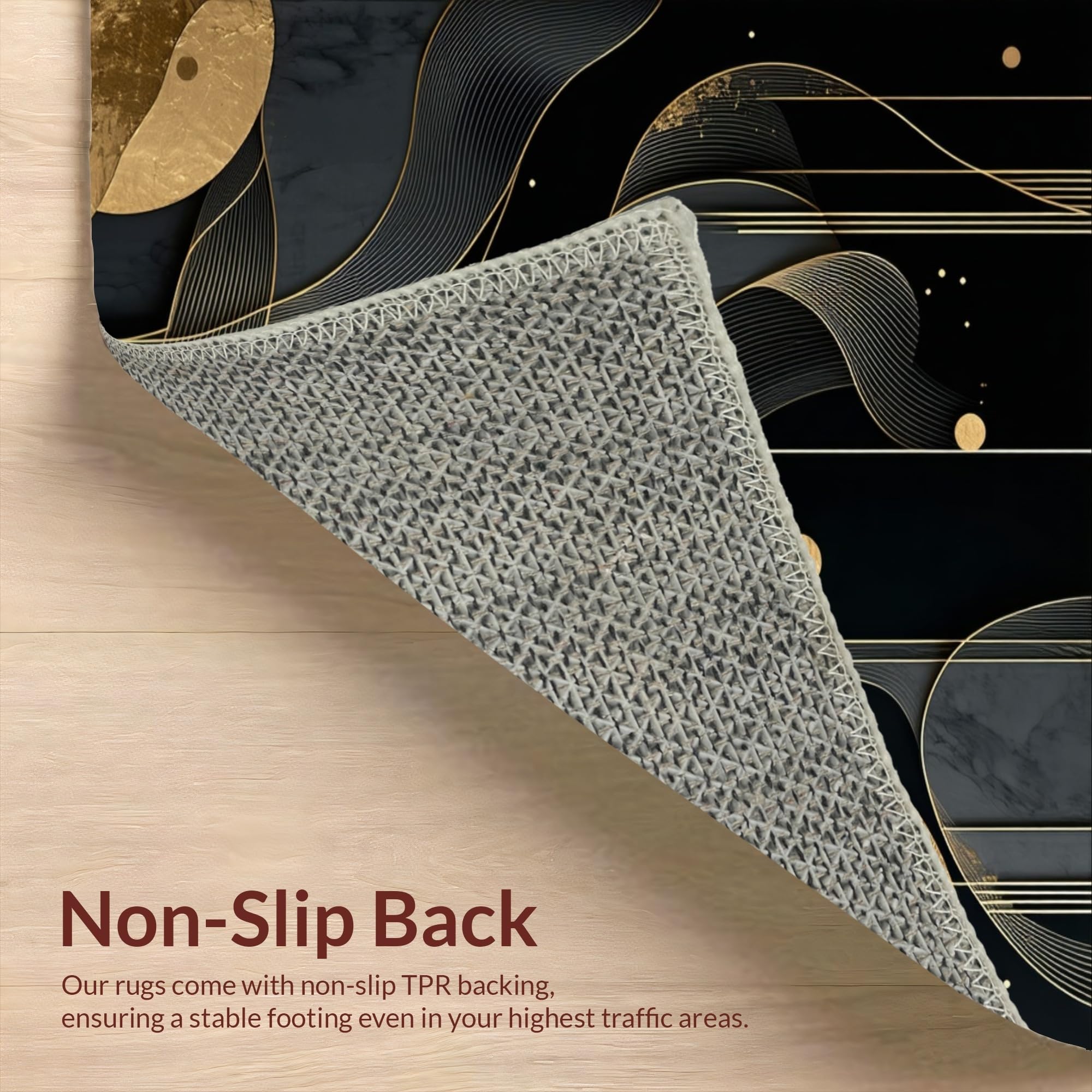 Ultra Soft Area Rug, Non Slip, Stain Resistant, Washable Area Rugs for Living Room, Bedroom, Artful Black Gold Geometric Composition(Black) Overview: