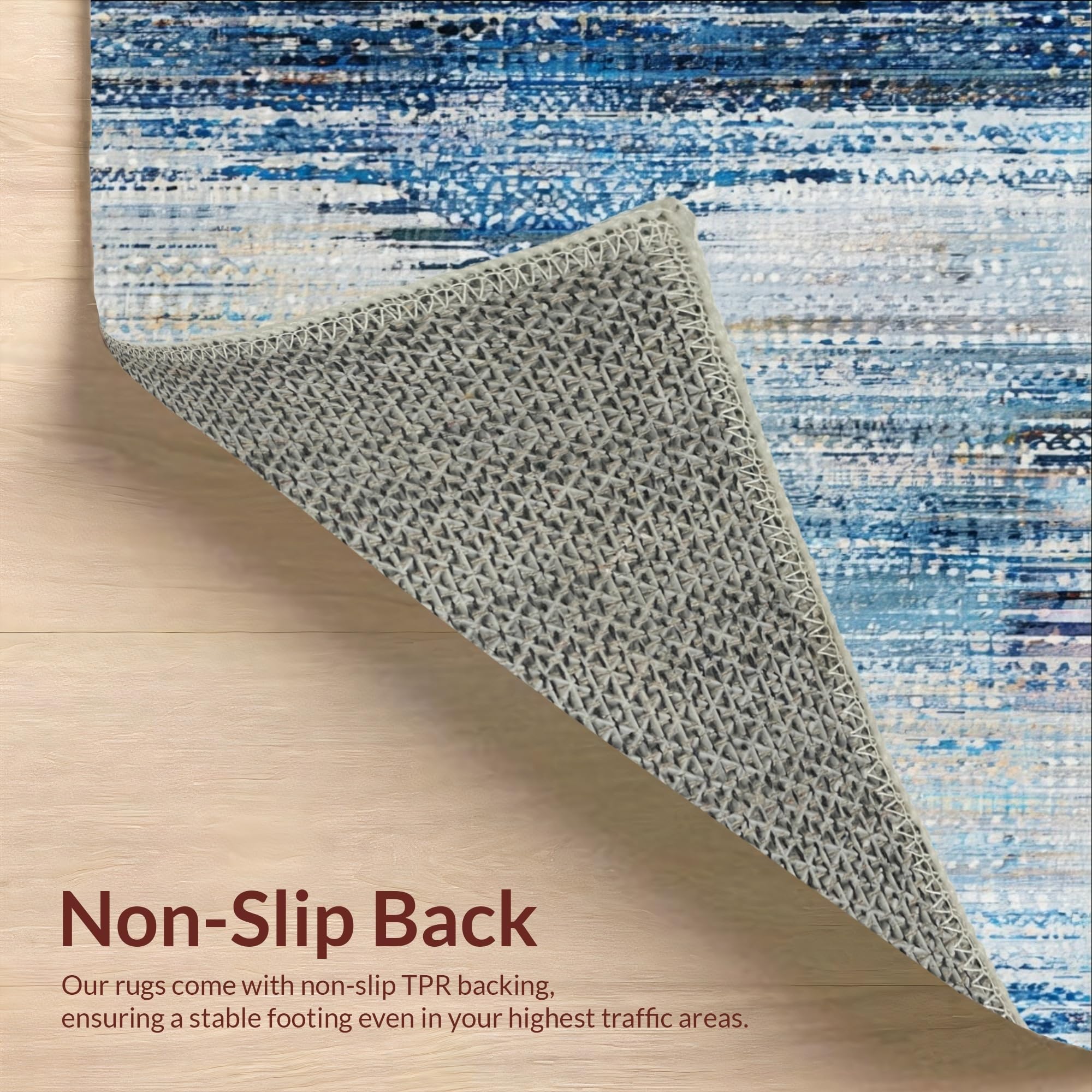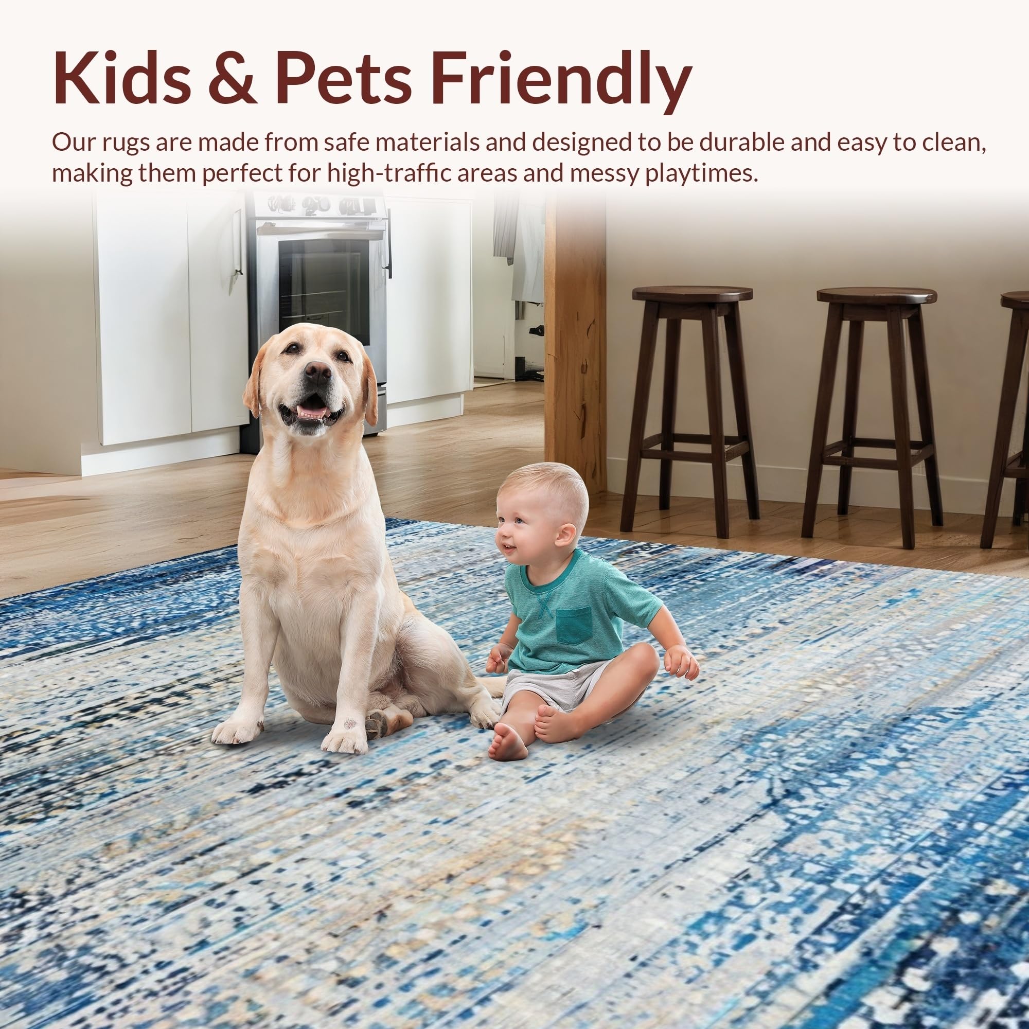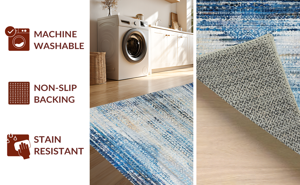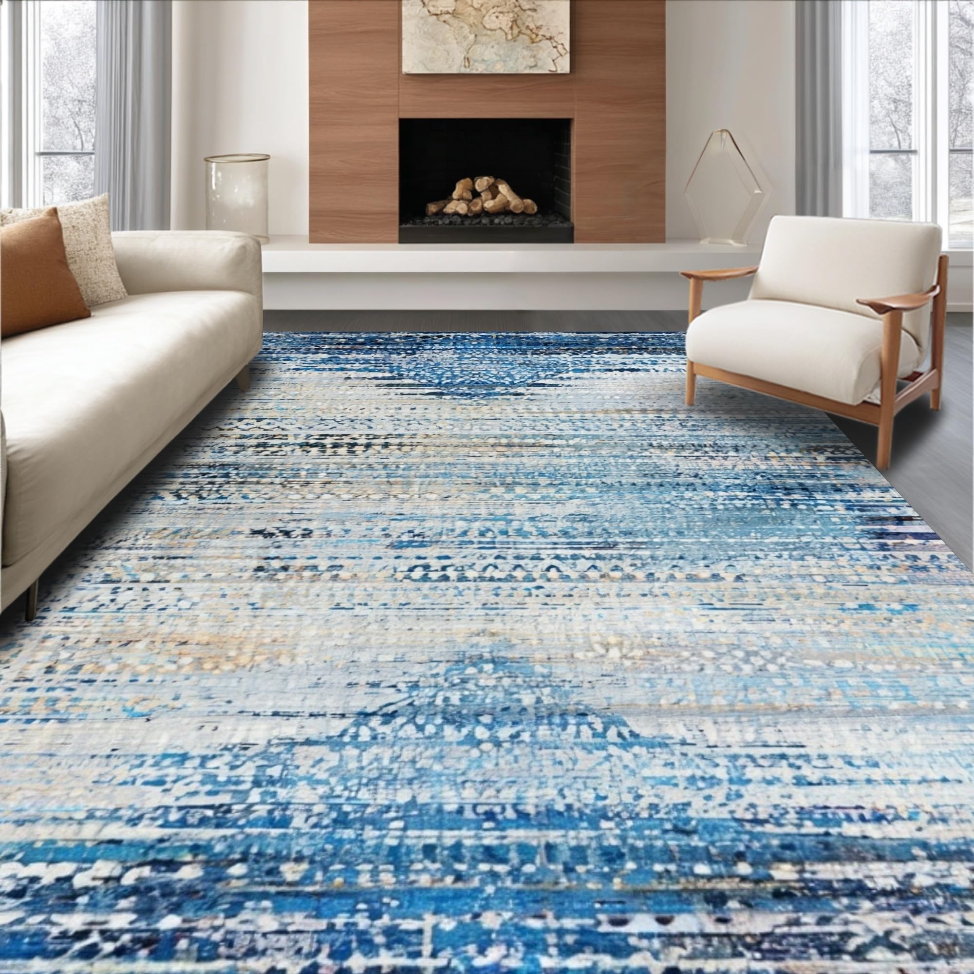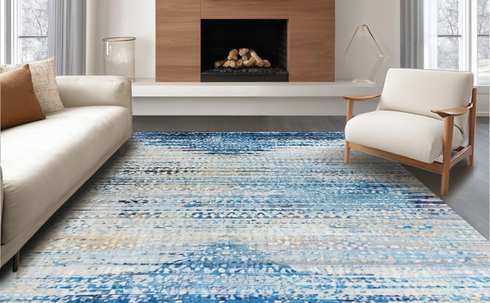 Ultra Soft Area Rug, Non Slip, Stain Resistant, Washable Area Rugs for Living Room, Bedroom, Artful Blue and Beige Ombre Area Rug with Vintage Distressed Aesthetic(Blue) Overview: