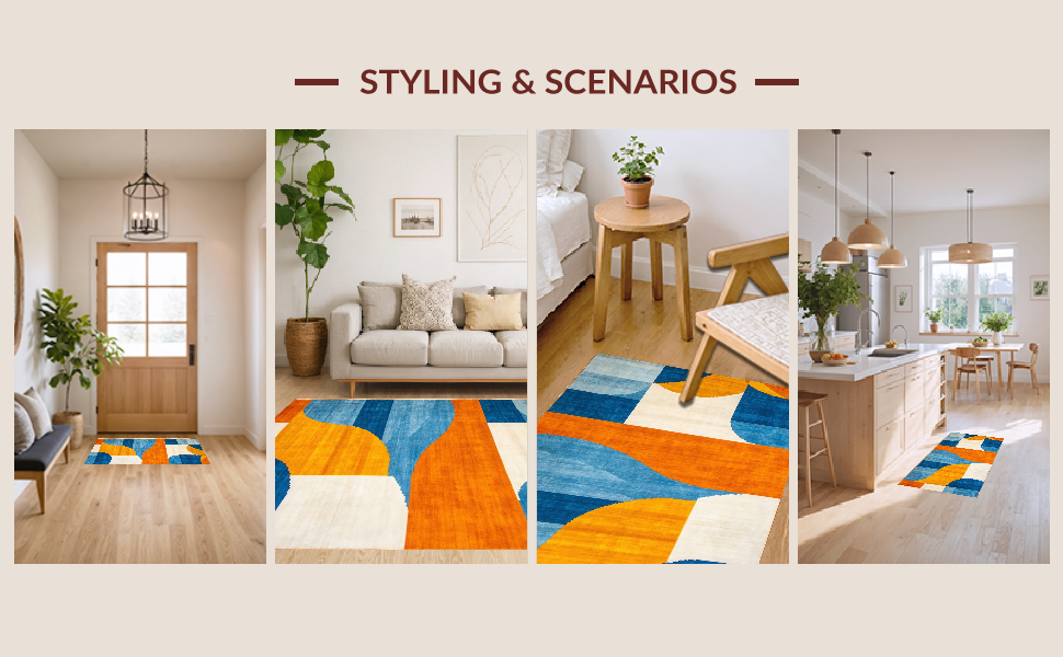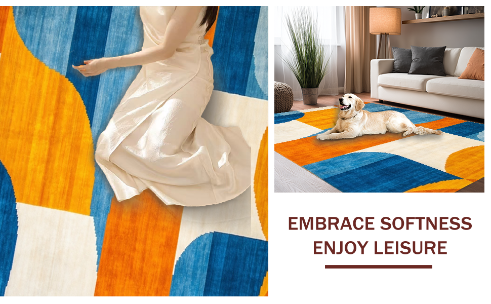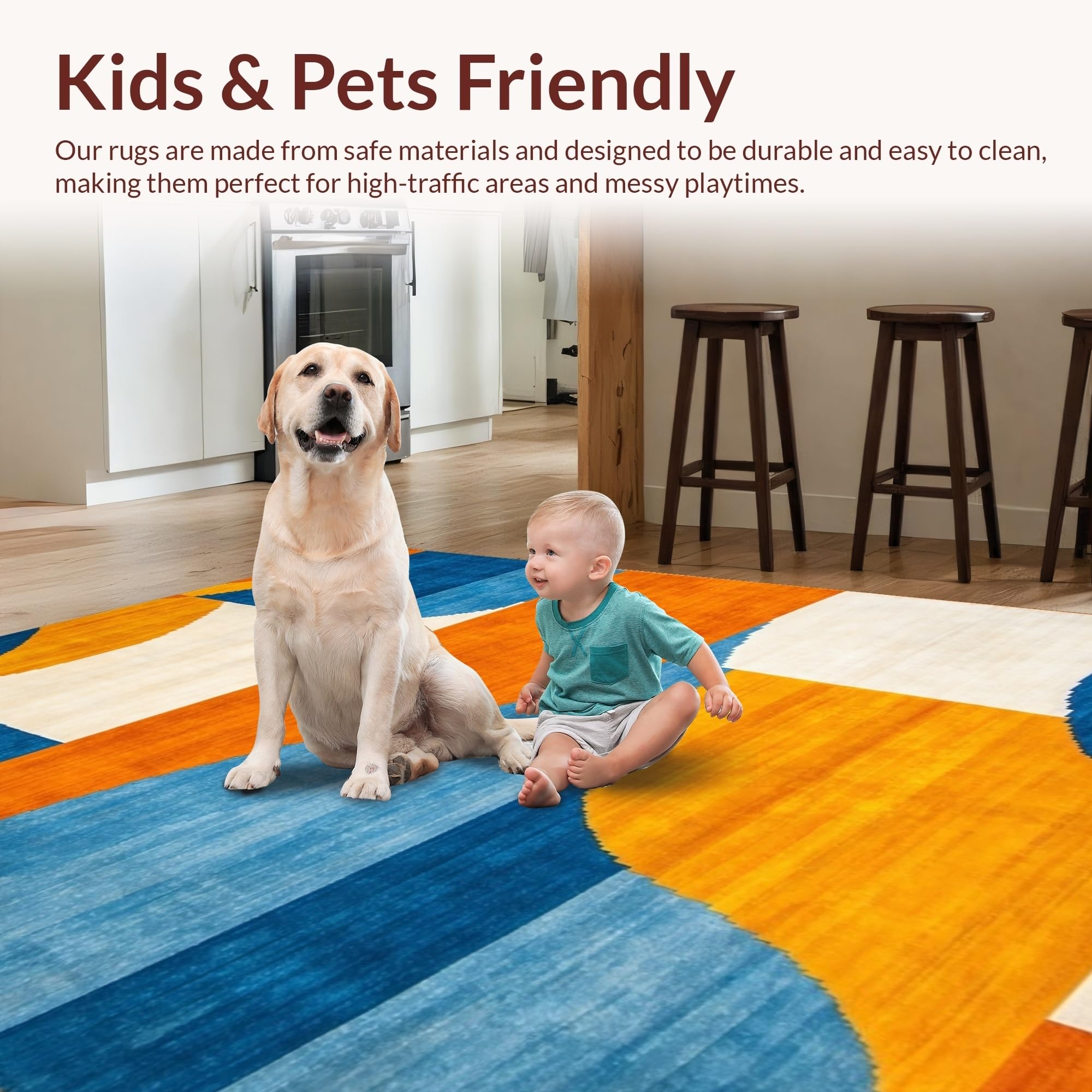 Ultra Soft Area Rug, Non Slip, Stain Resistant, Washable Area Rugs for Living Room, Bedroom, Artful Blue and Orange Pattern(Blue) Overview:
