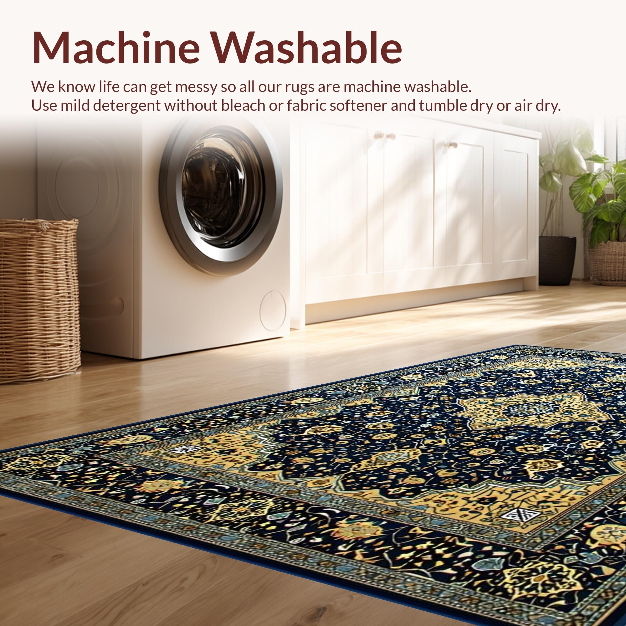 - Machine Washable: Our rugs can be easily thrown in the wash machine.