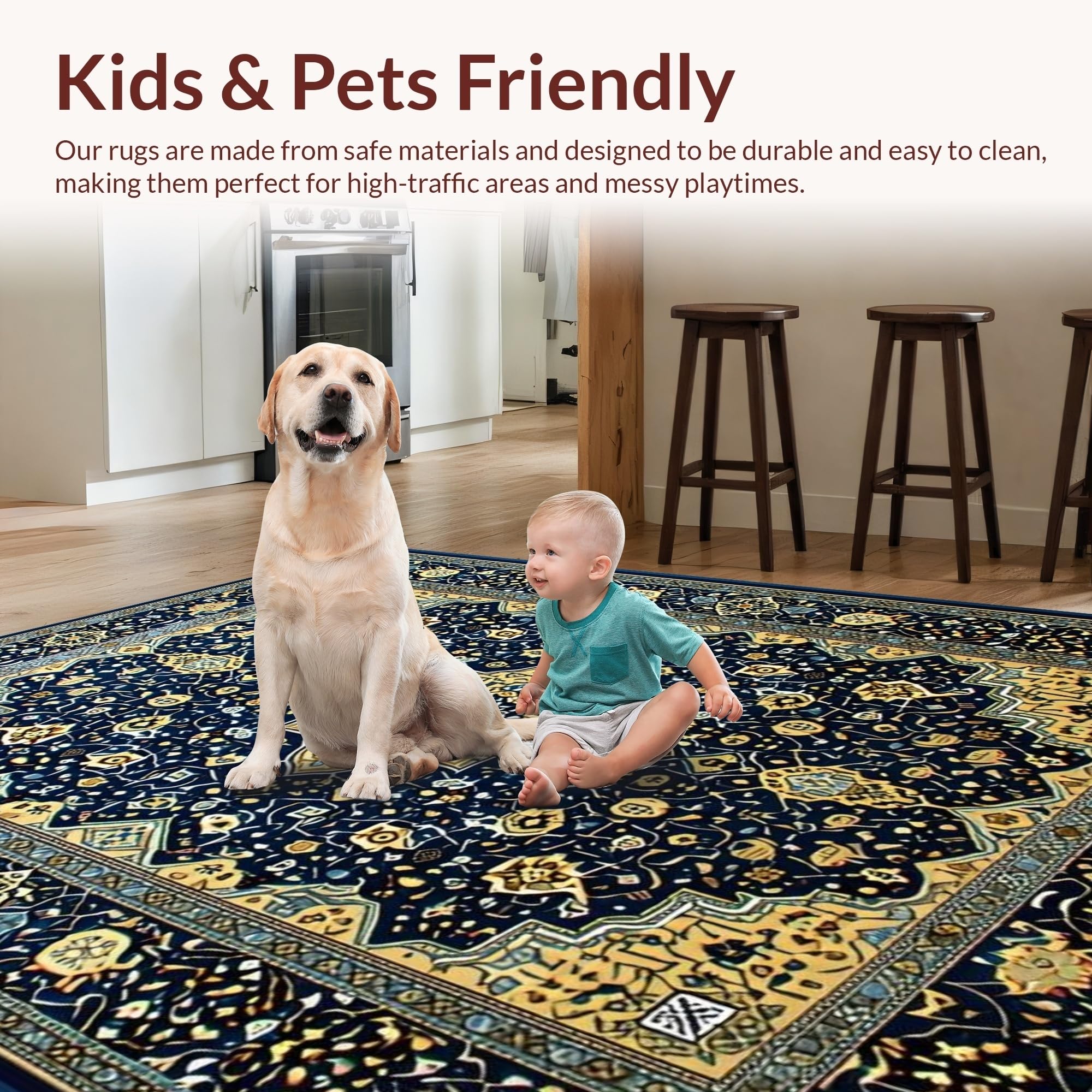 Ultra Soft Area Rug, Non Slip, Stain Resistant, Washable Area Rugs for Living Room, Bedroom, Artful Blue Tiled Elegance(Blue) Overview: