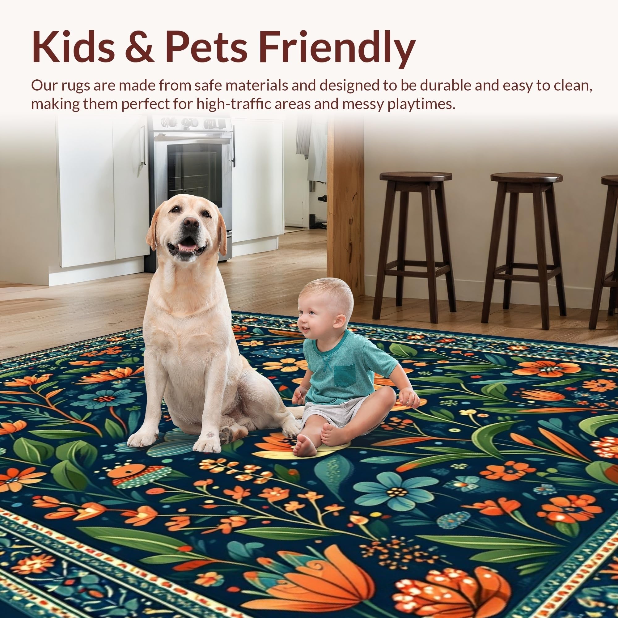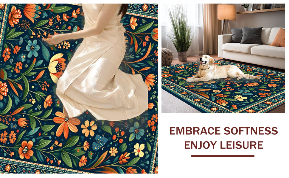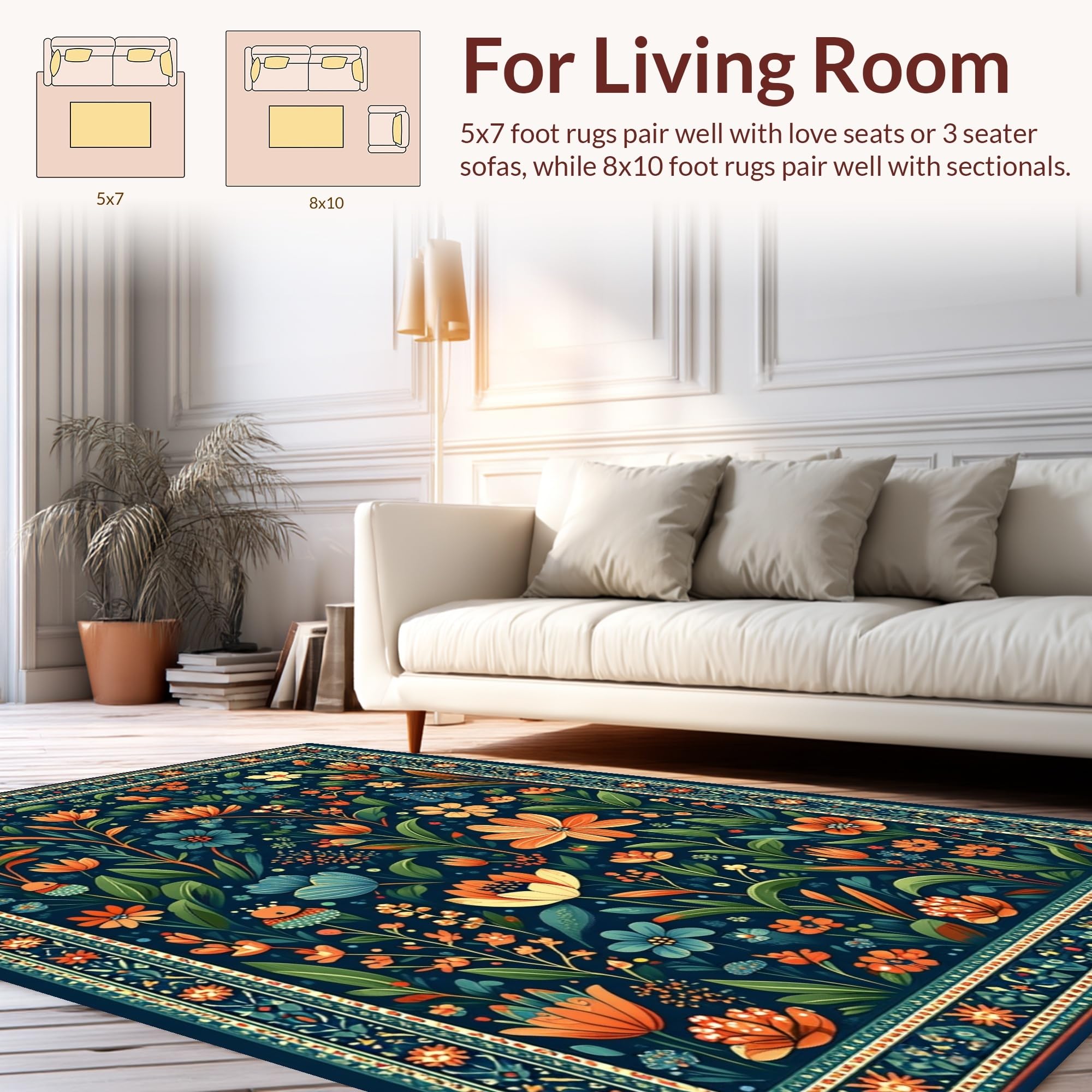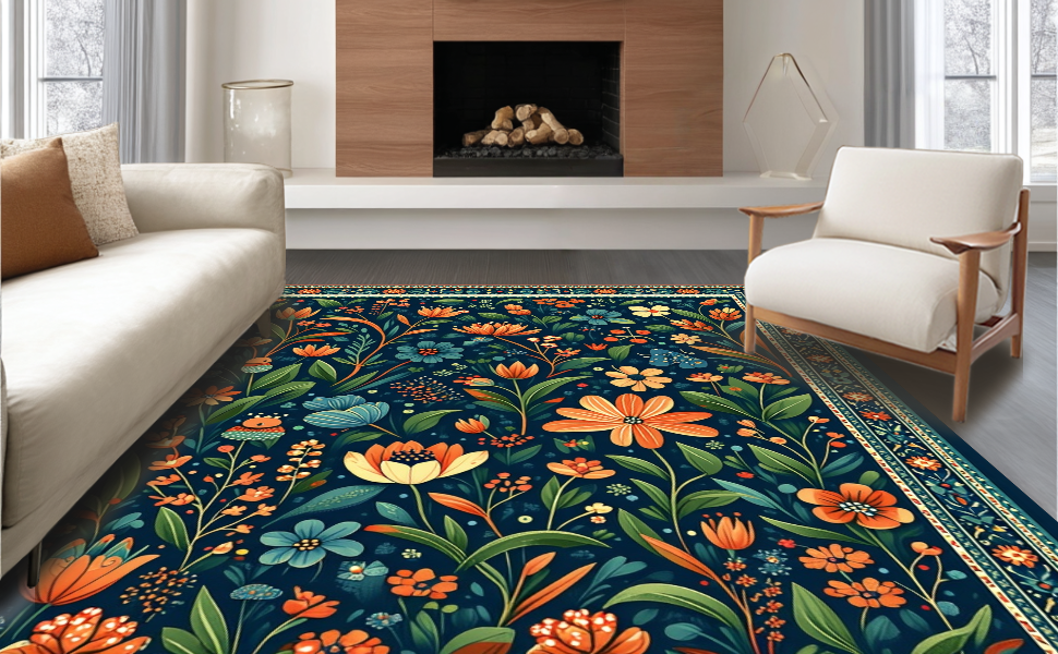 Ultra Soft Area Rug, Non Slip, Stain Resistant, Washable Area Rugs for Living Room, Bedroom, Artful Botanical Graphic Display(Blue) Overview: