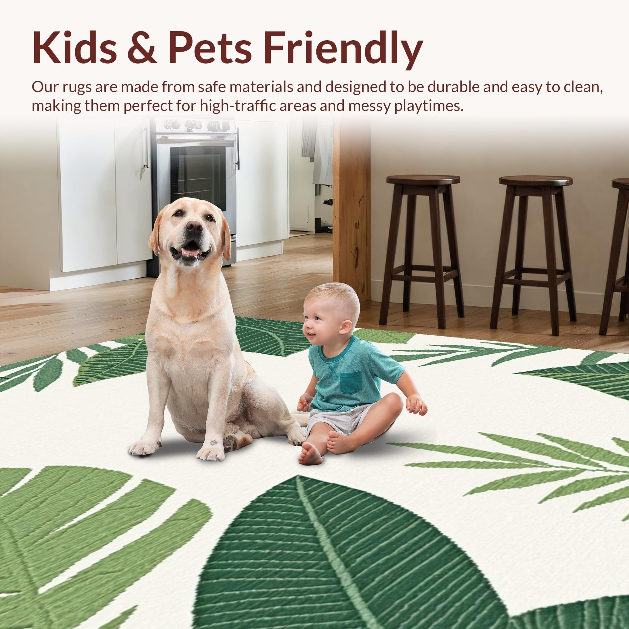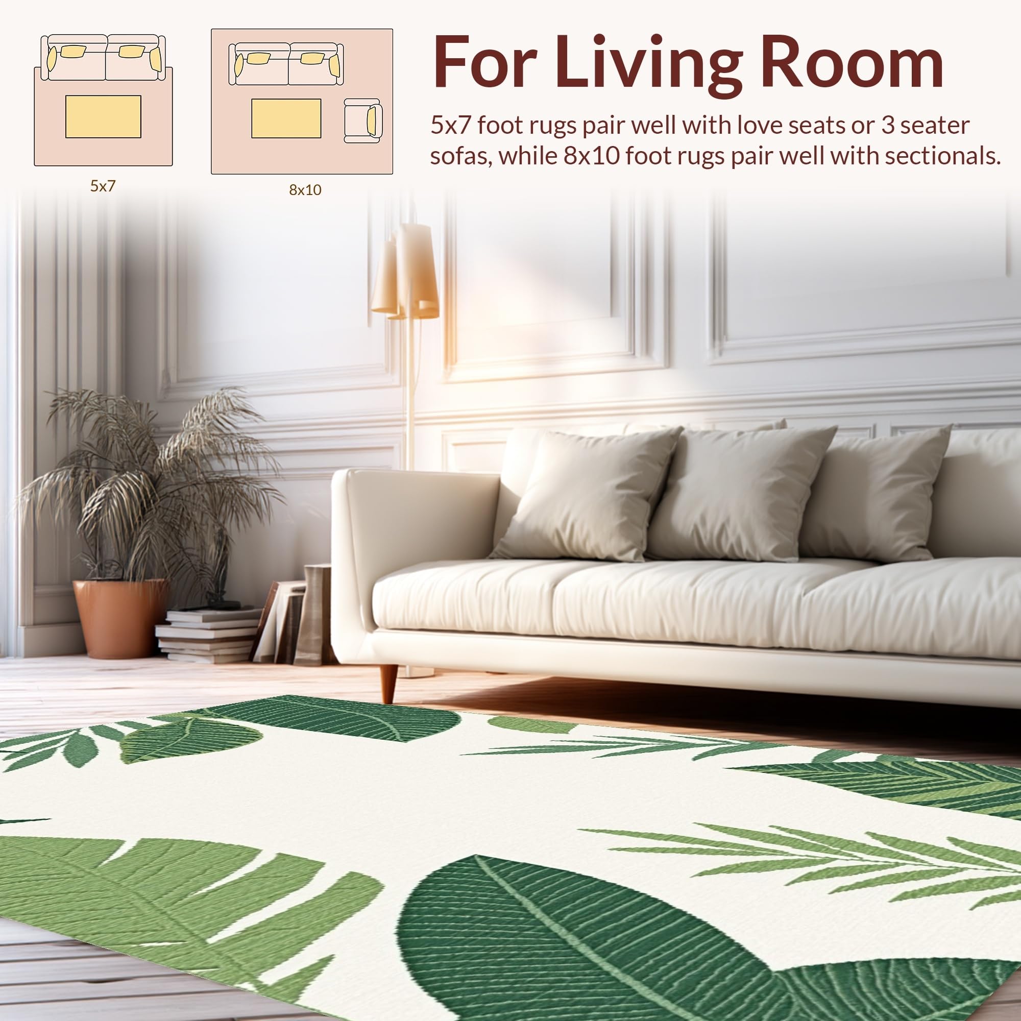 Ultra Soft Area Rug, Non Slip, Stain Resistant, Washable Area Rugs for Living Room, Bedroom, Artful Botanical Leaf Arrangement(Green) Overview: