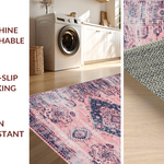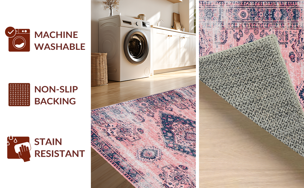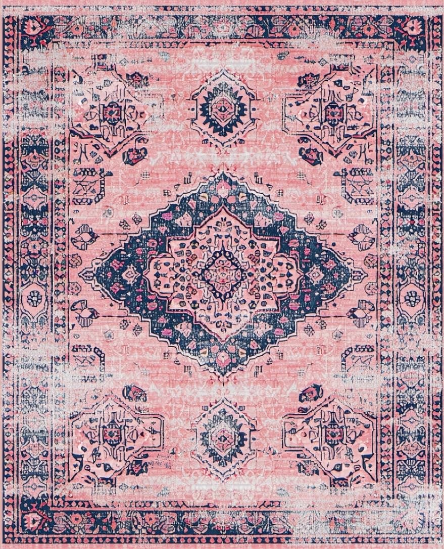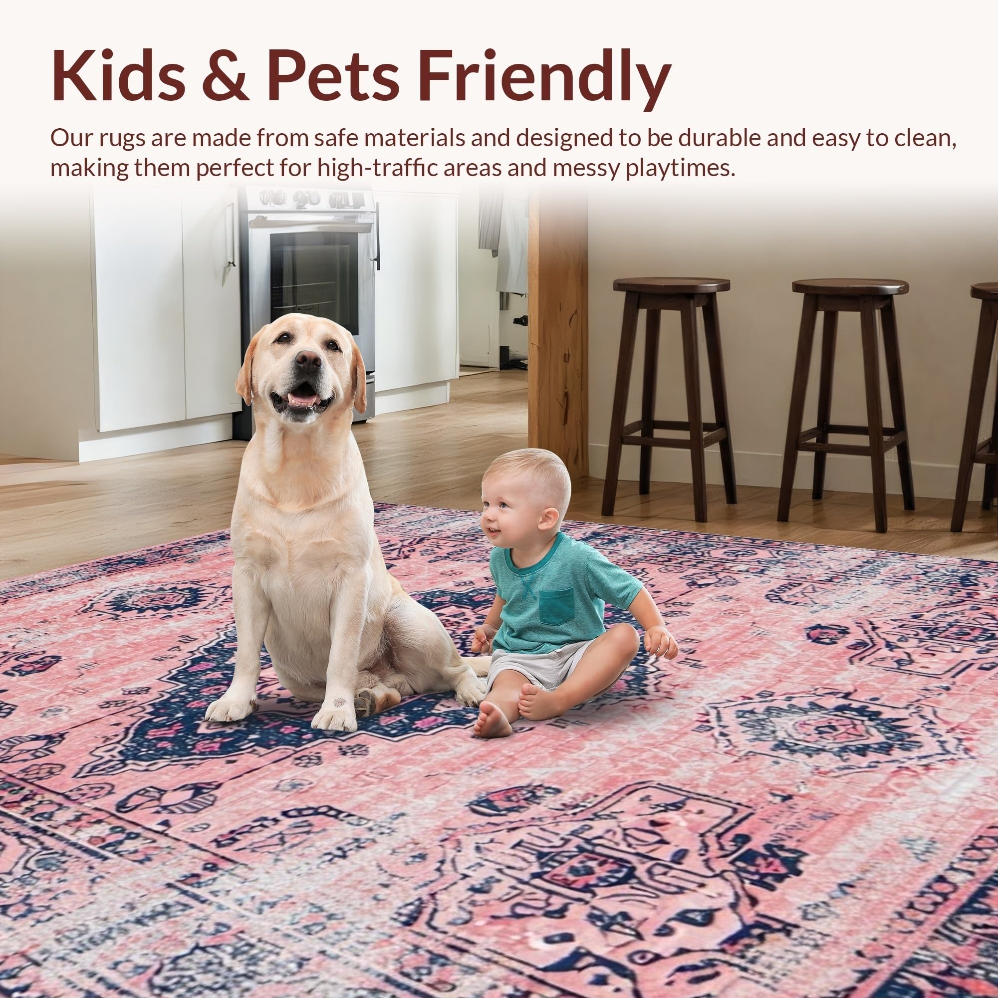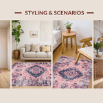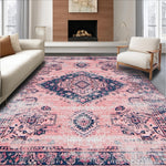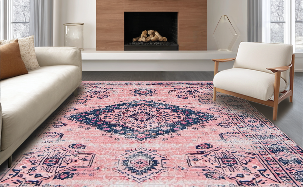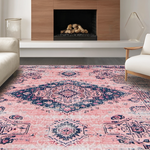 Ultra Soft Area Rug, Non Slip, Stain Resistant, Washable Area Rugs for Living Room, Bedroom, Artful Bright Medallion Style(Pink) Overview: