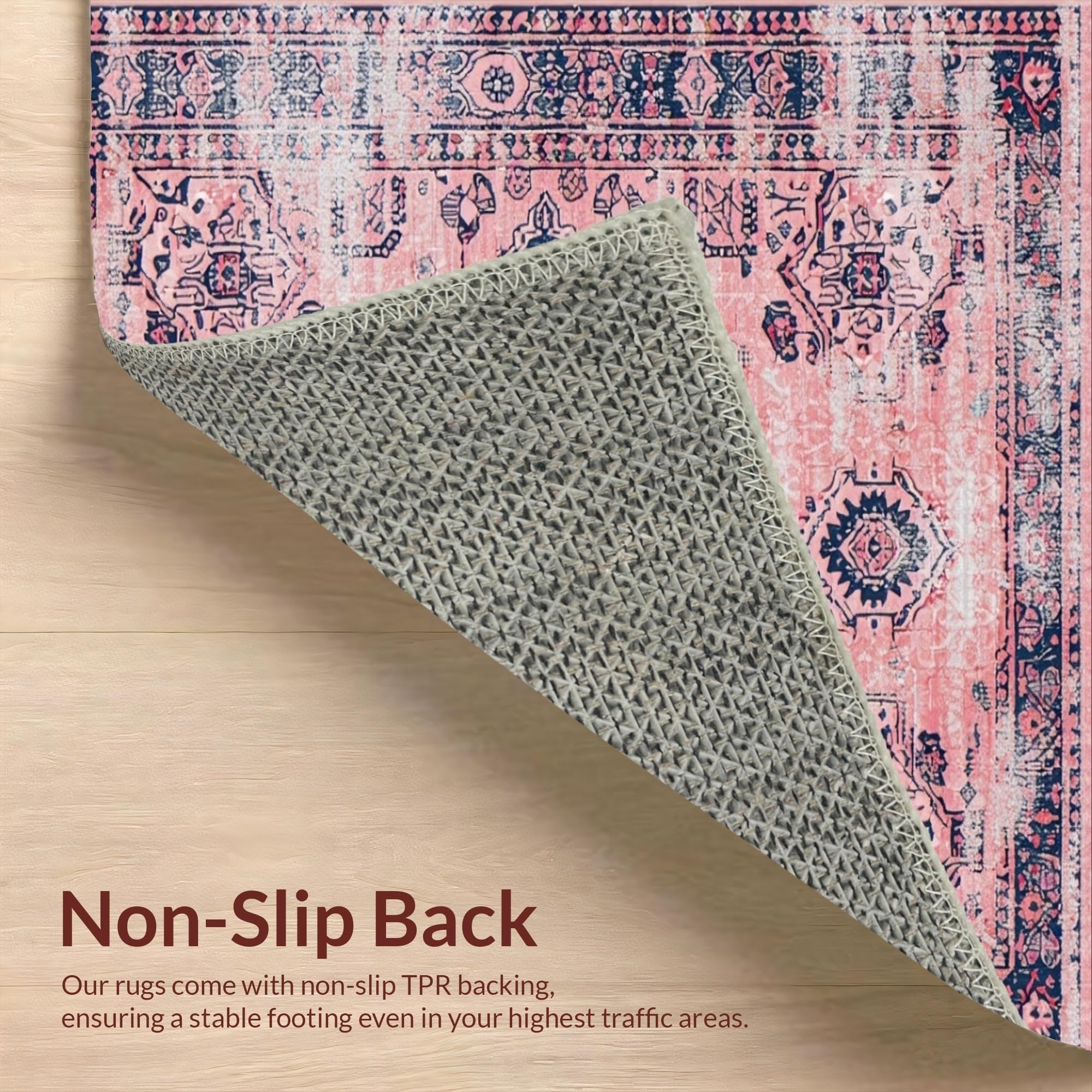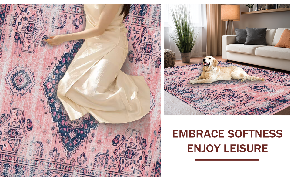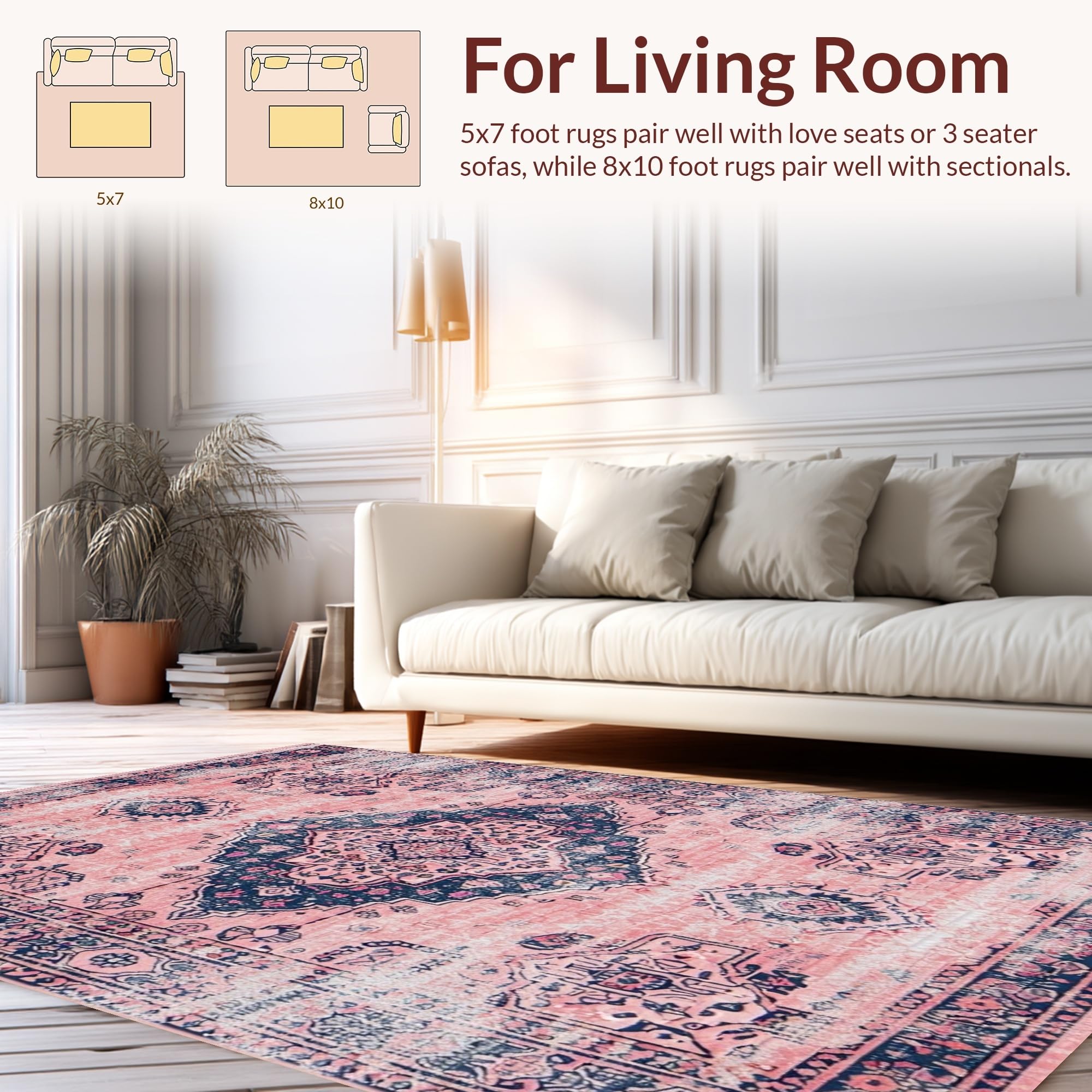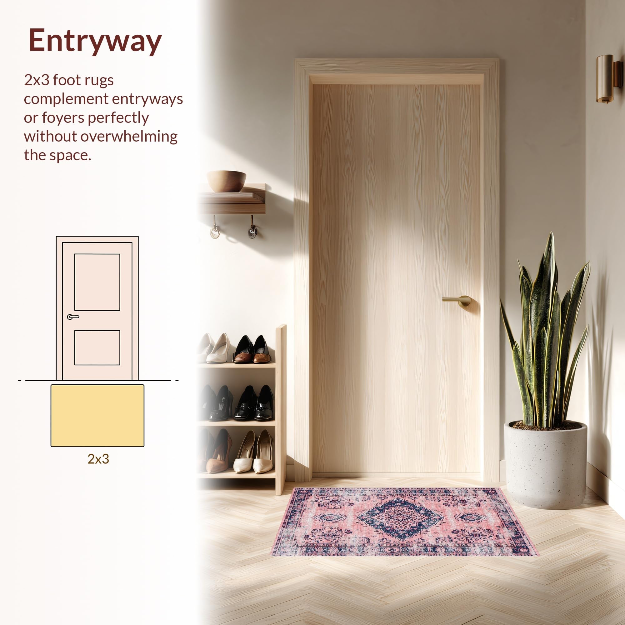 Ultra Soft Area Rug, Non Slip, Stain Resistant, Washable Area Rugs for Living Room, Bedroom, Artful Bright Medallion Style(Pink) Overview: