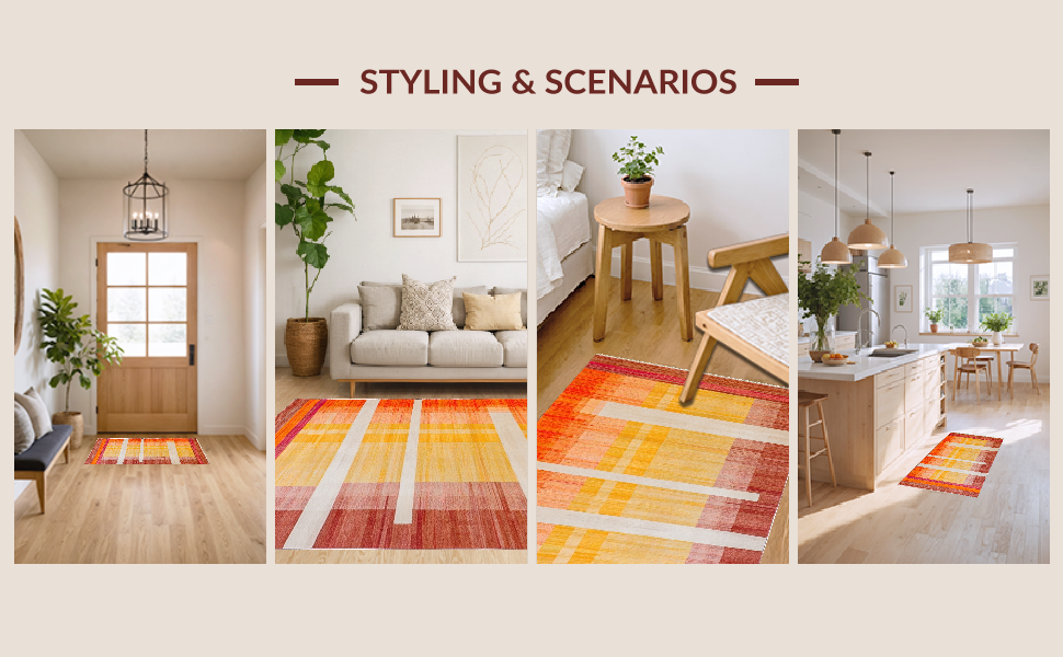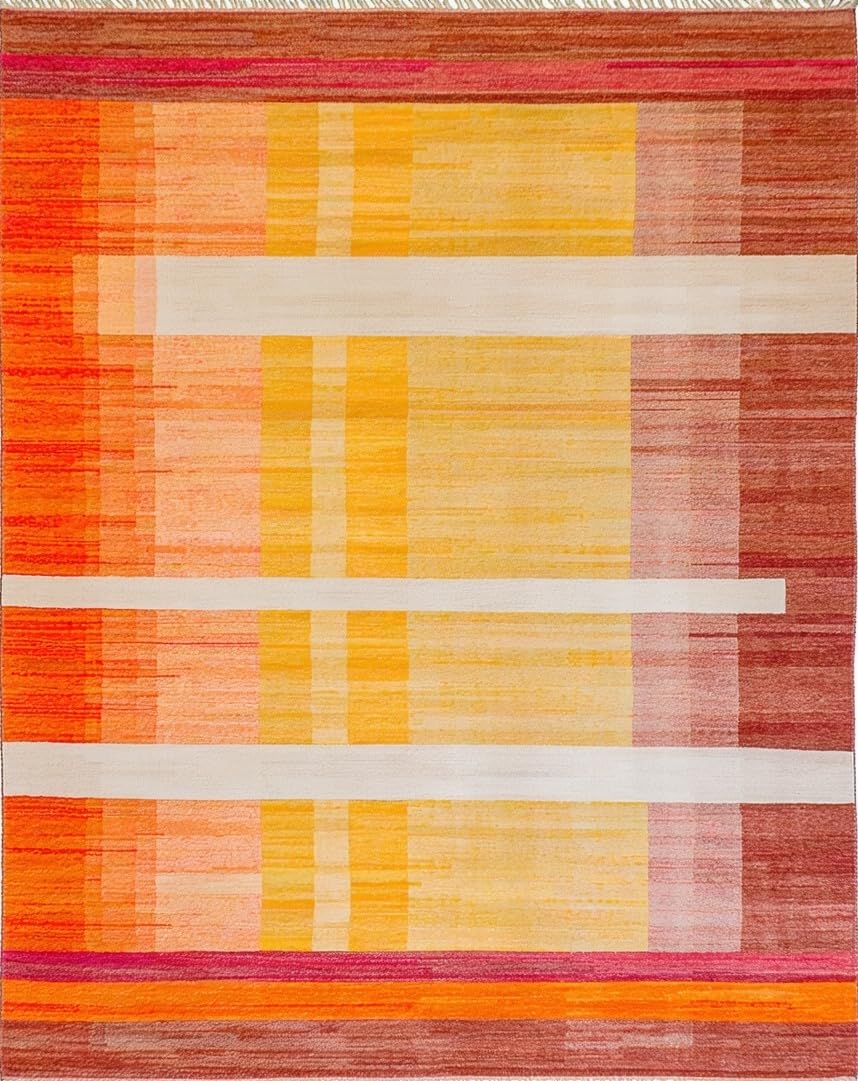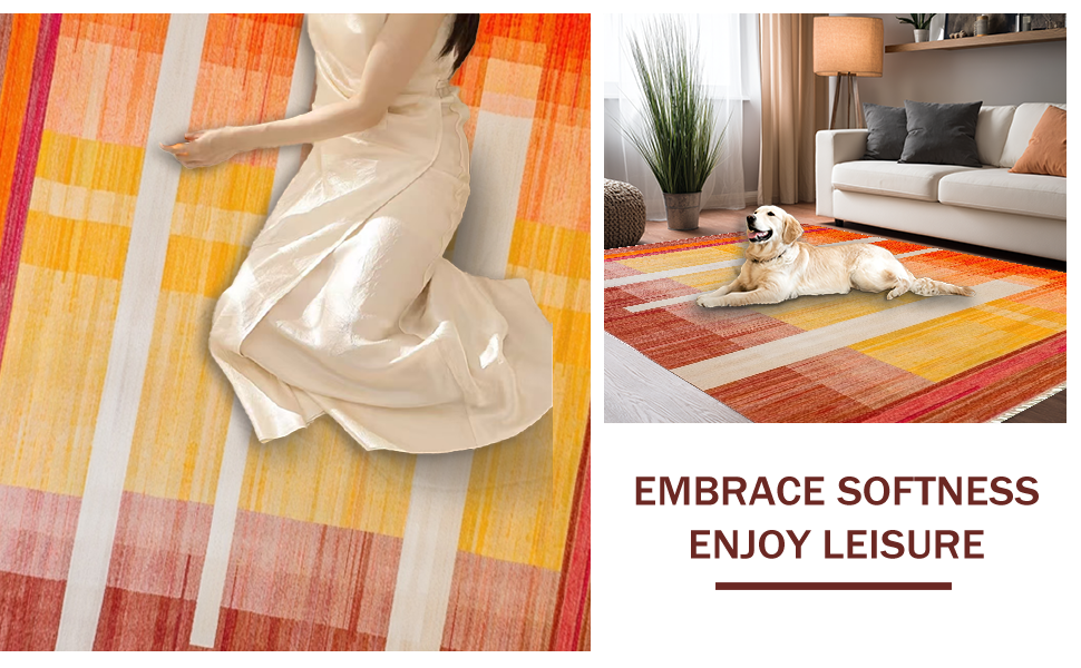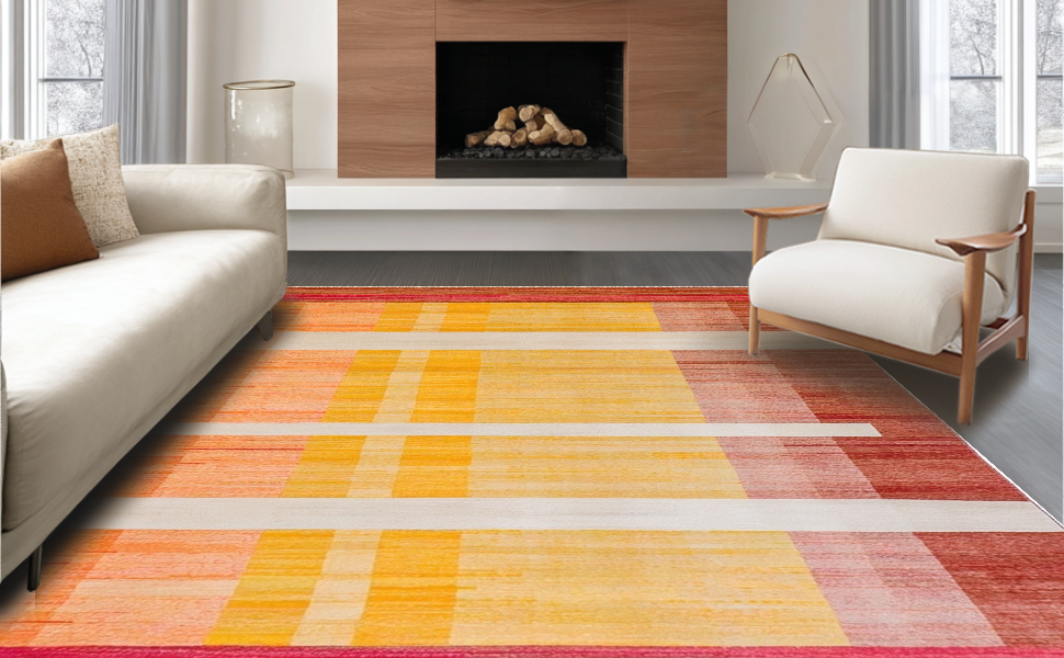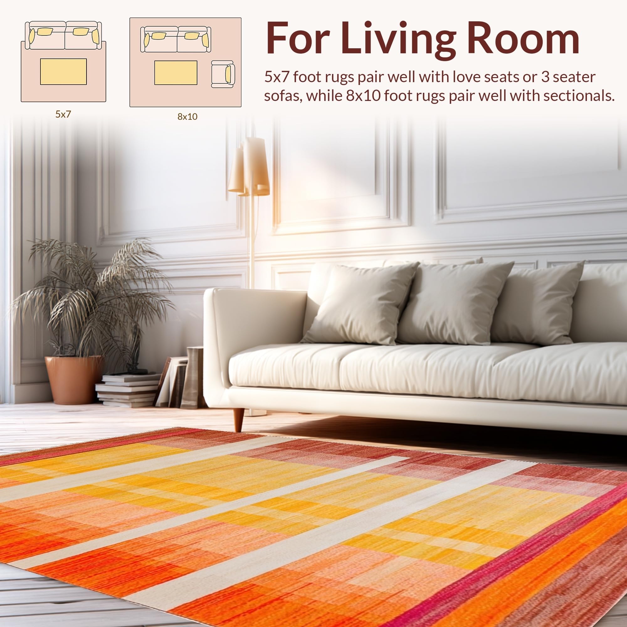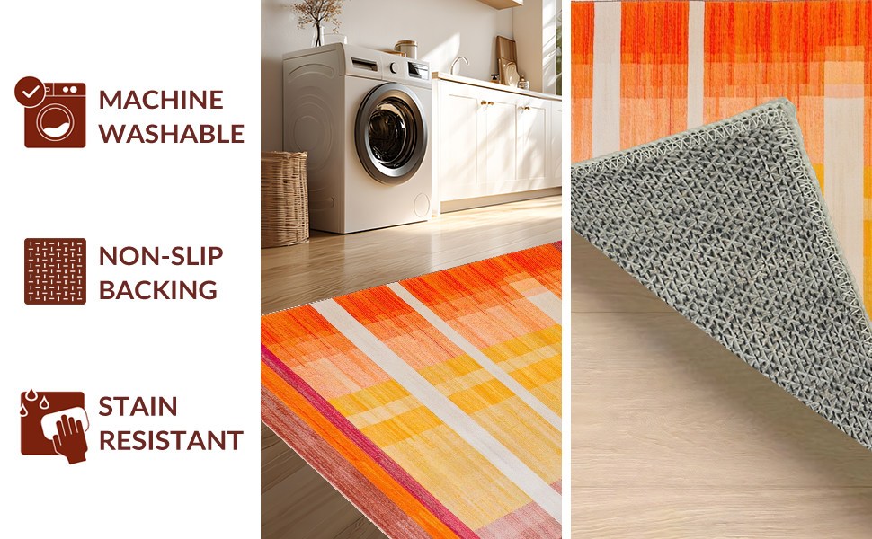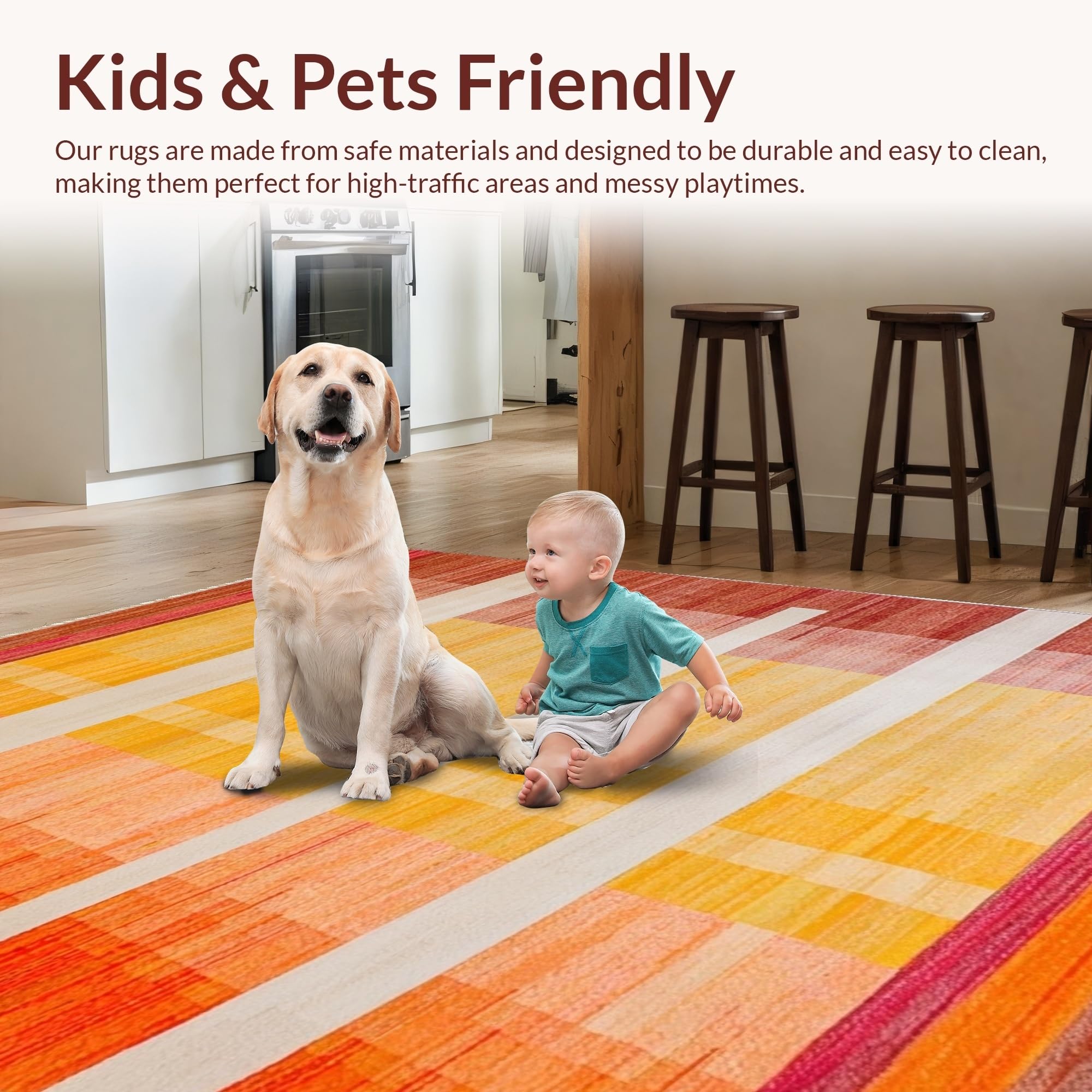 Ultra Soft Area Rug, Non Slip, Stain Resistant, Washable Area Rugs for Living Room, Bedroom, Artful Bright Tiled Composition(Orange) Overview: