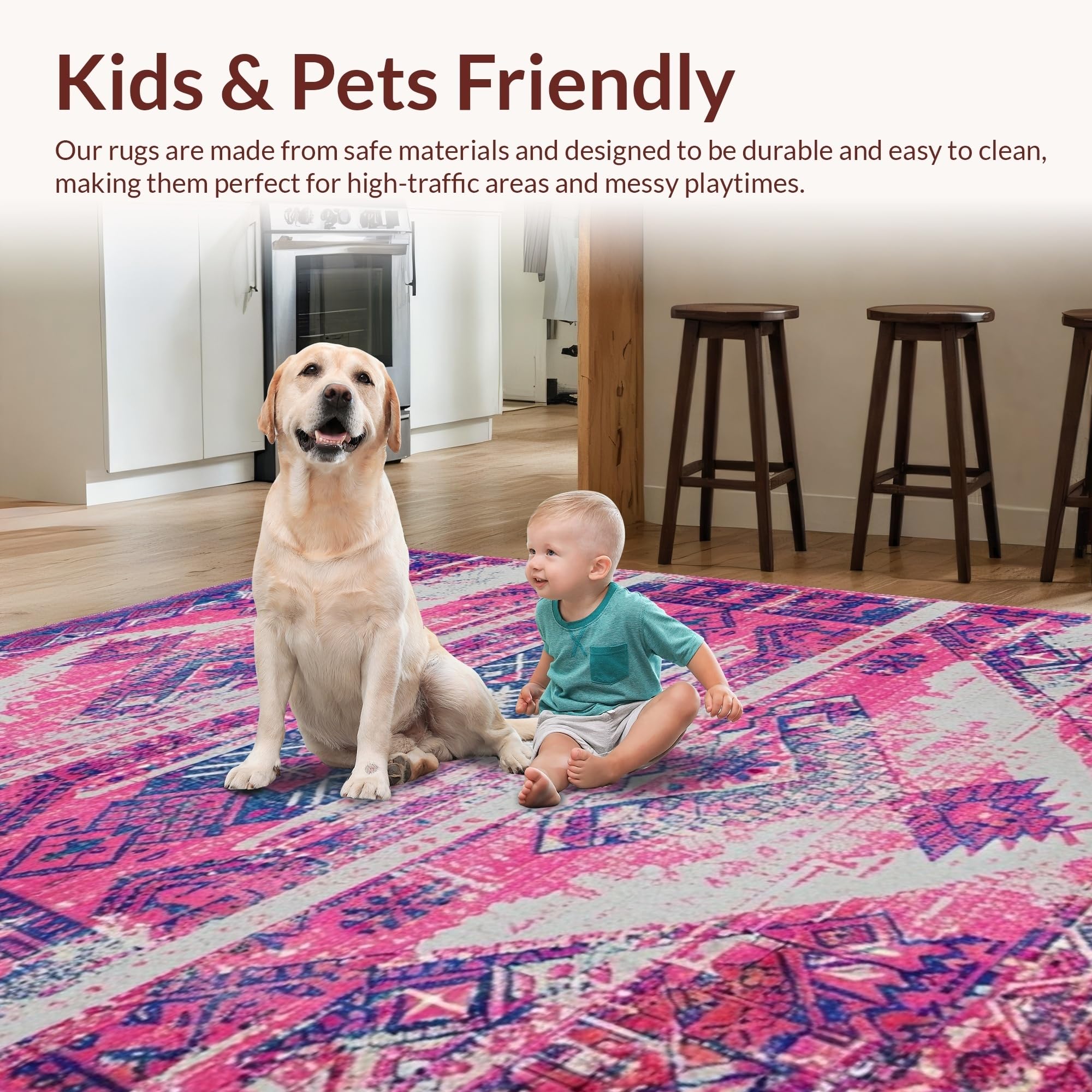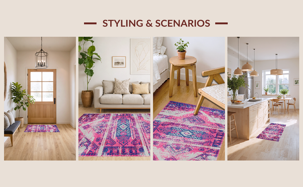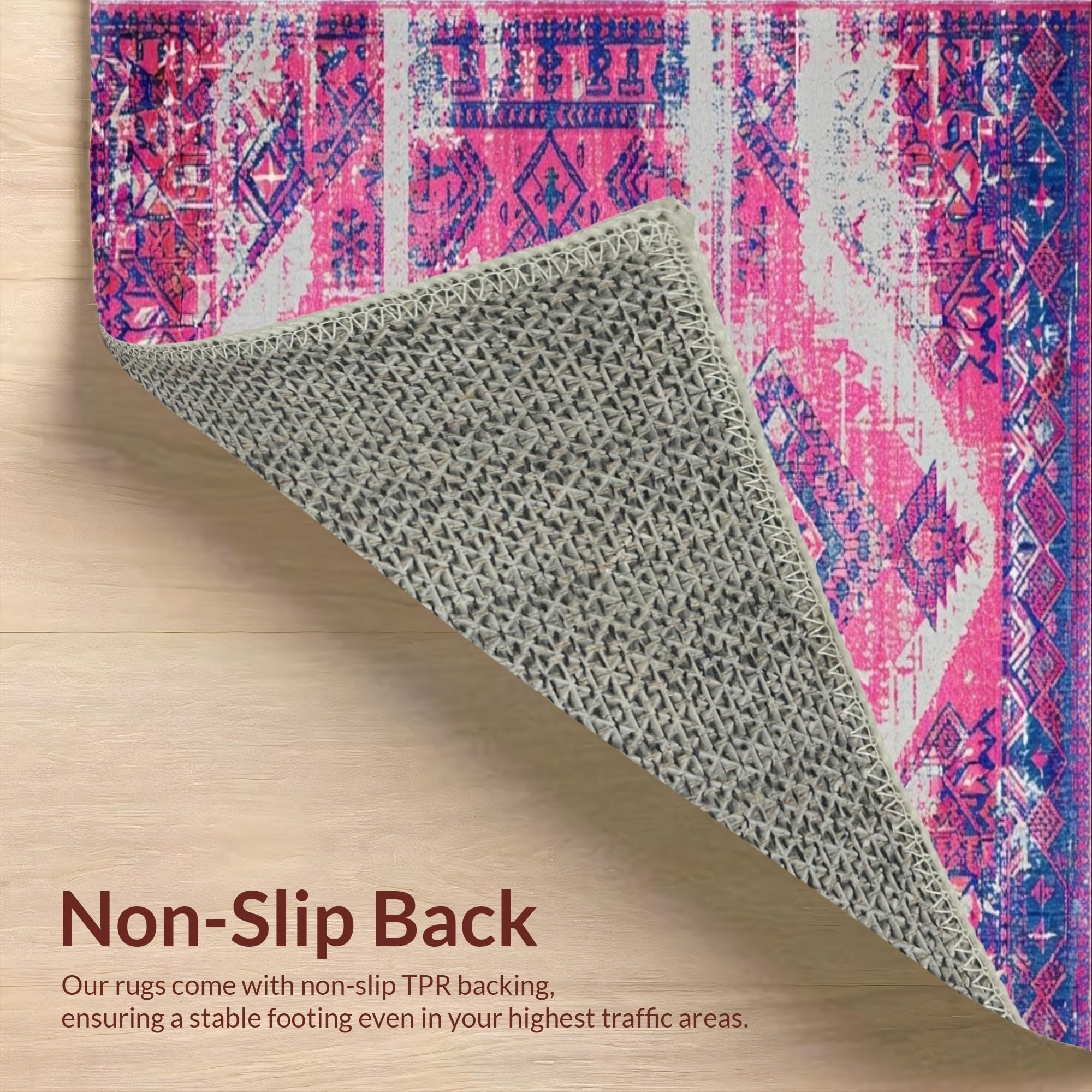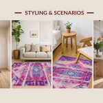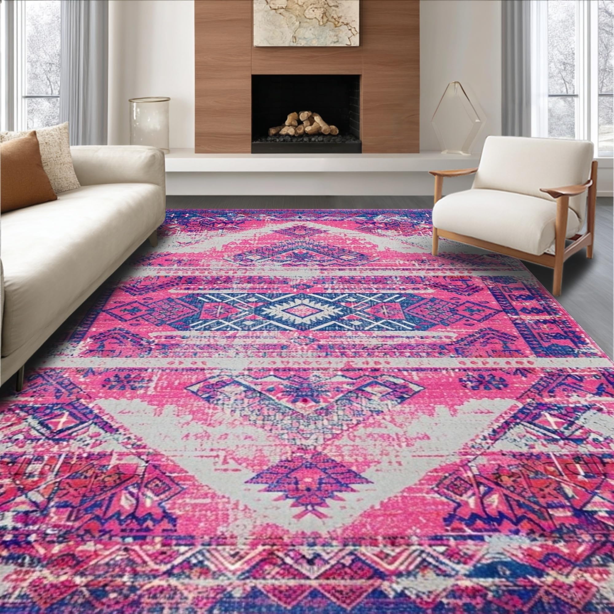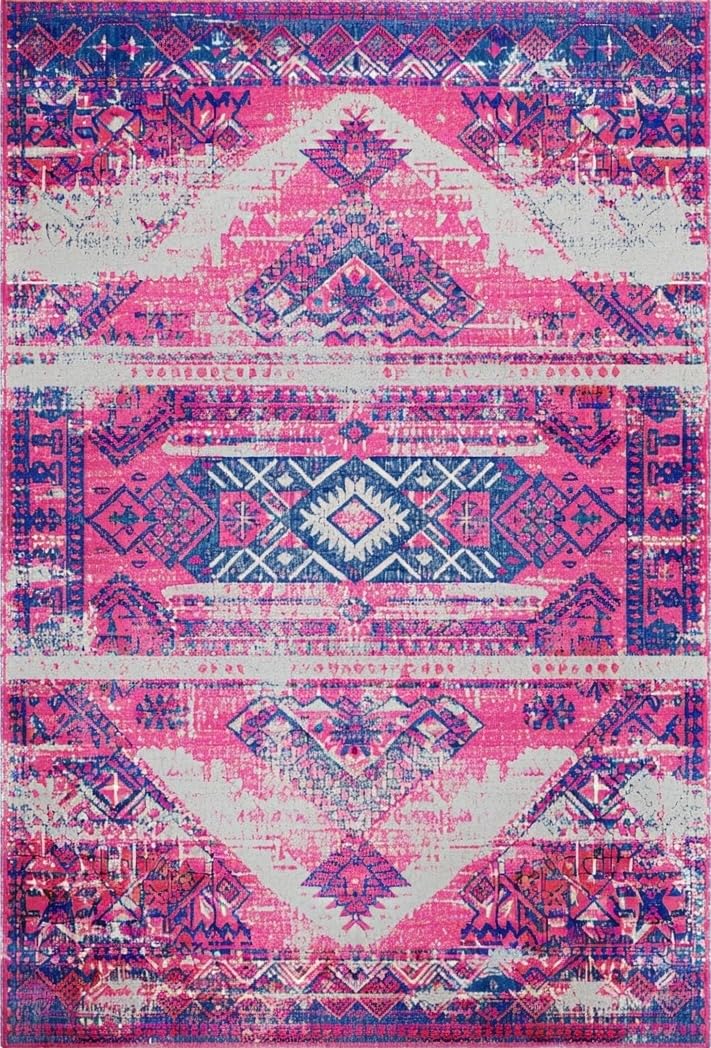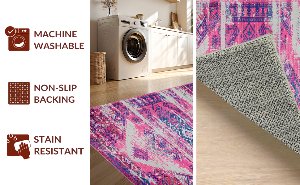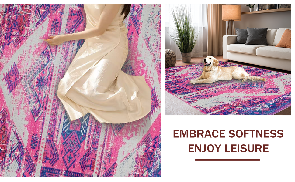Ultra Soft Area Rug, Non Slip, Stain Resistant, Washable Area Rugs for Living Room, Bedroom, Artful Bright Trellis Composition(Pink) Overview: