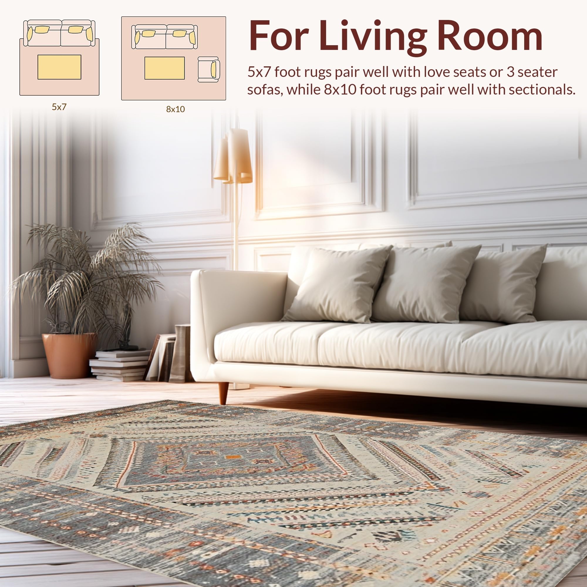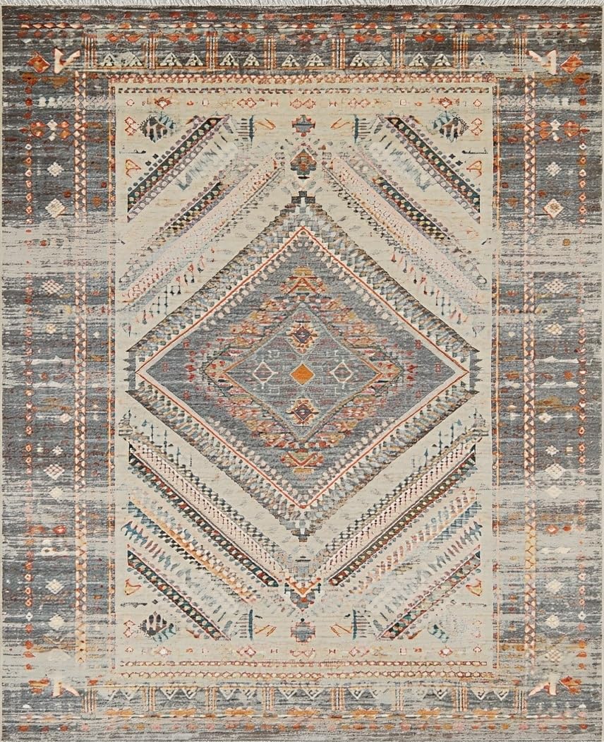 Ultra Soft Area Rug, Non Slip, Stain Resistant, Washable Area Rugs for Living Room, Bedroom, Artful Brown and White Trellis(Gray) Overview: